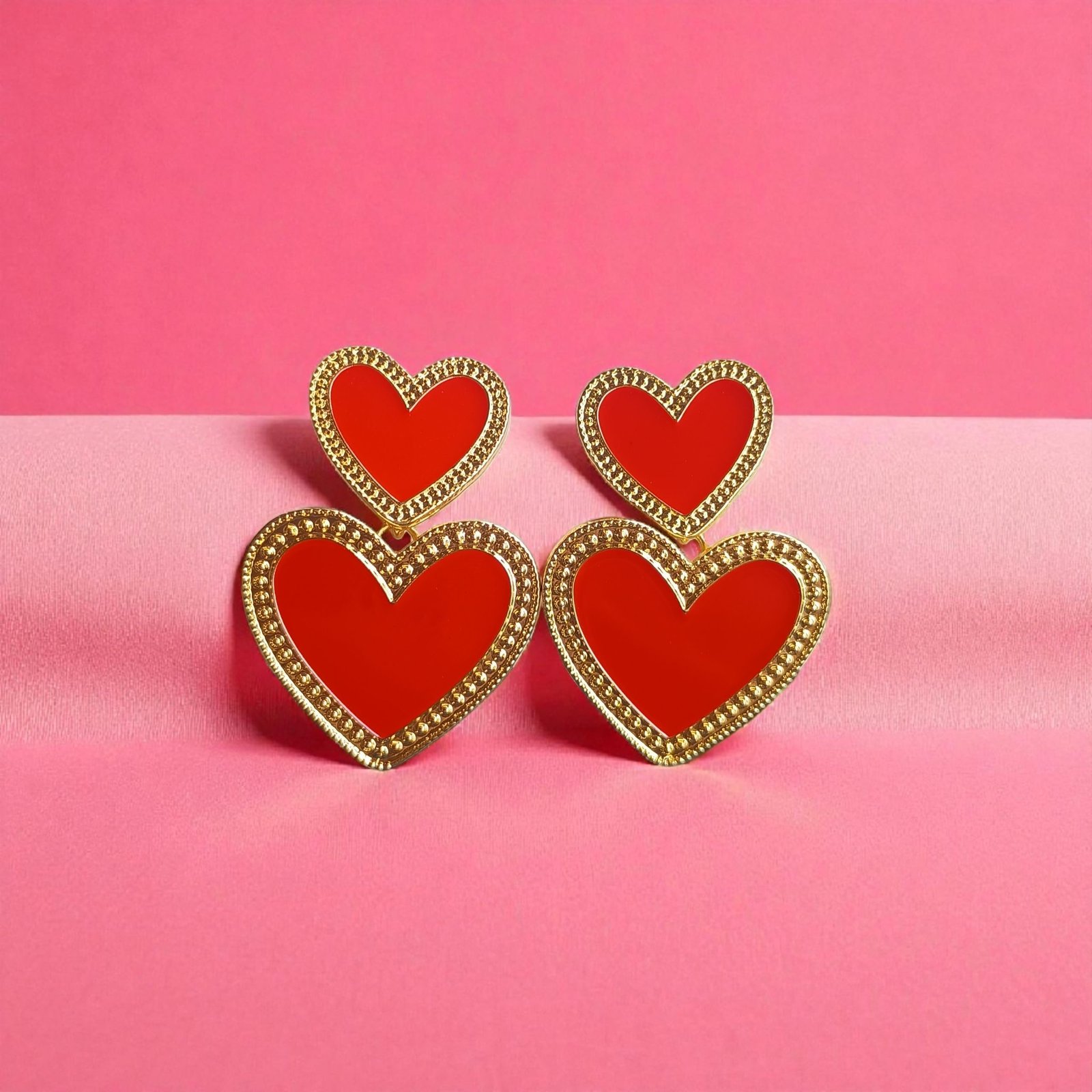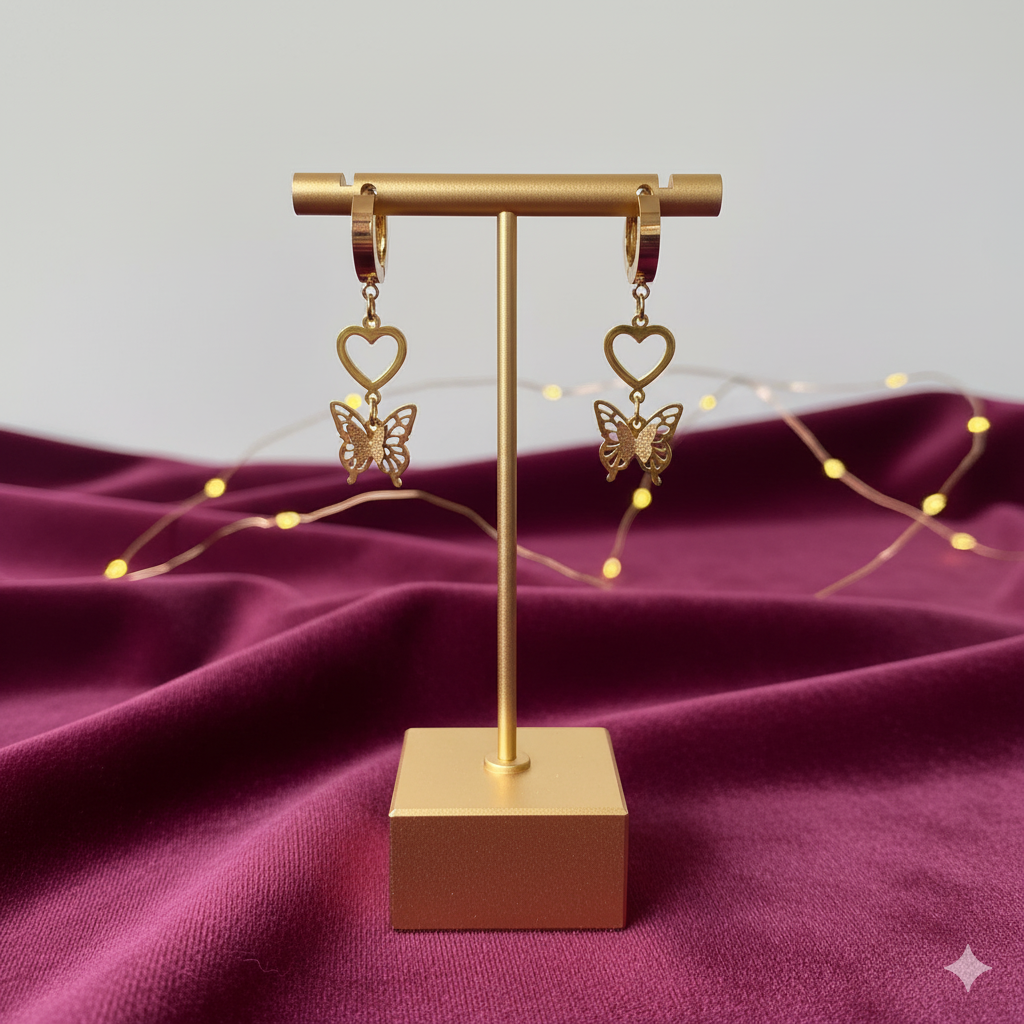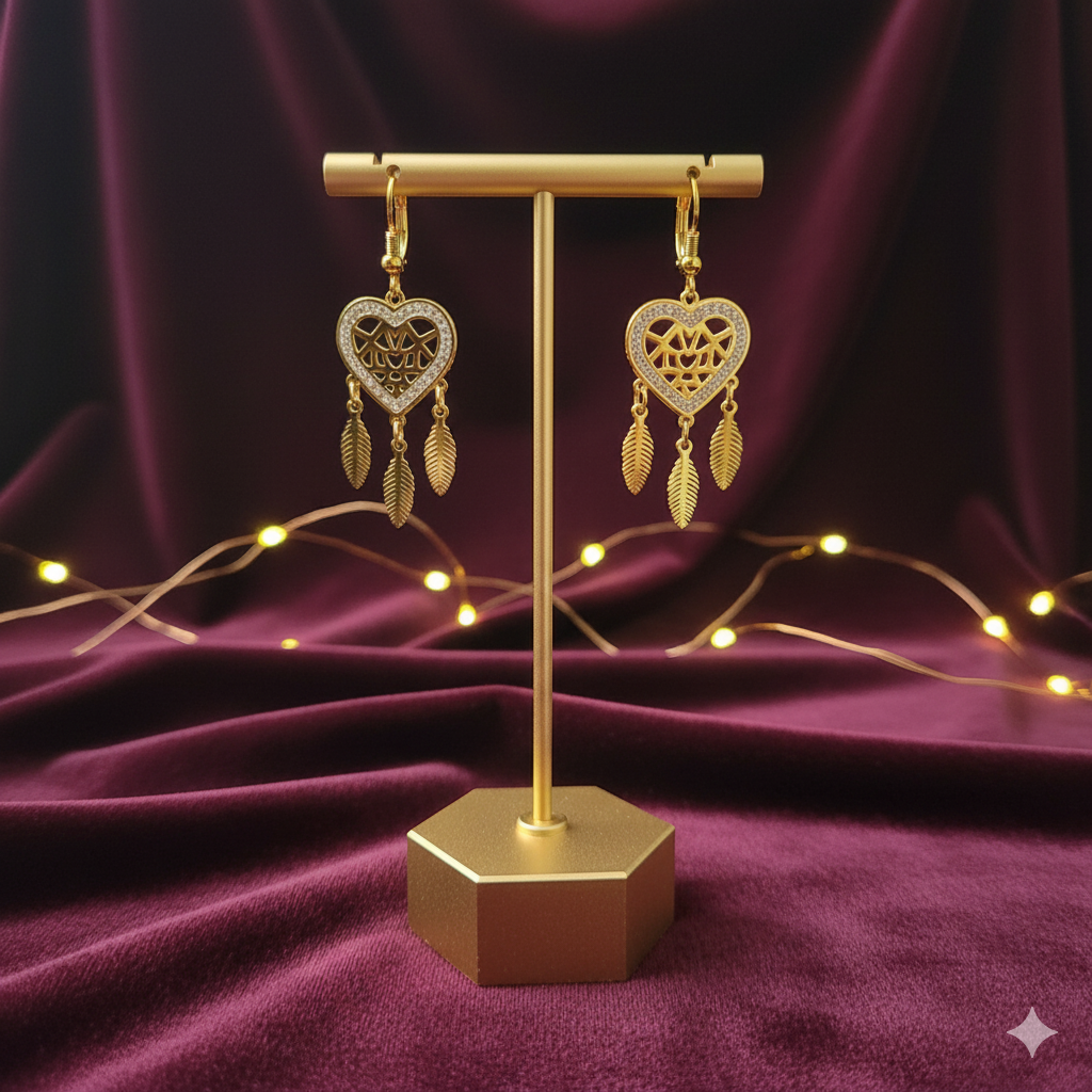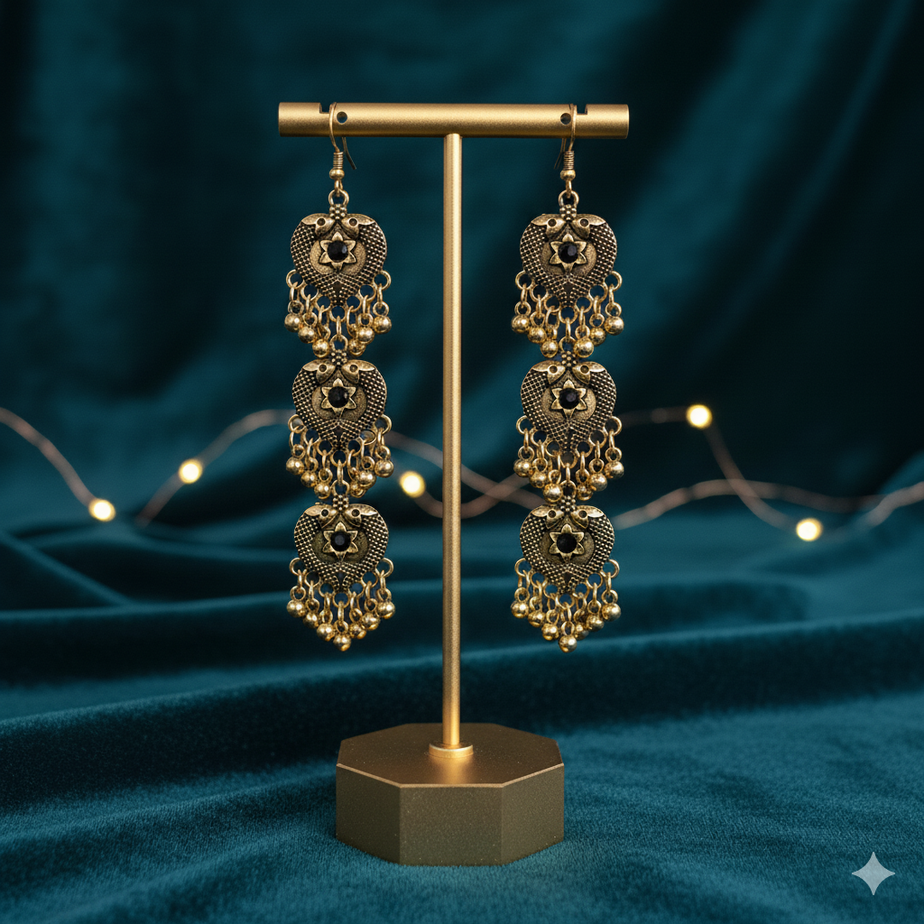 Triple Heart Shaped Fish Oxidised Danglers - Gold