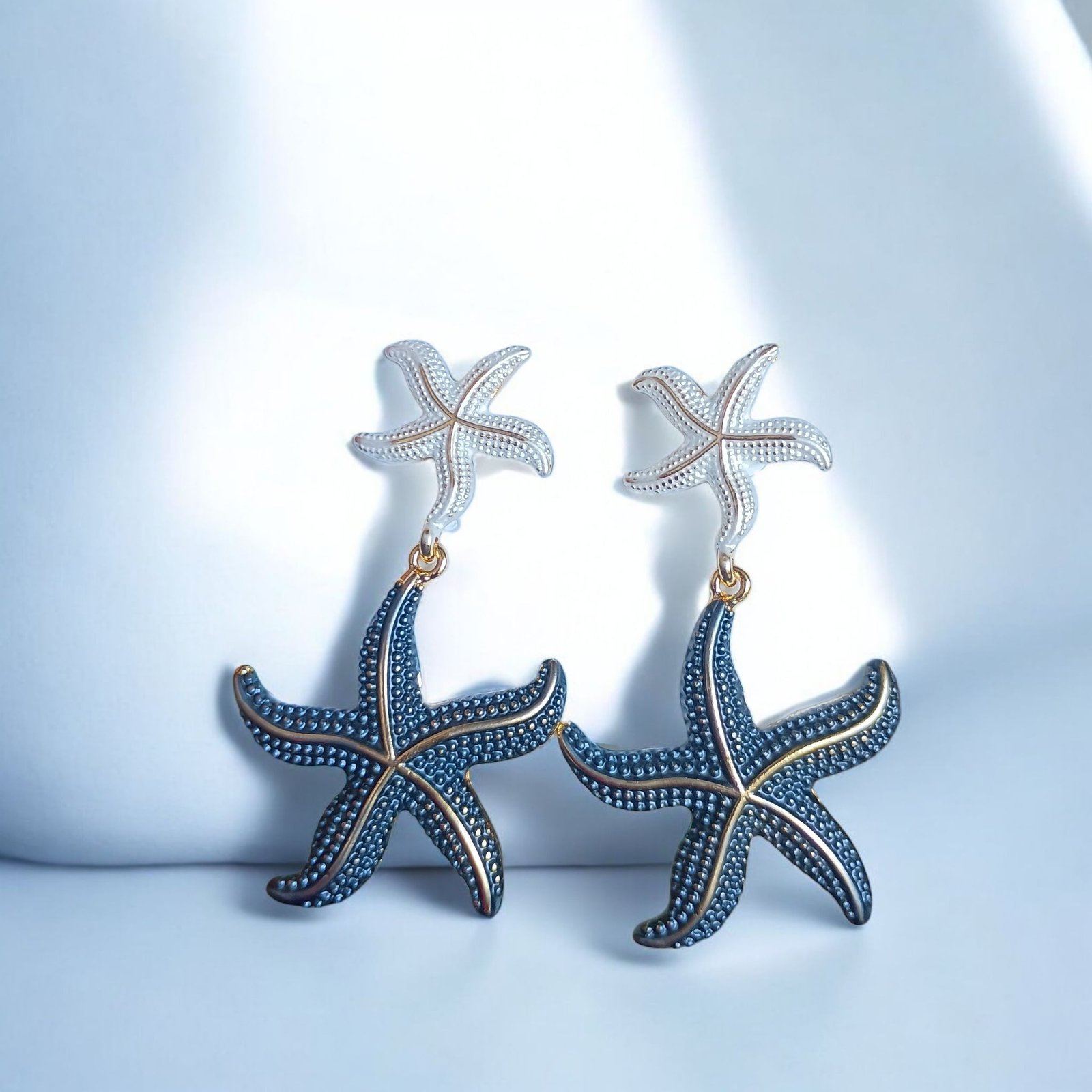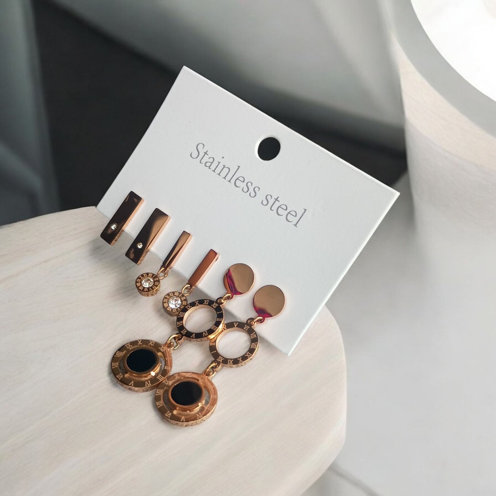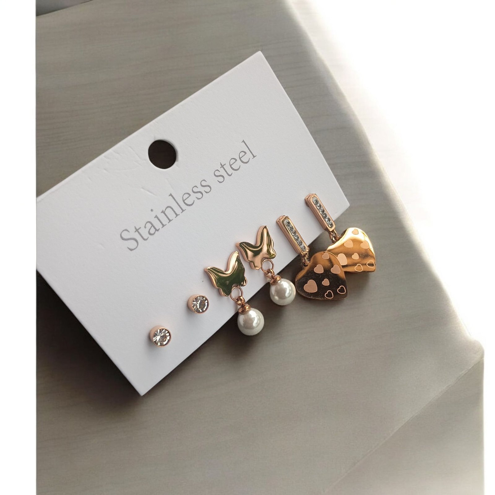 Triple Heart Shaped Fish Oxidised Danglers - Gold