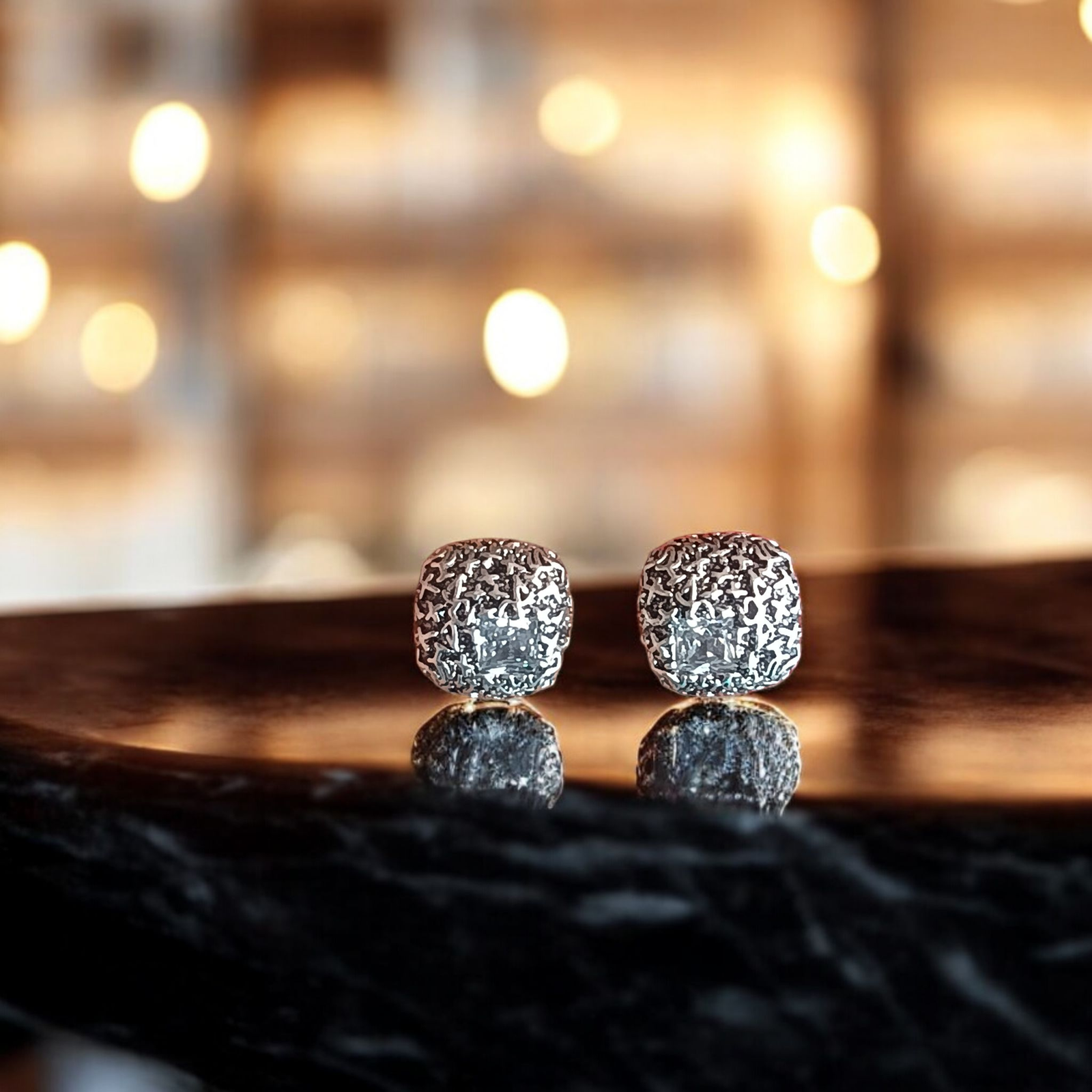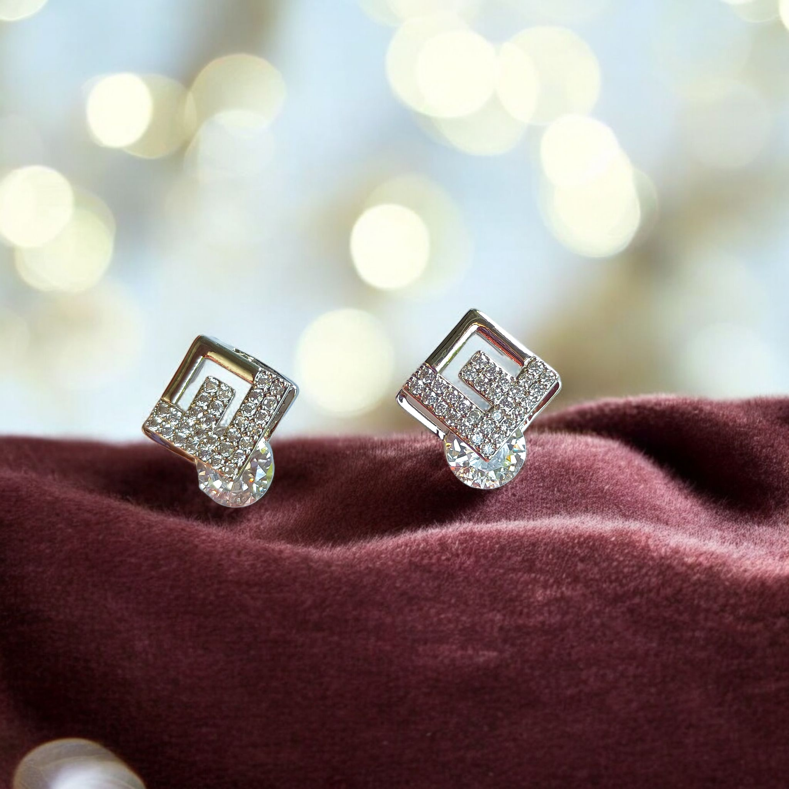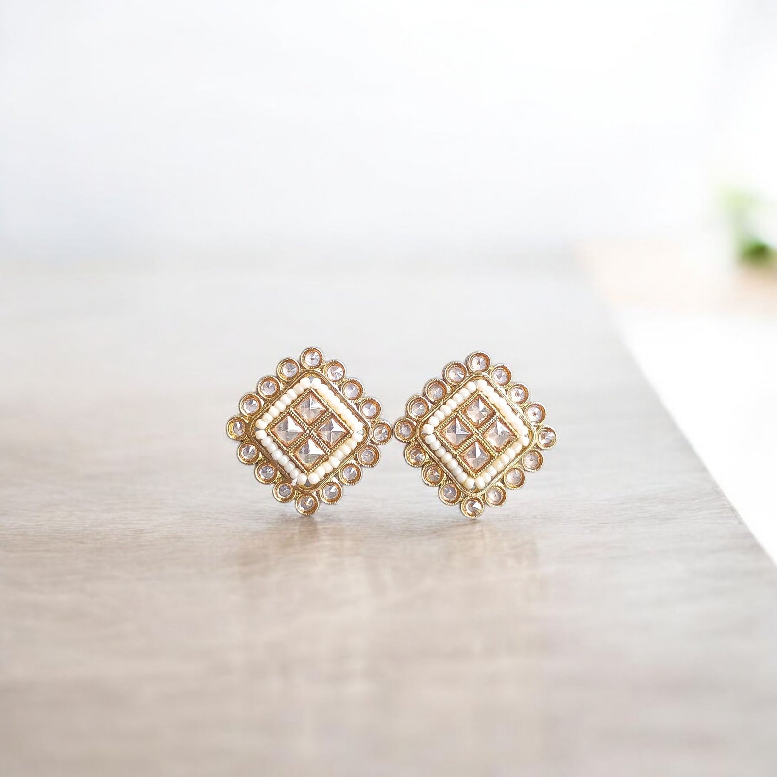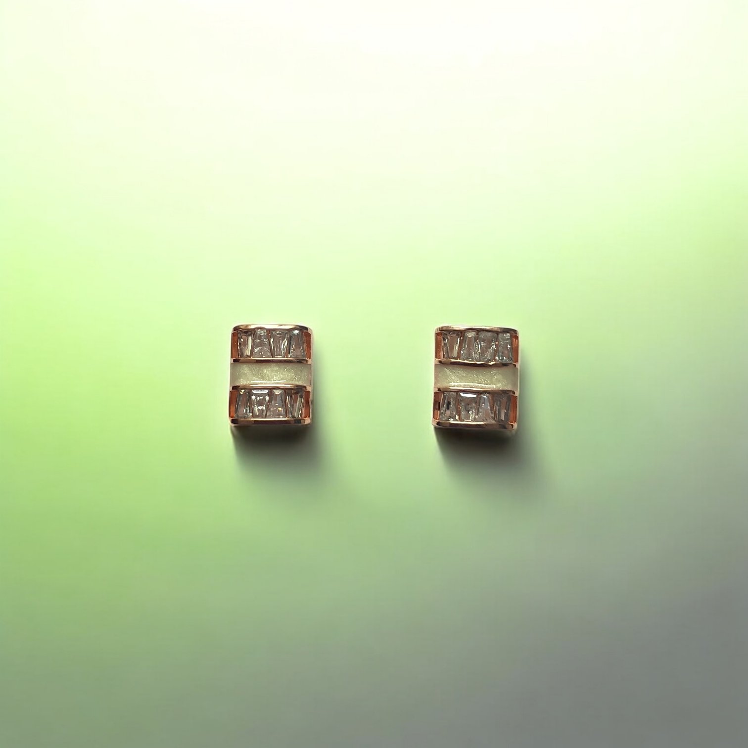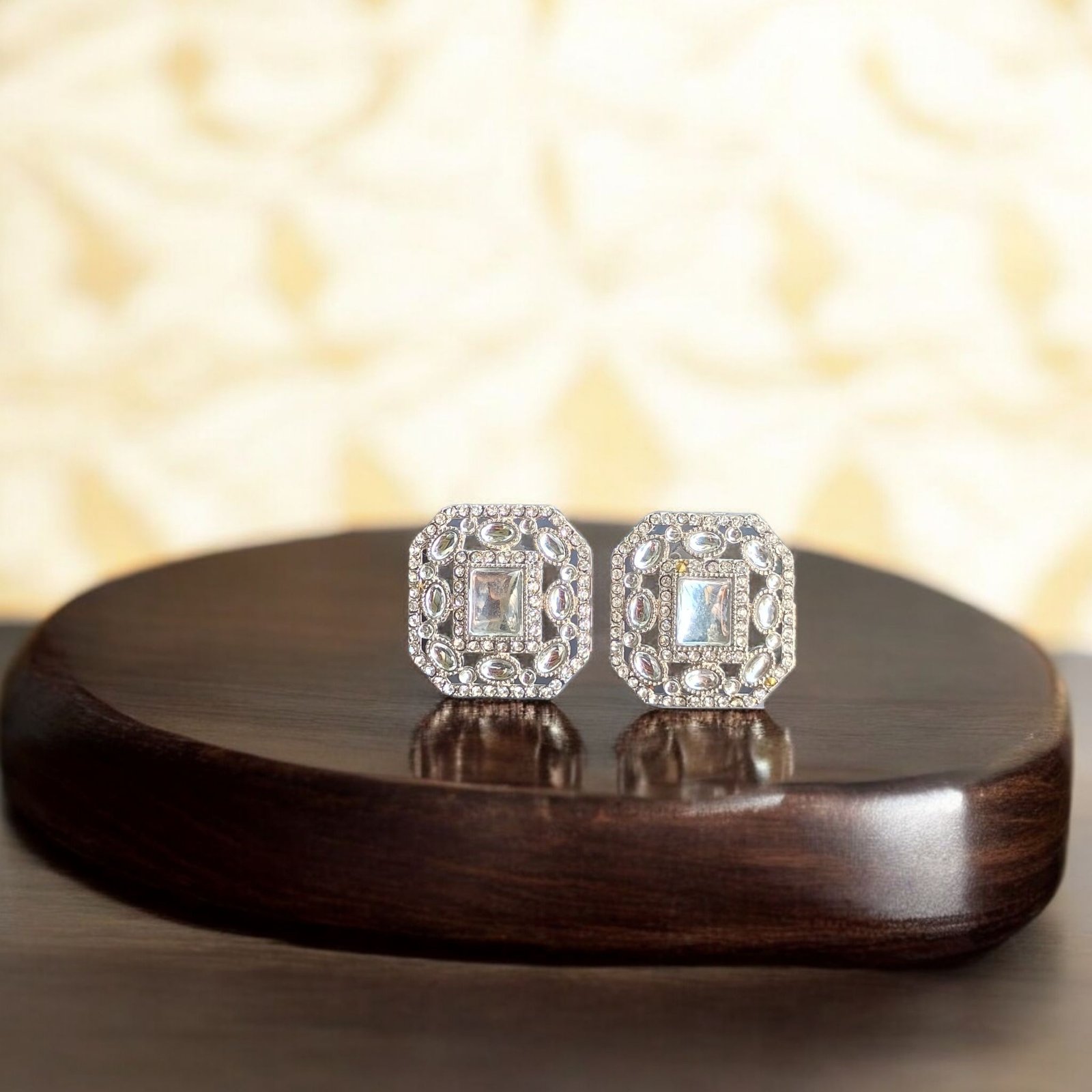 Square Shaped Silver Mother of Pearl Studded CZ Studs