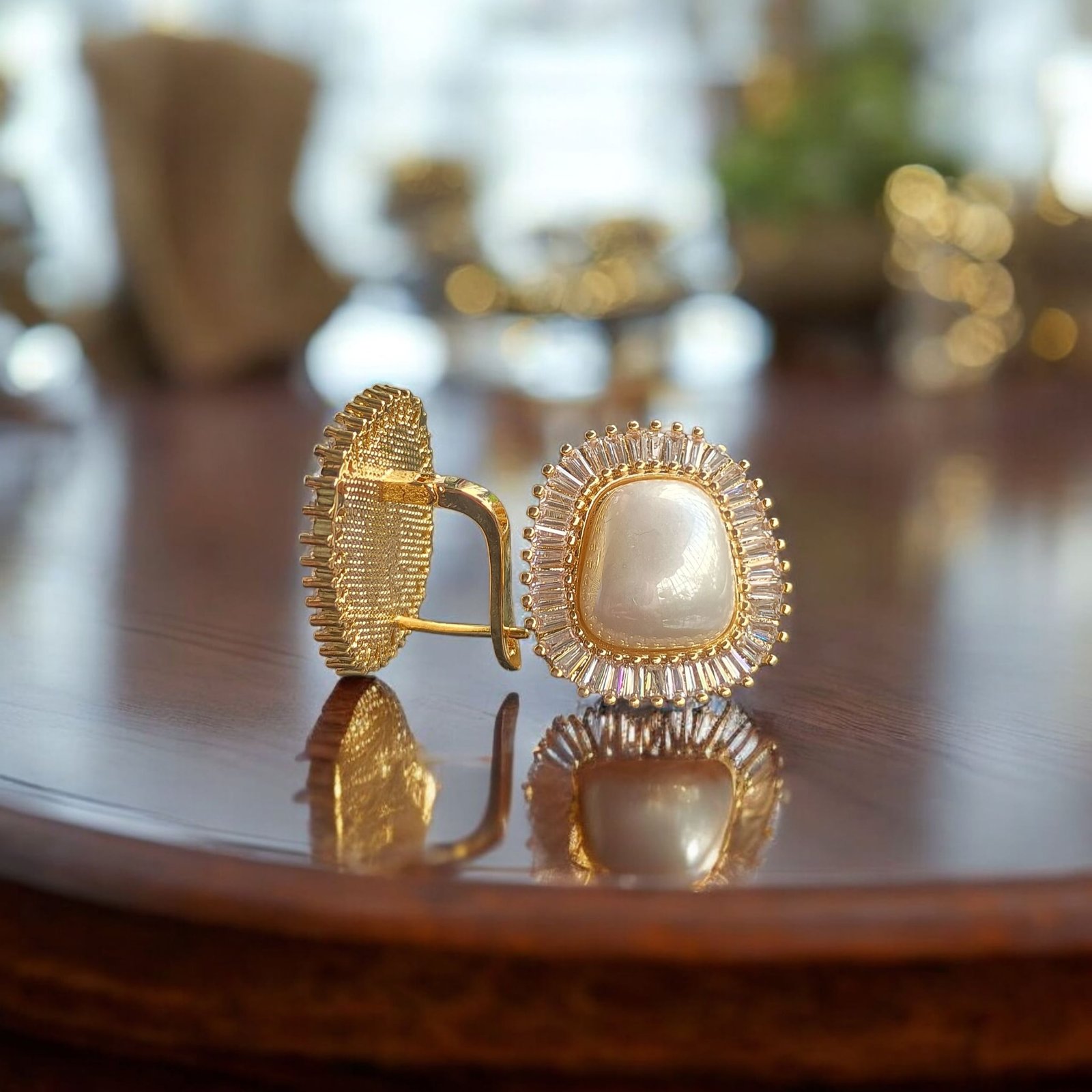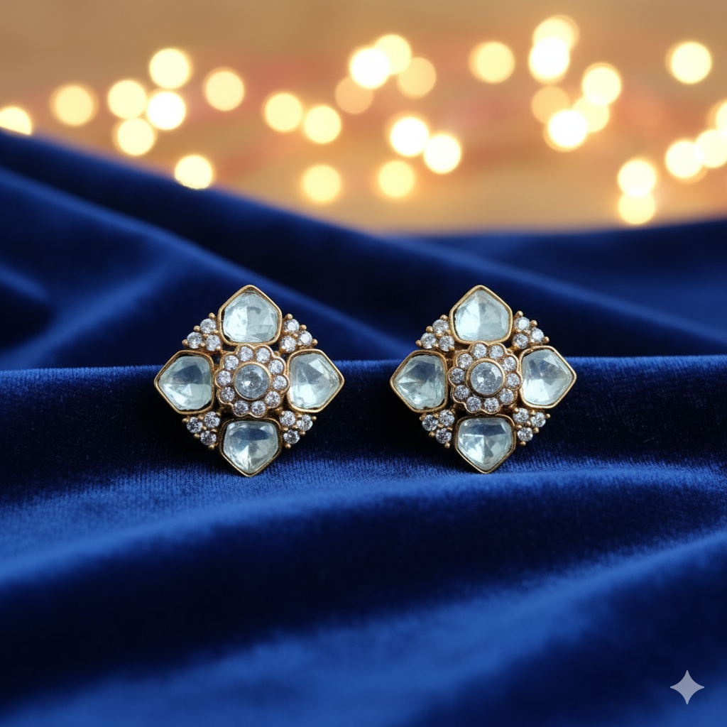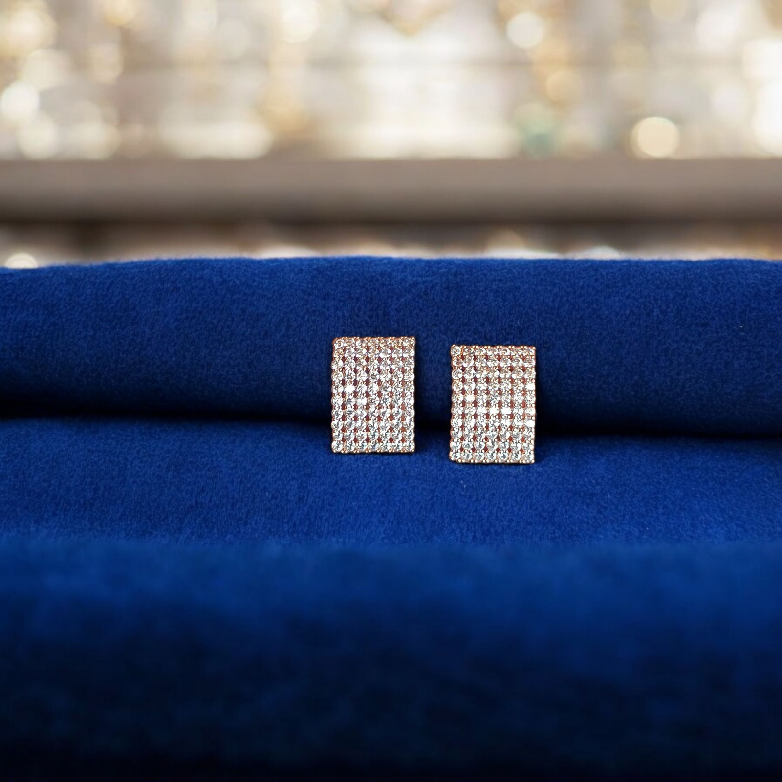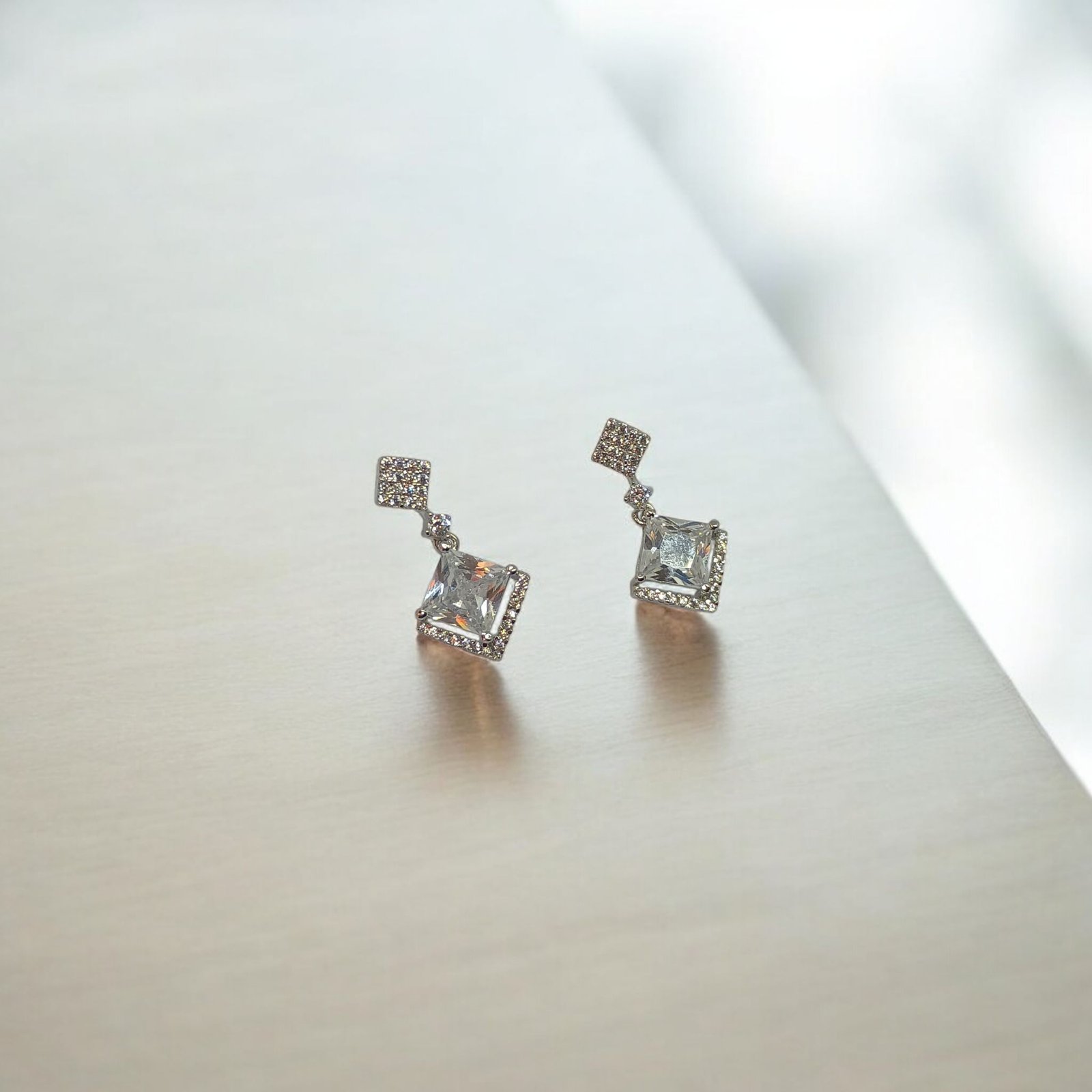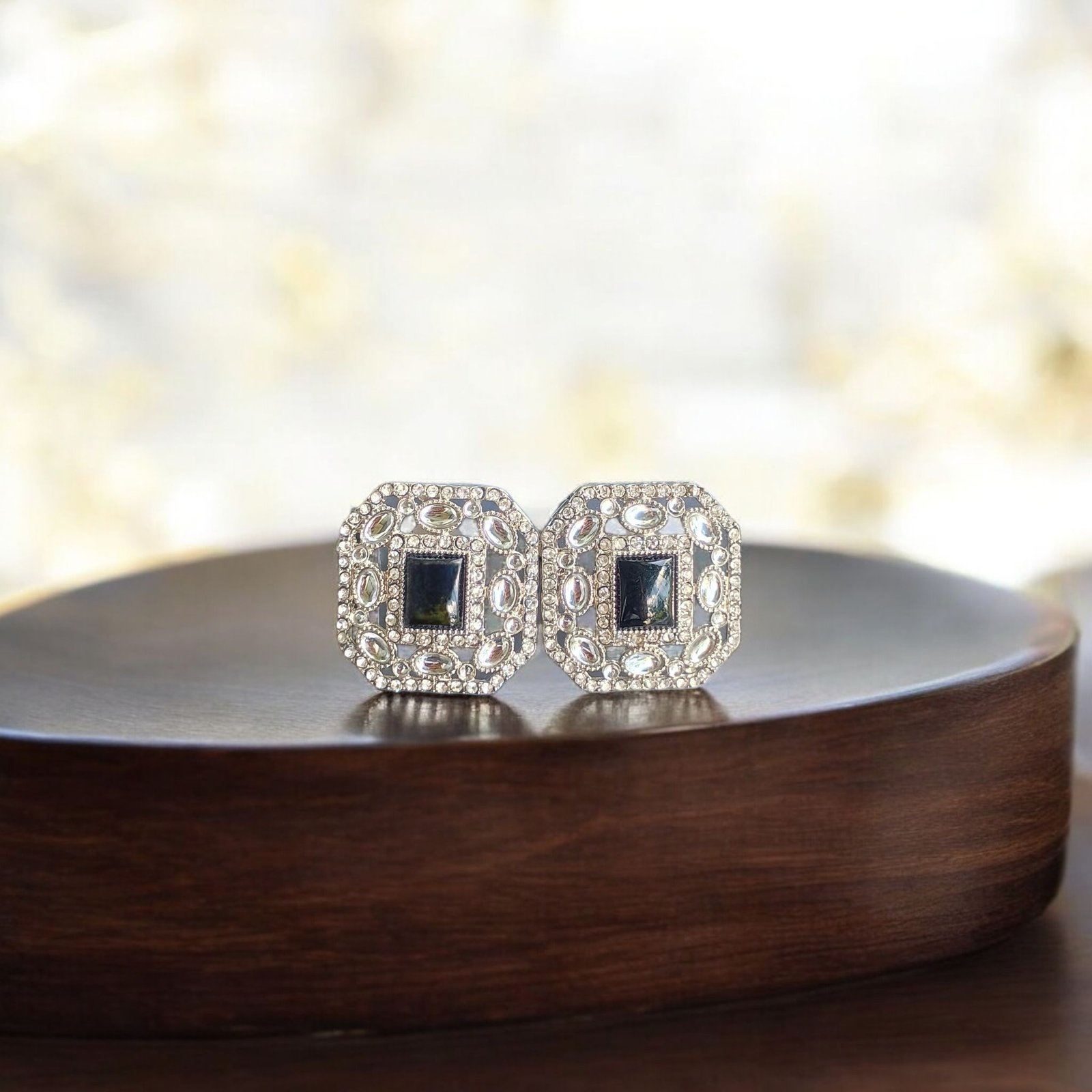 Square Shaped Silver Mother of Pearl Studded CZ Studs