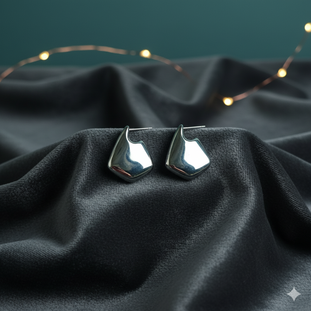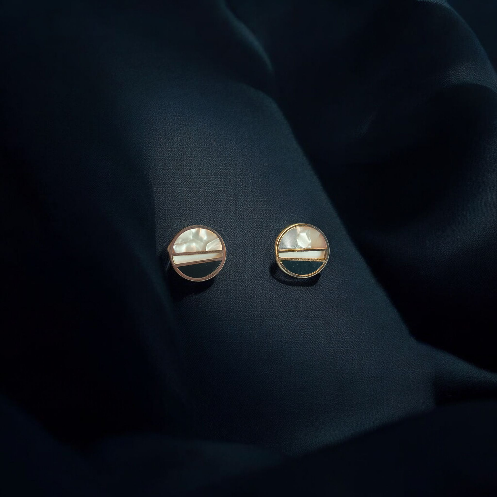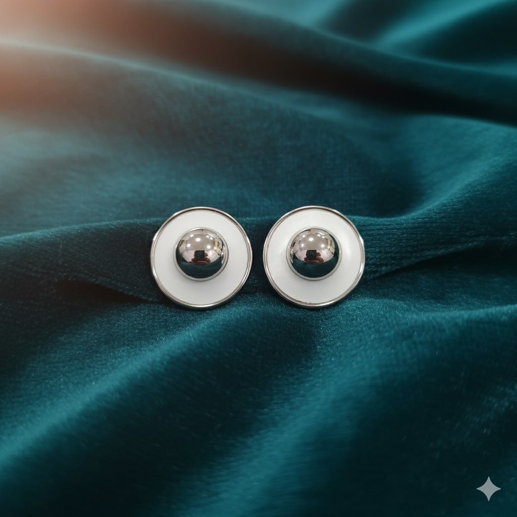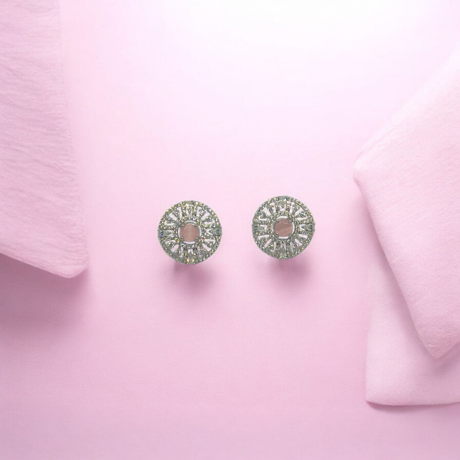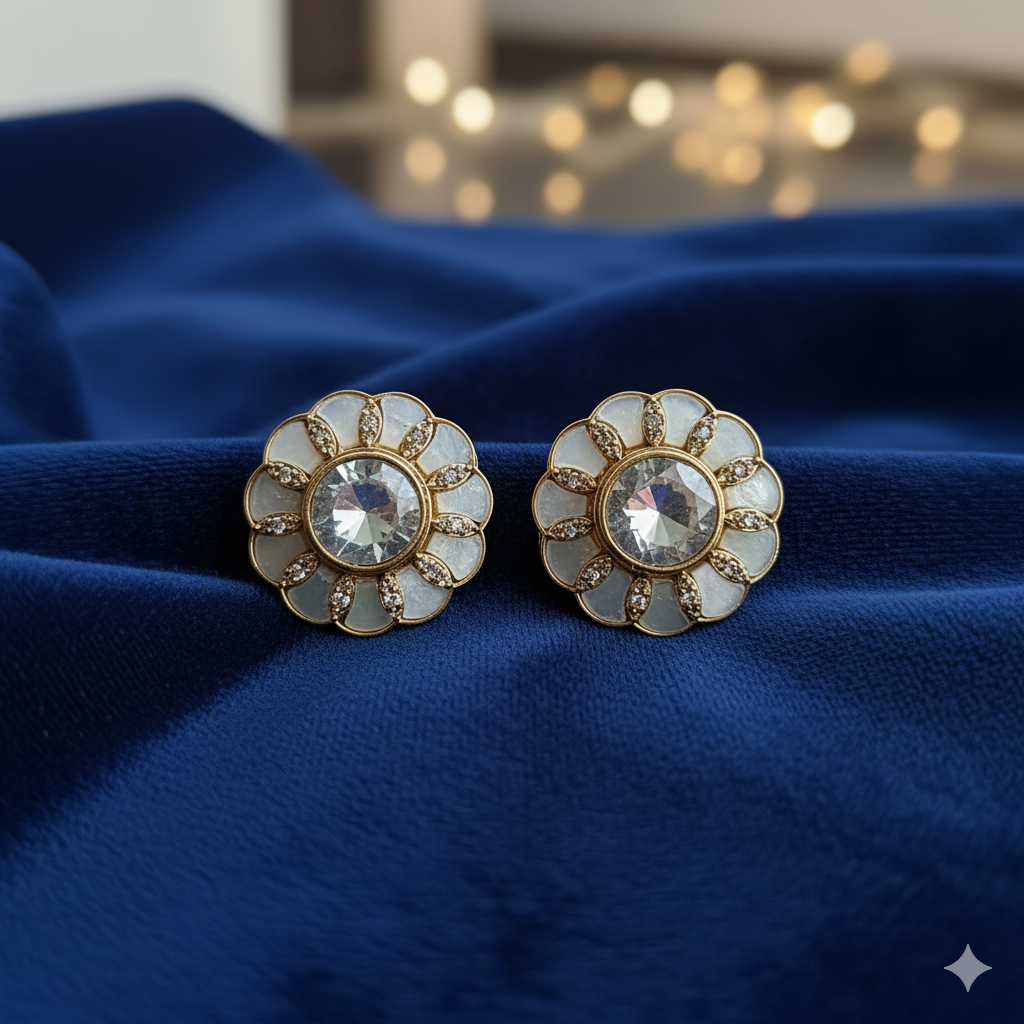 Square Shaped Silver Mother of Pearl Studded CZ Studs
