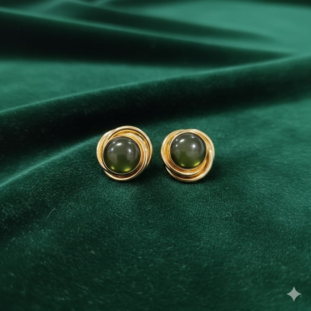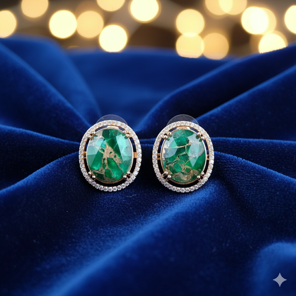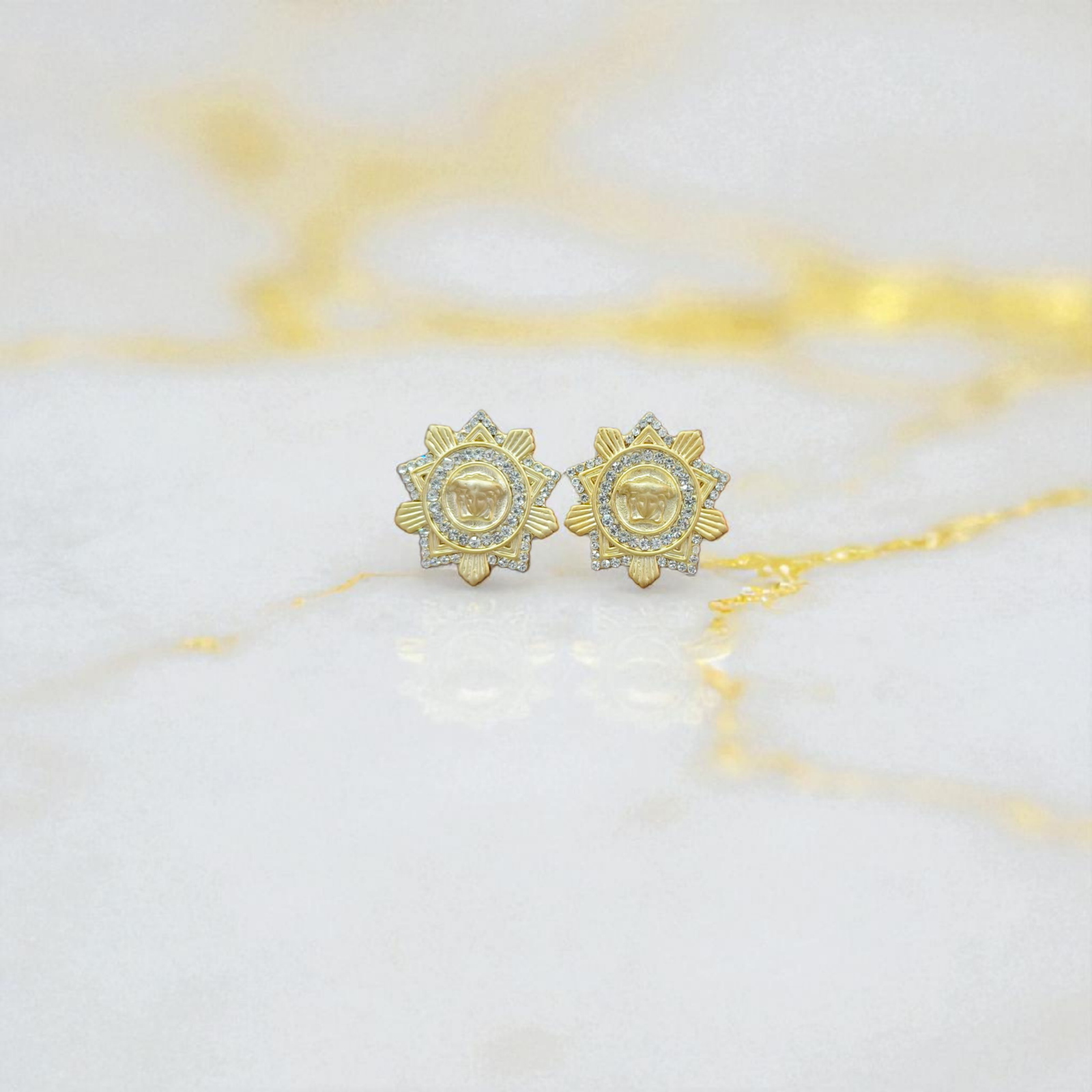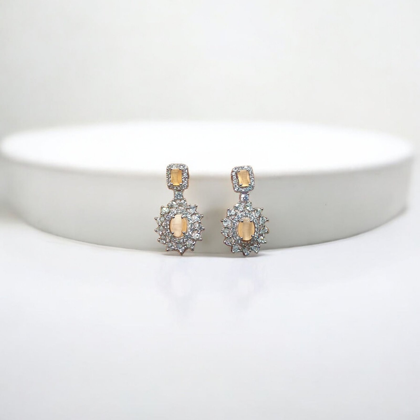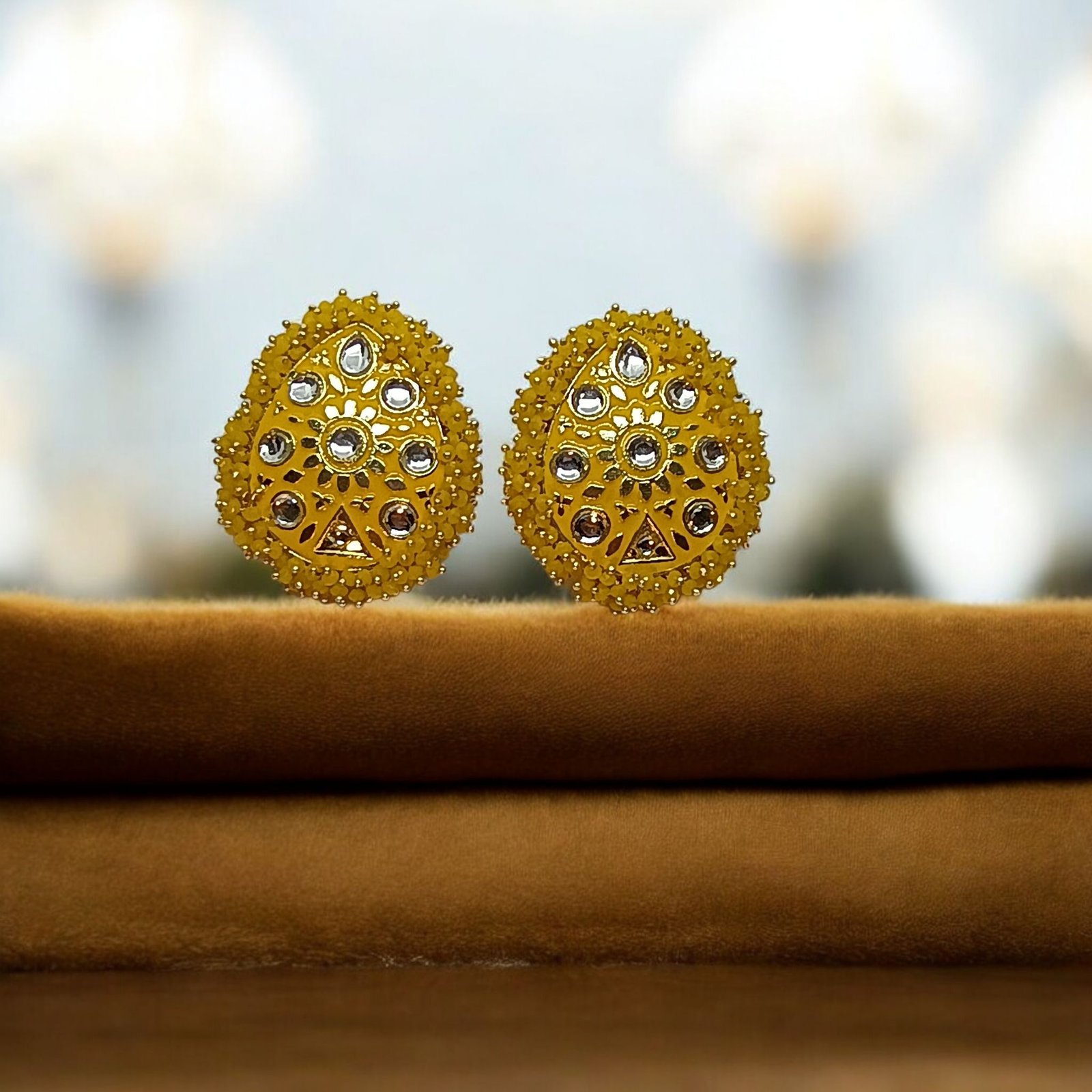 Gold Oval Yellow Stone Stud with Cubic Zirconia