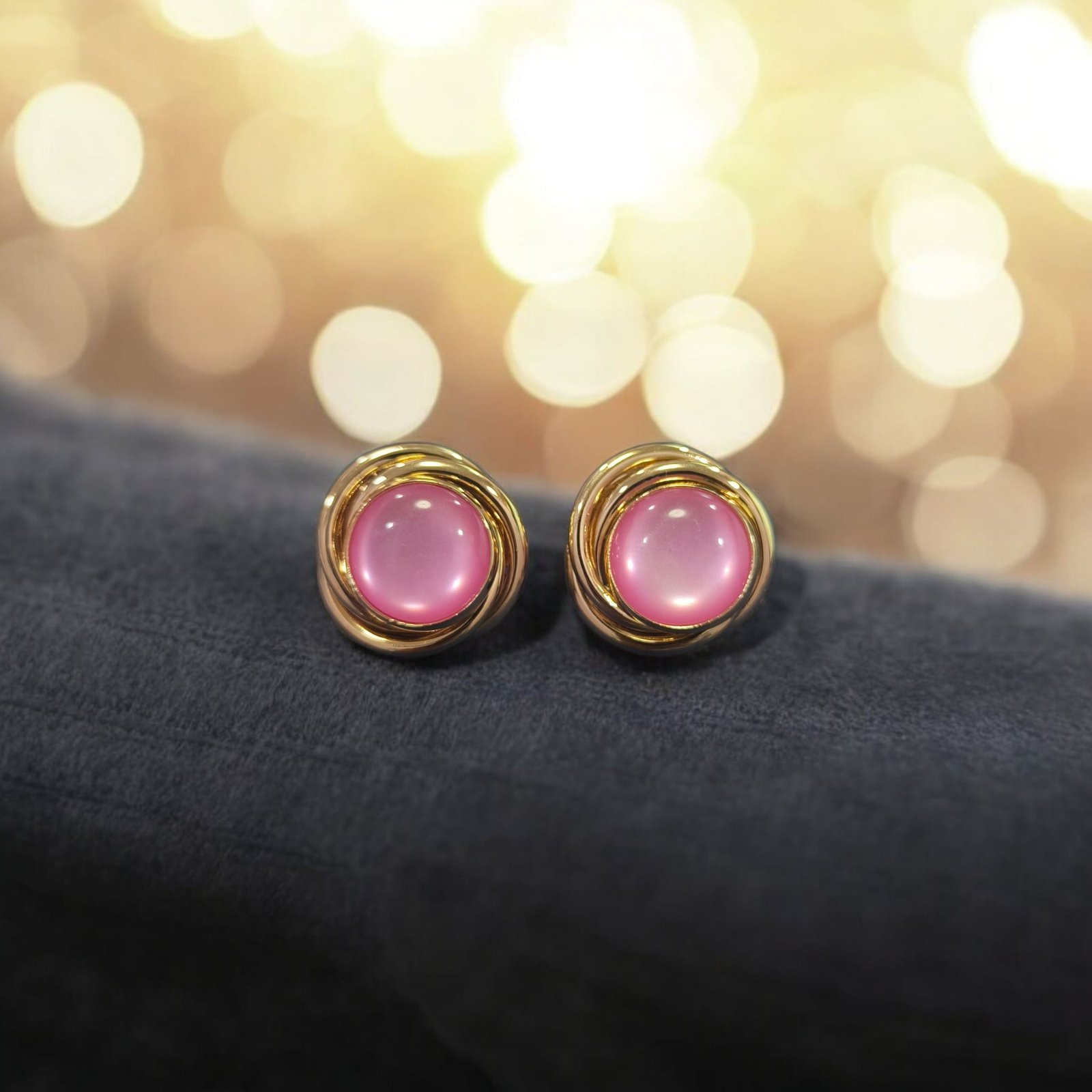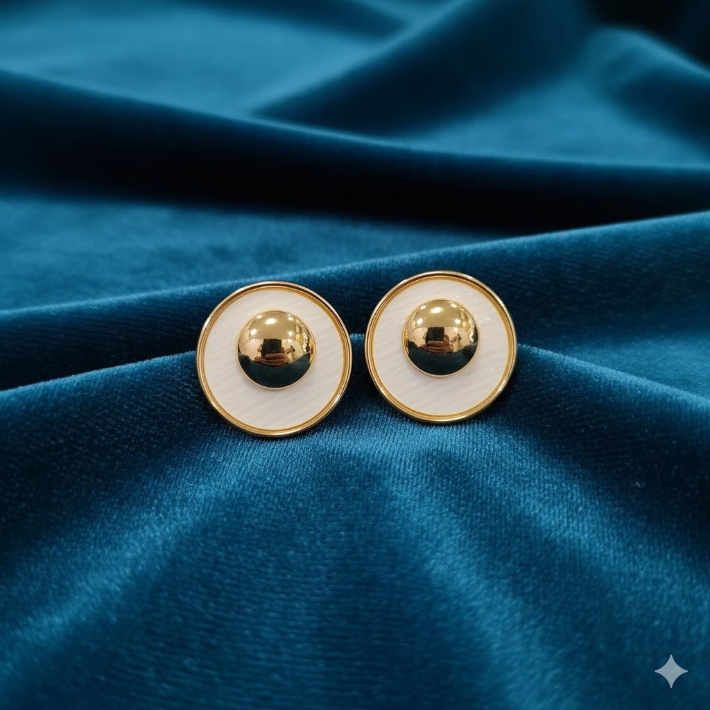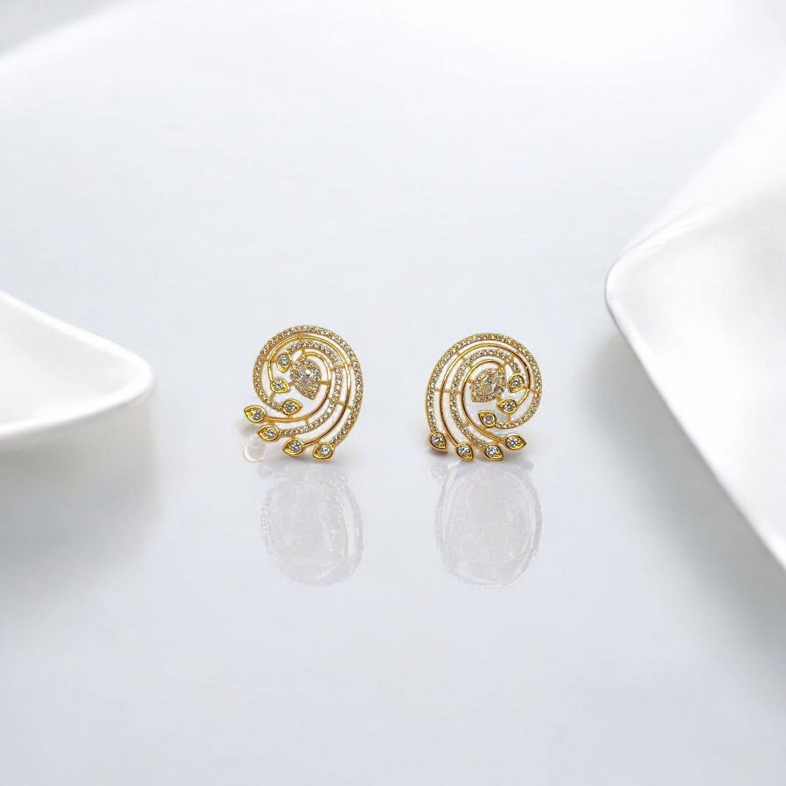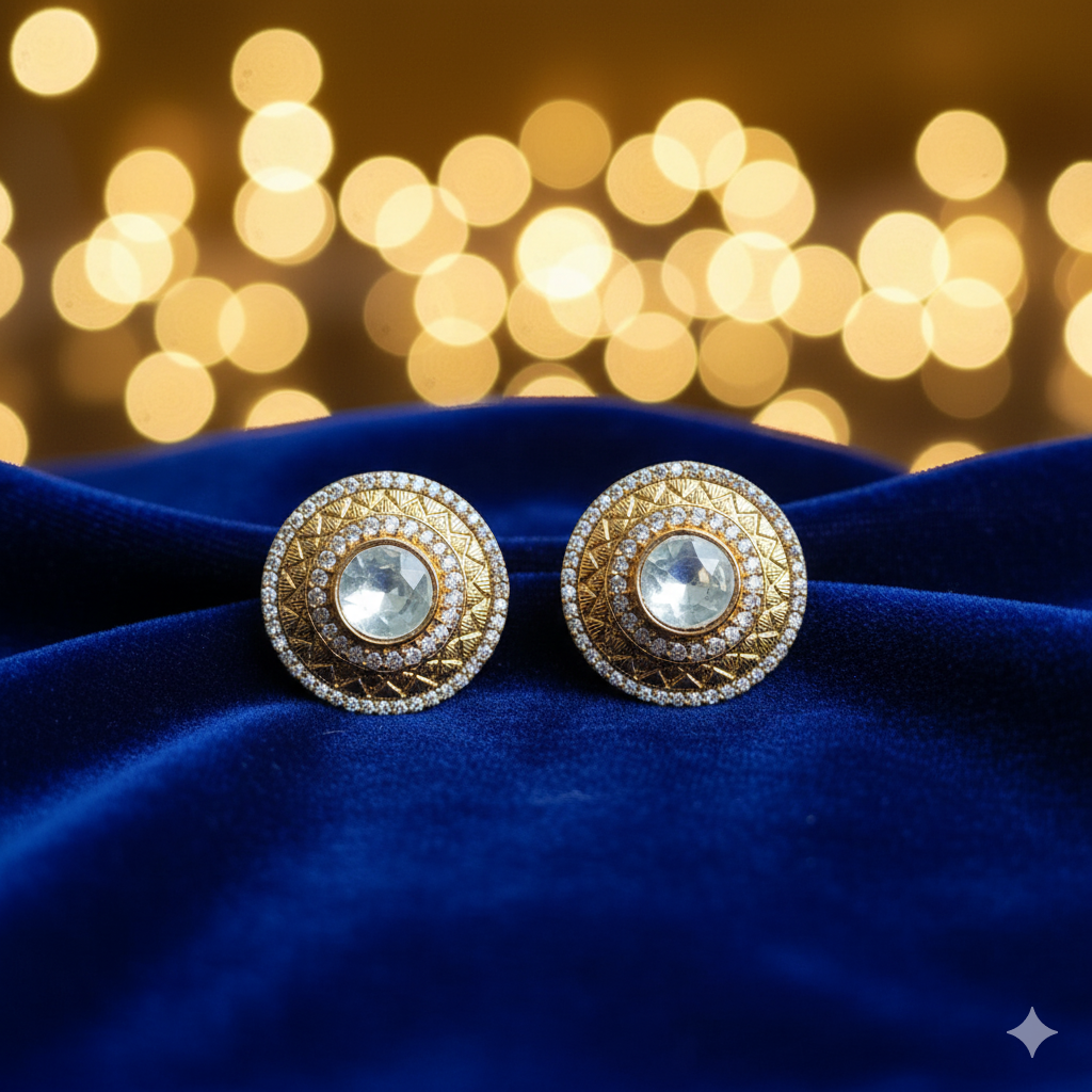 Gold Oval Yellow Stone Stud with Cubic Zirconia