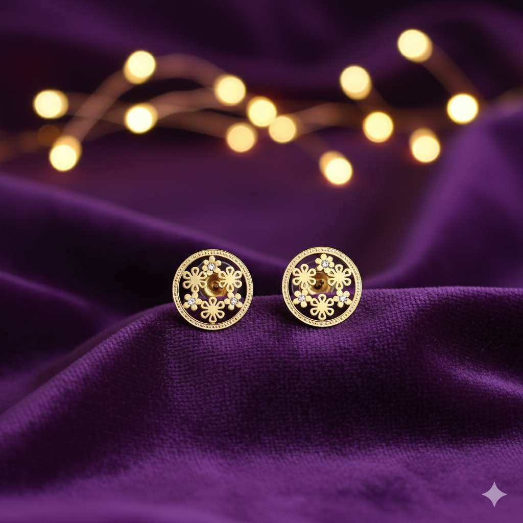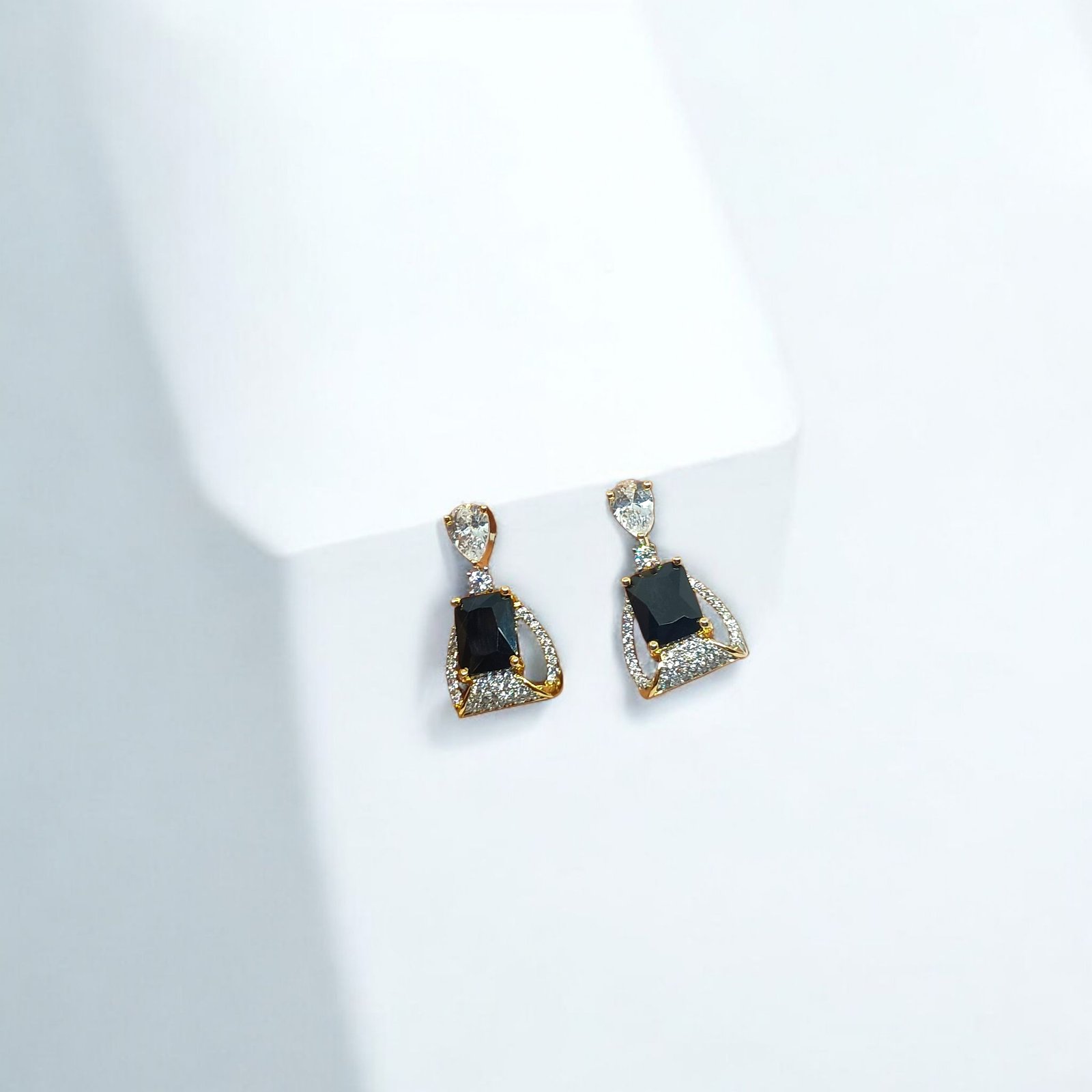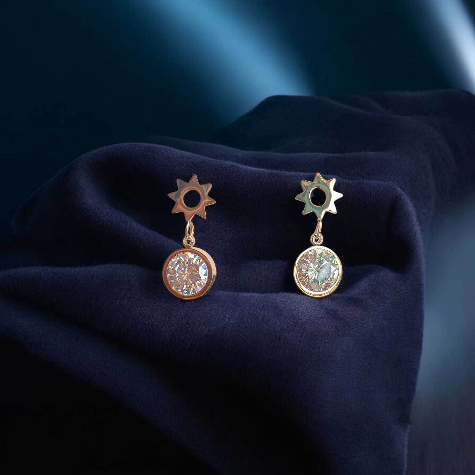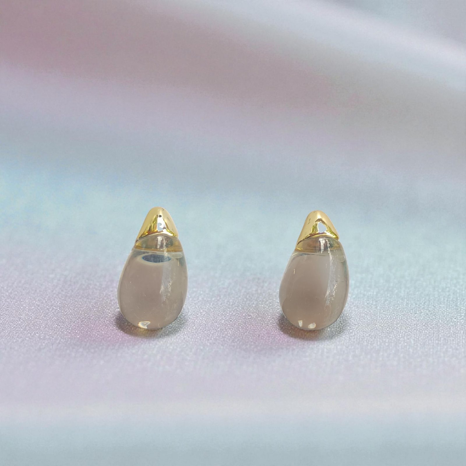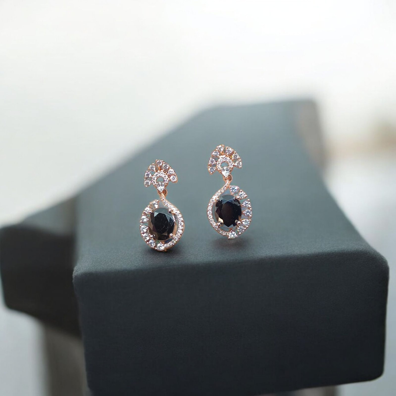 Gold Oval Yellow Stone Stud with Cubic Zirconia