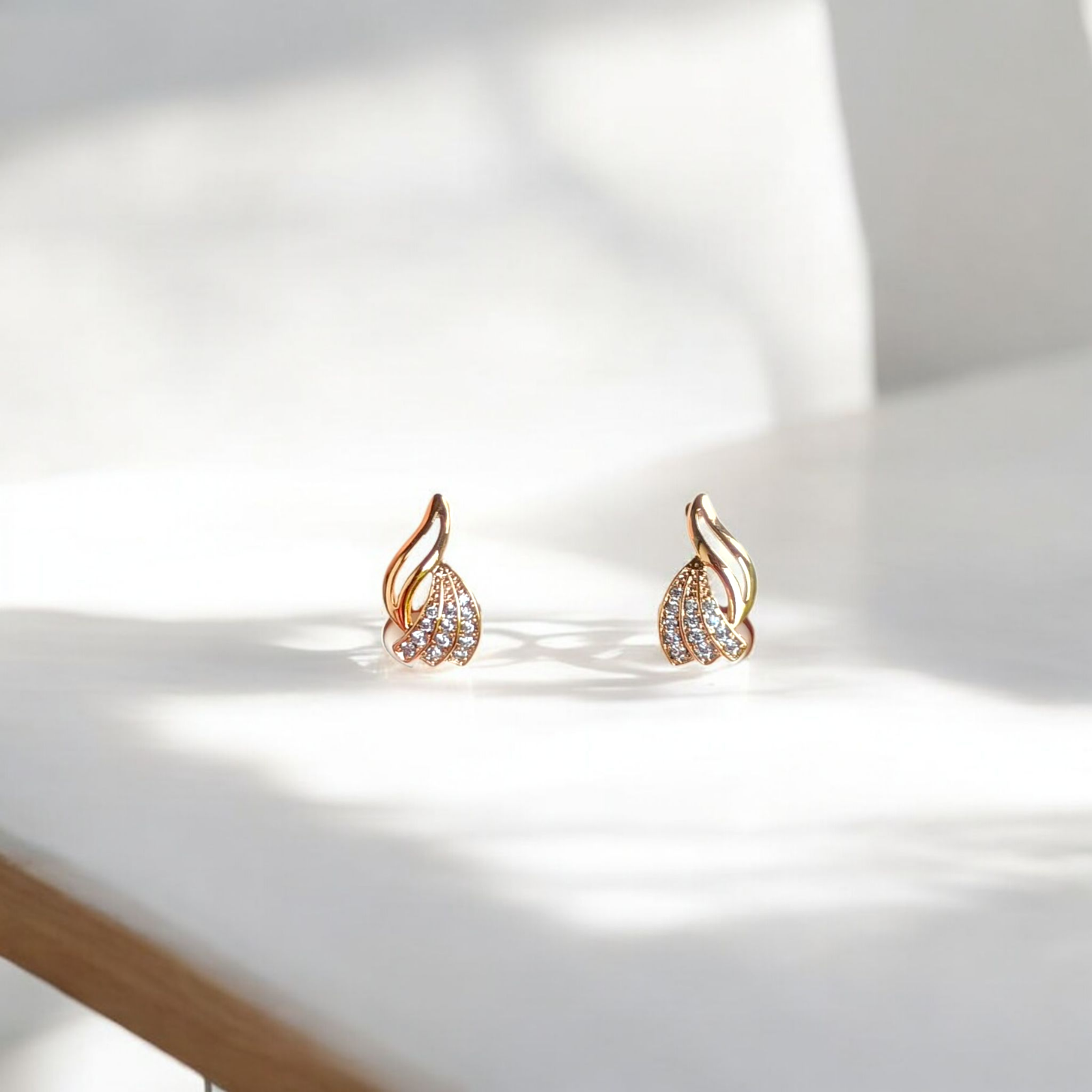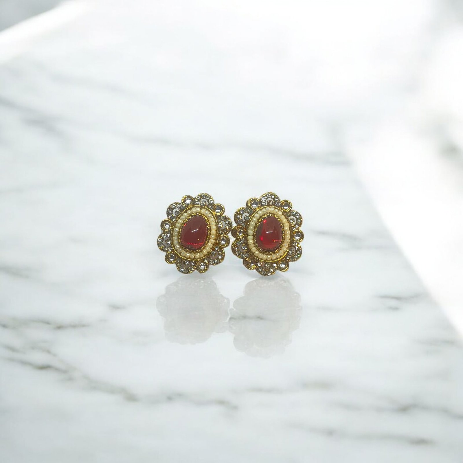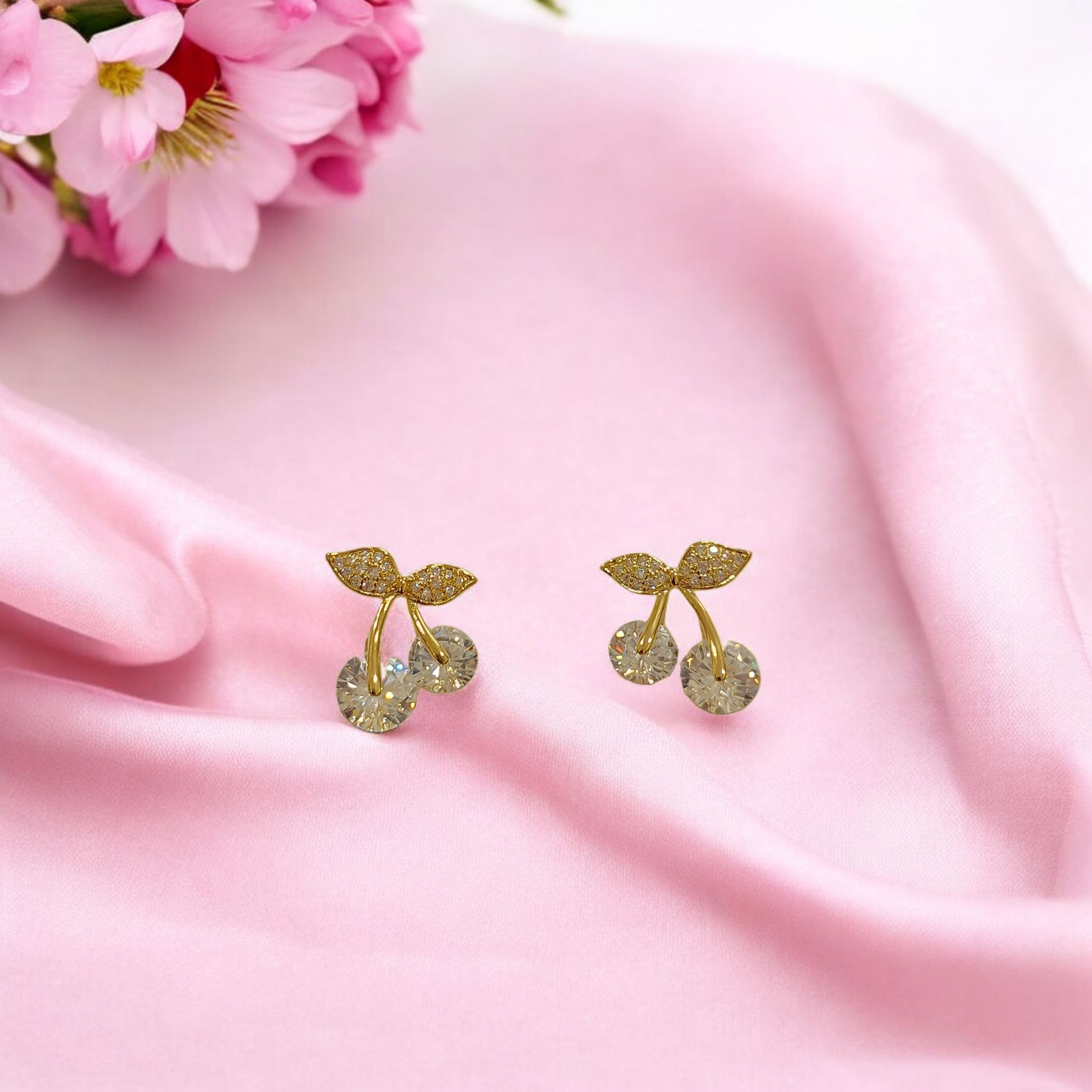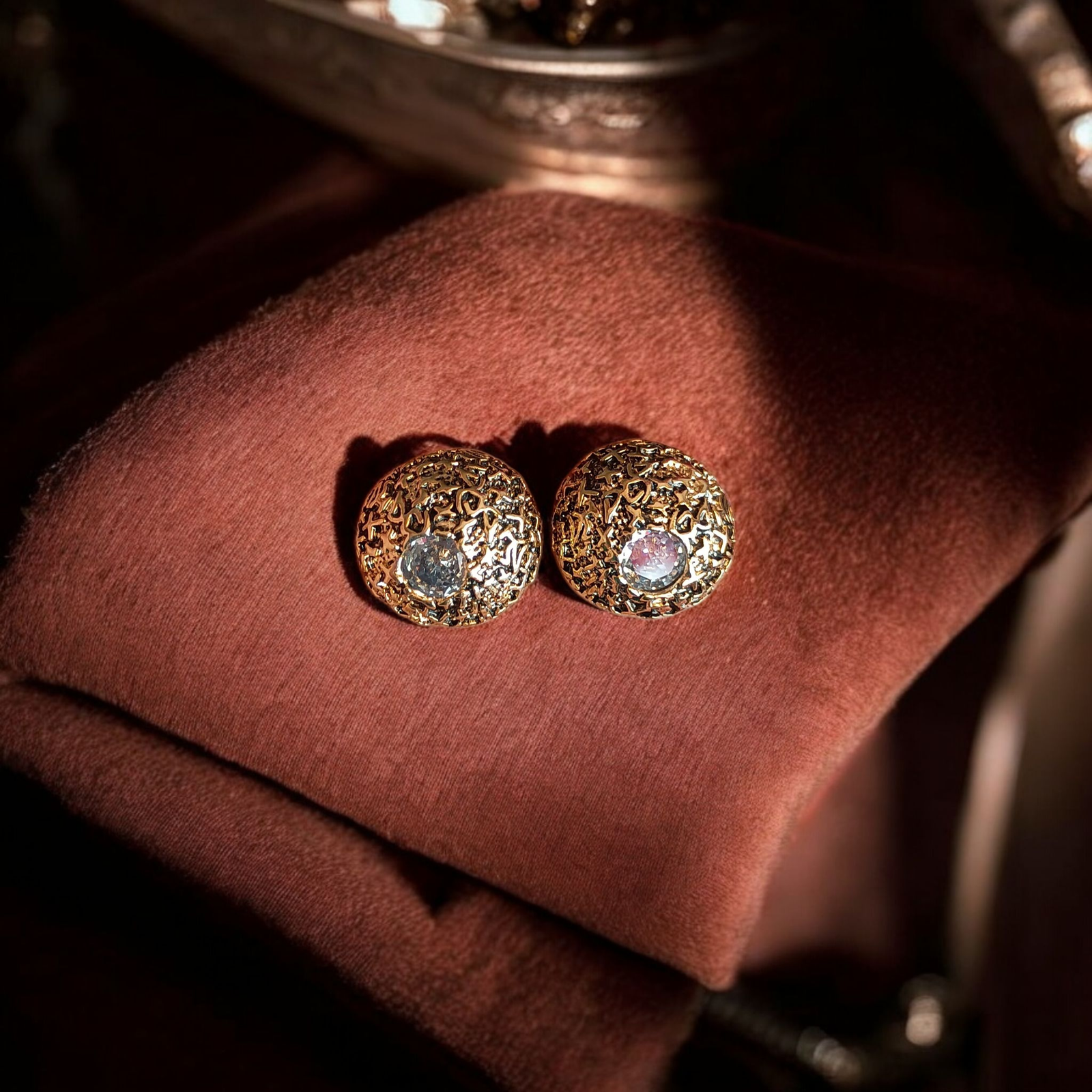 Gold Oval Yellow Stone Stud with Cubic Zirconia