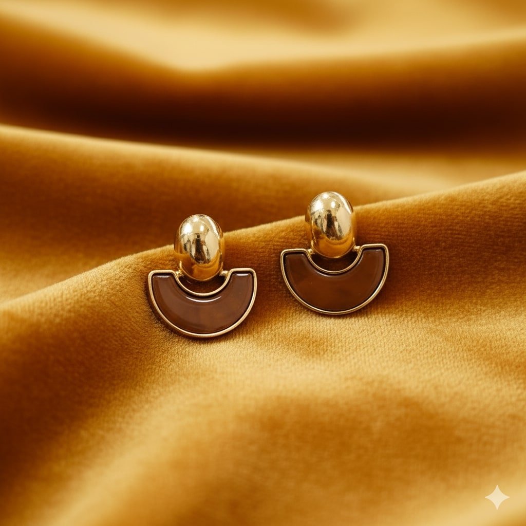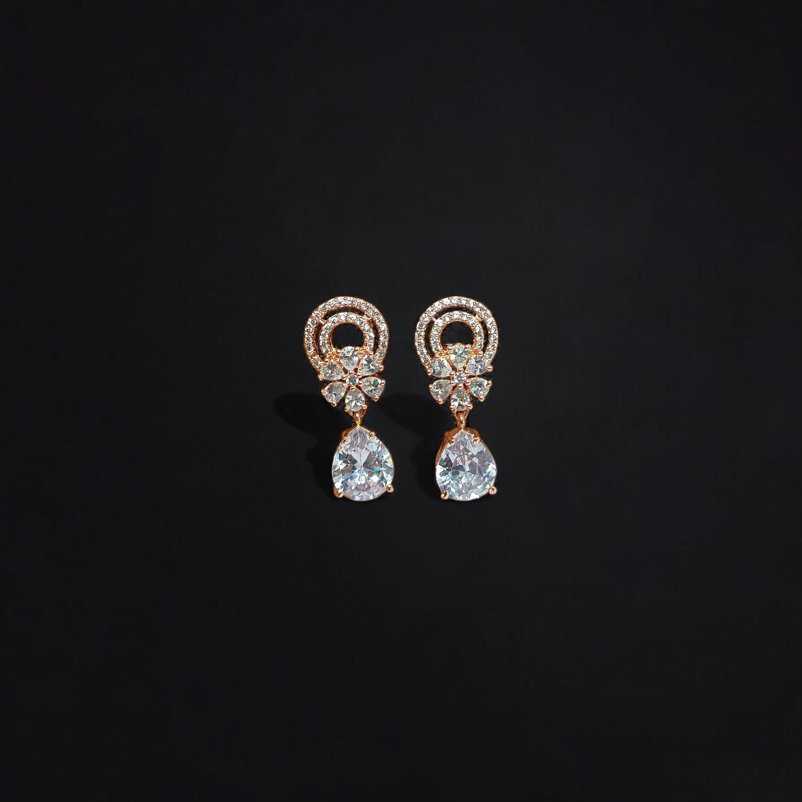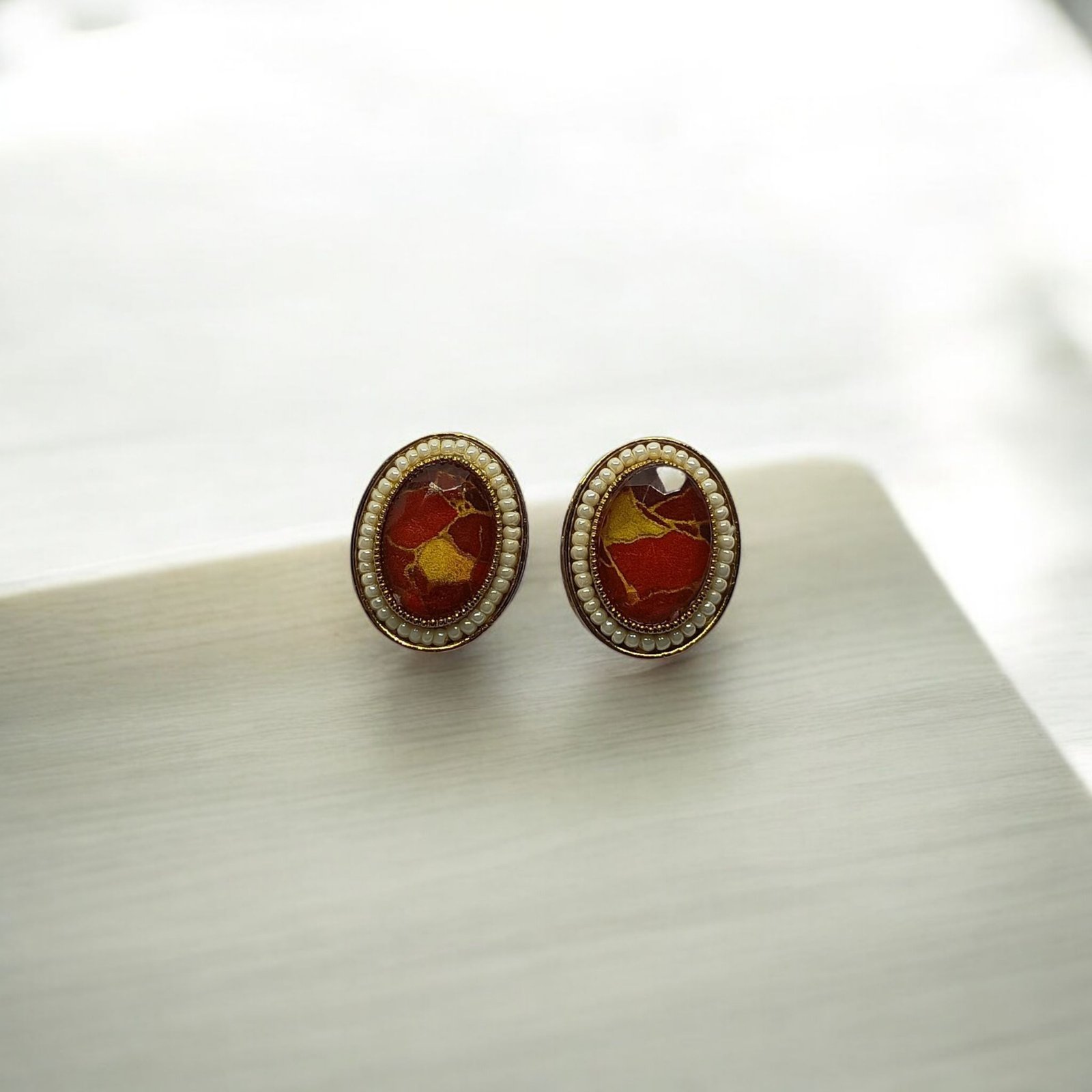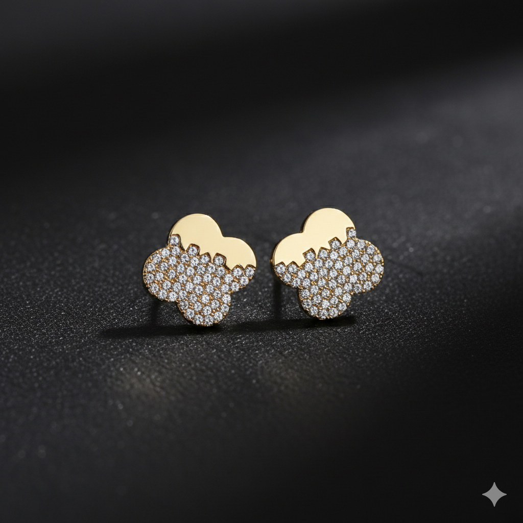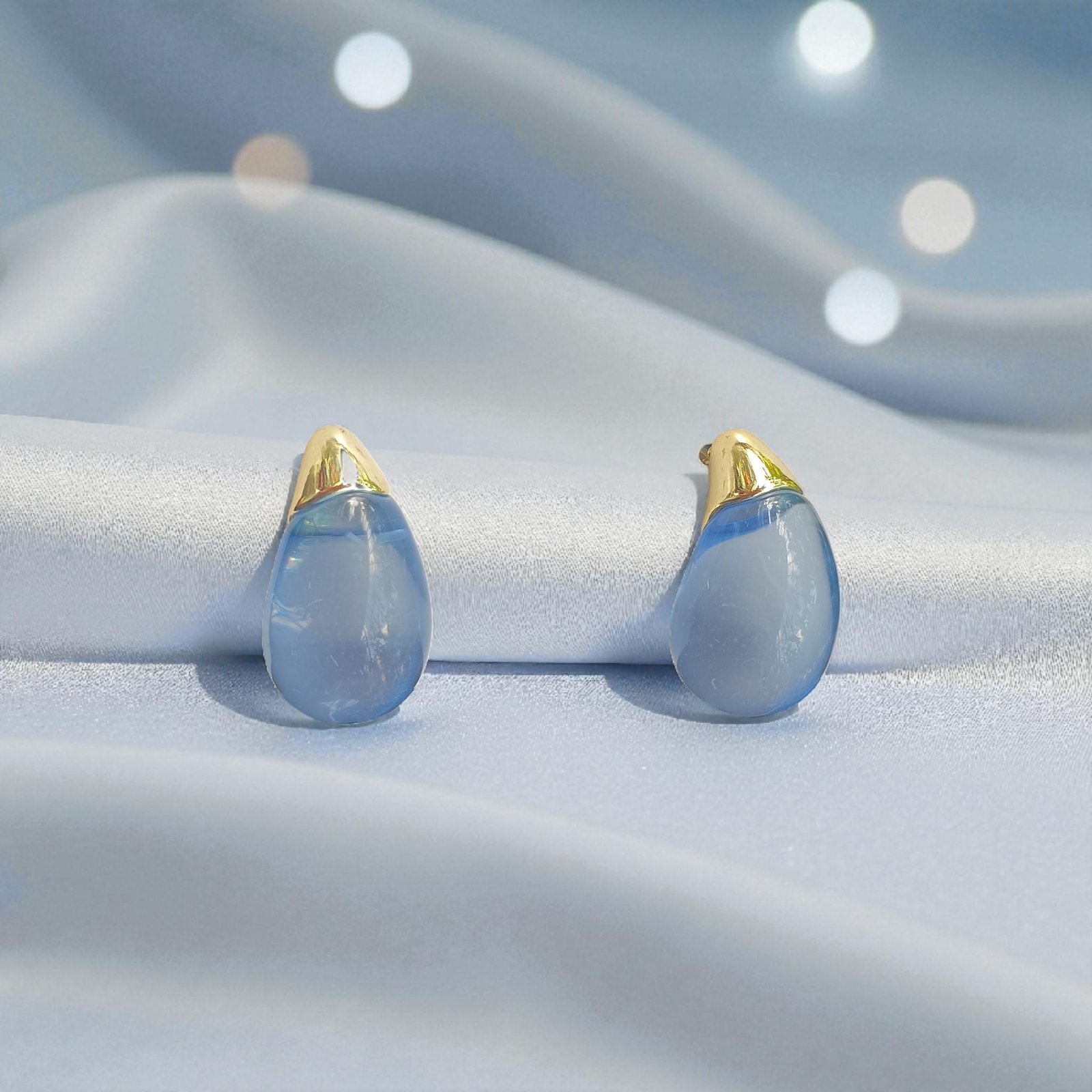 Gold Oval Yellow Stone Stud with Cubic Zirconia