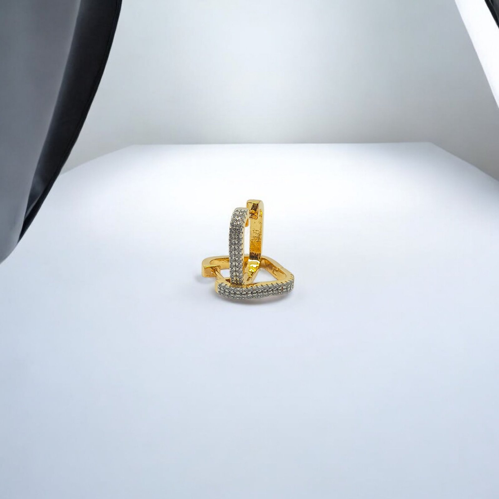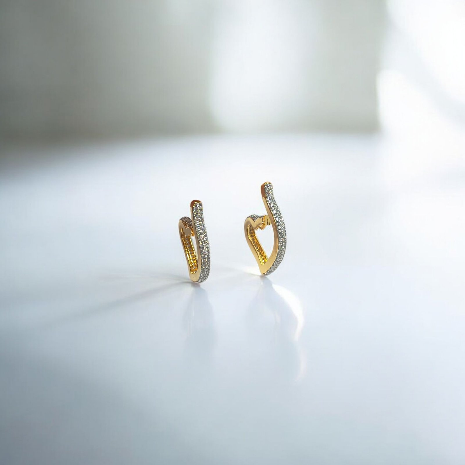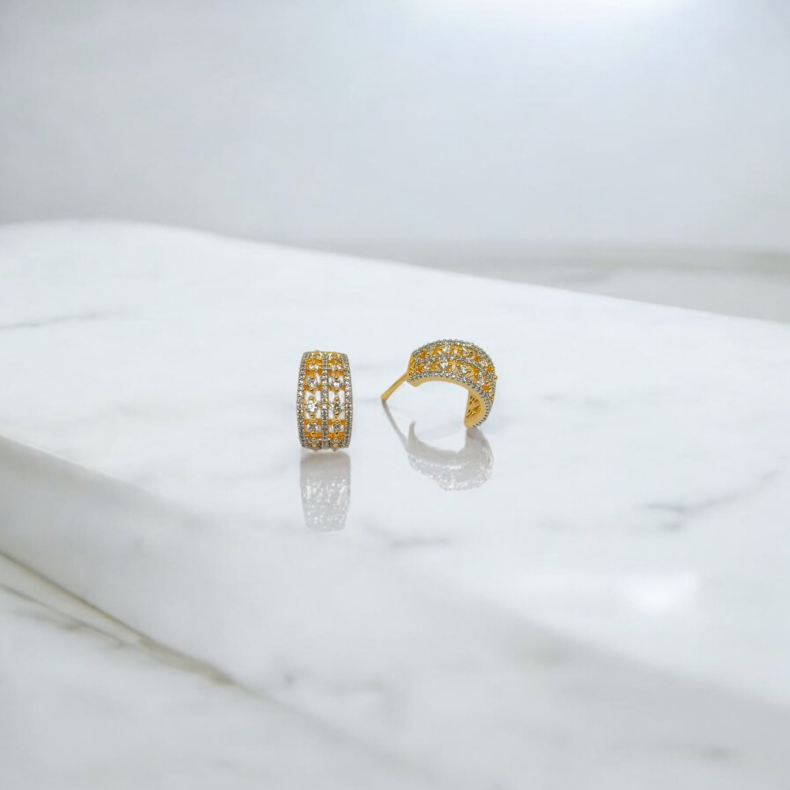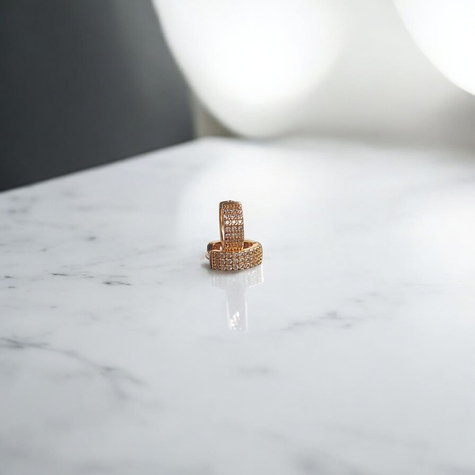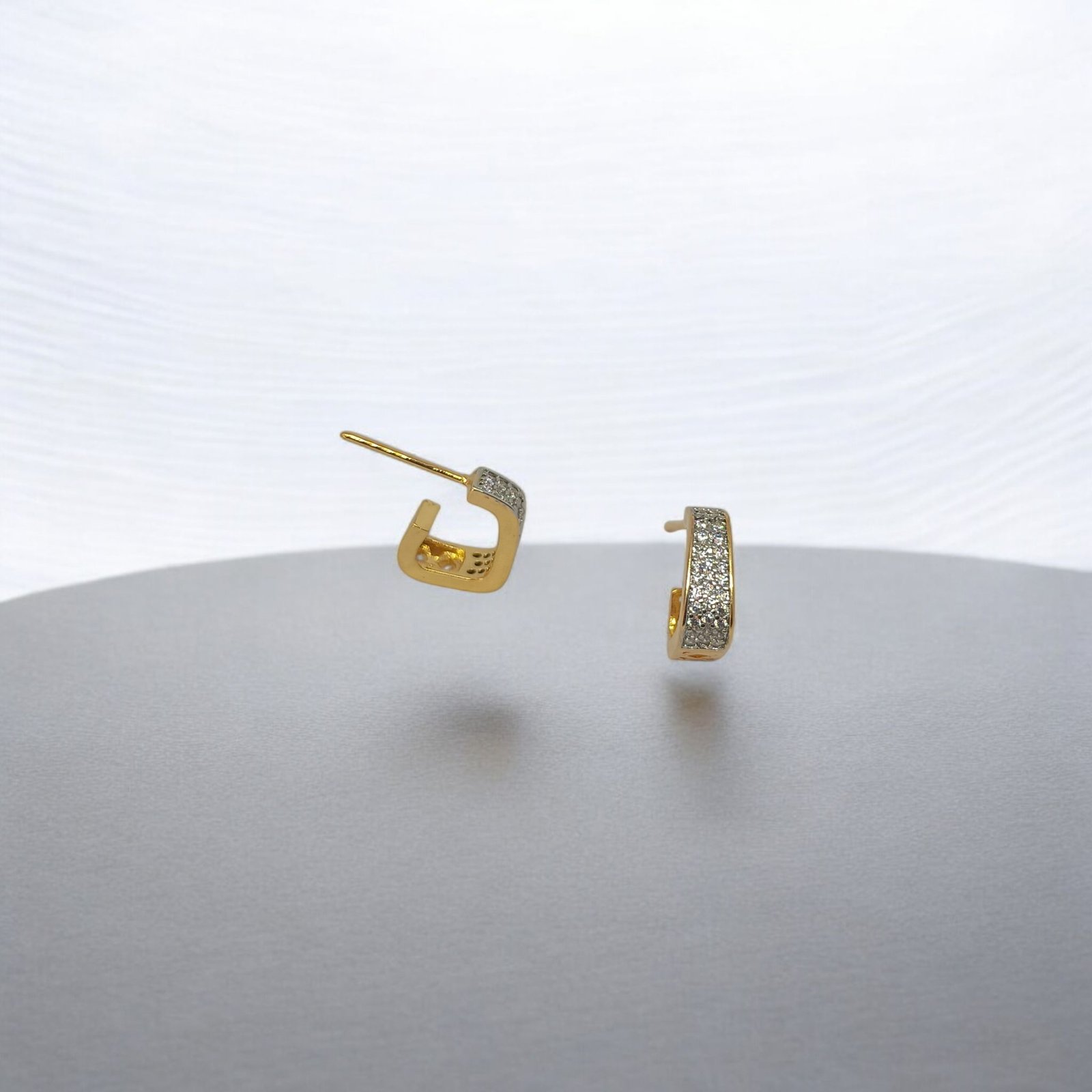 Gold Plated Square Edge Pave Huggie Hoop Earrings