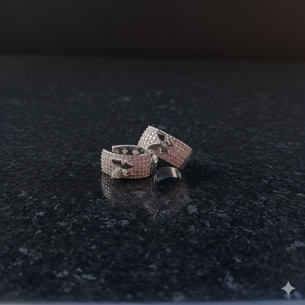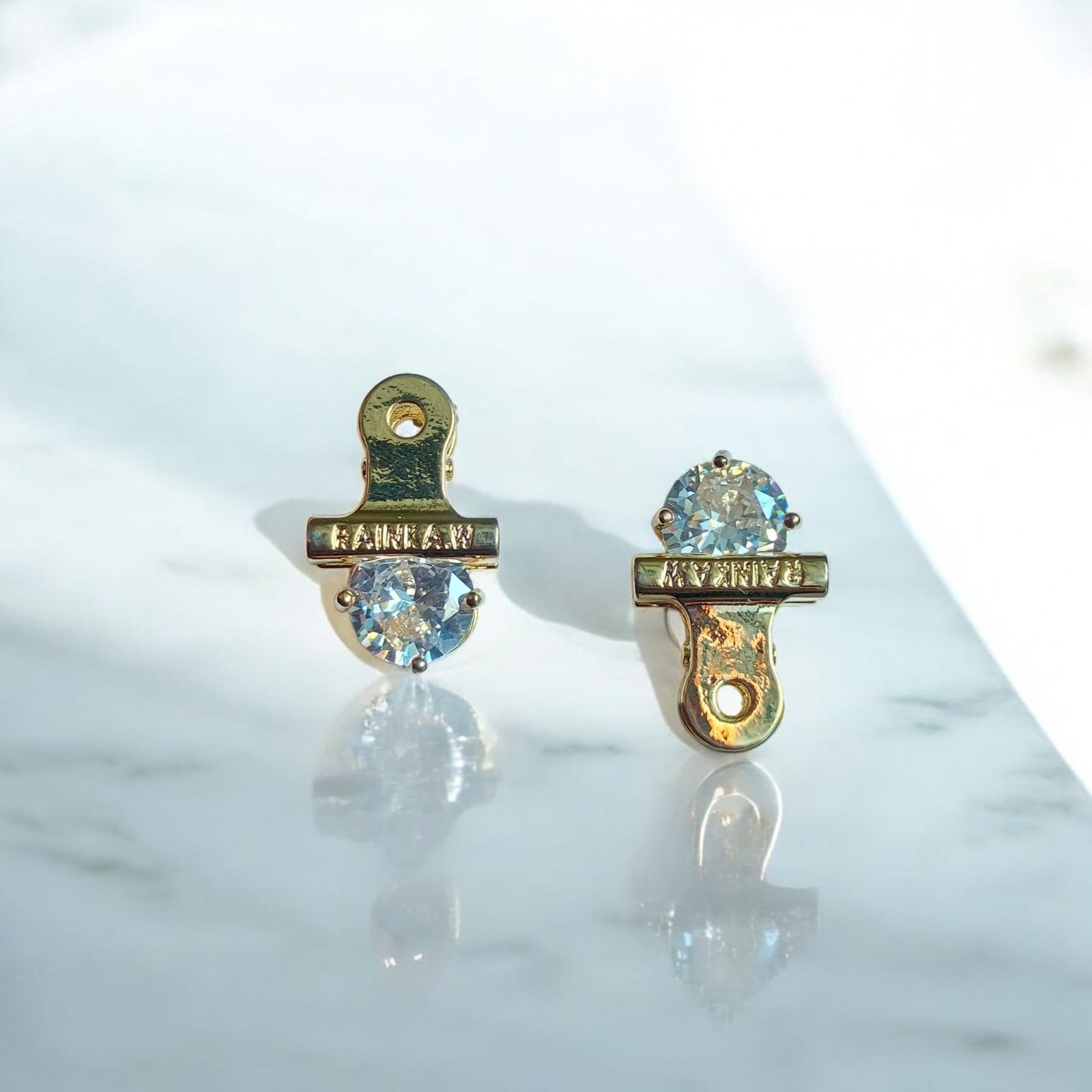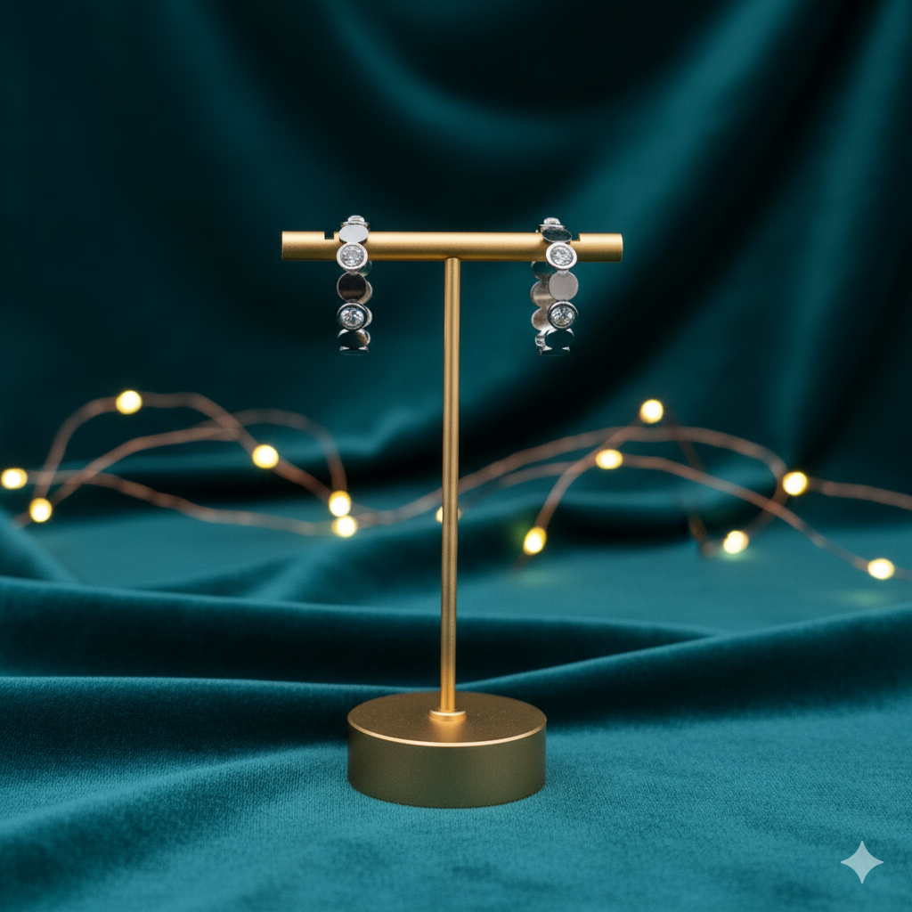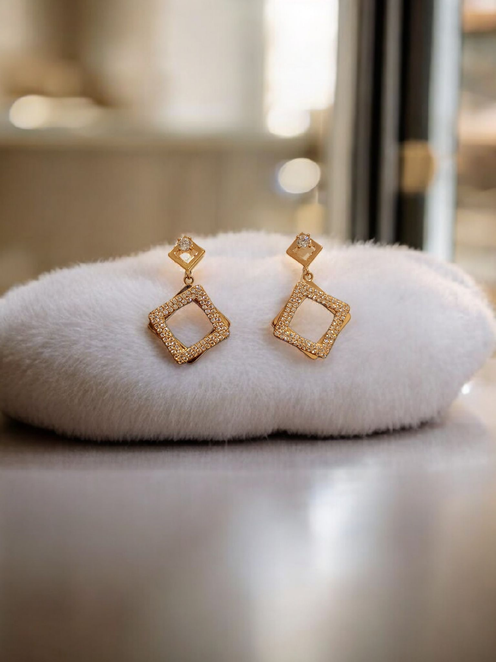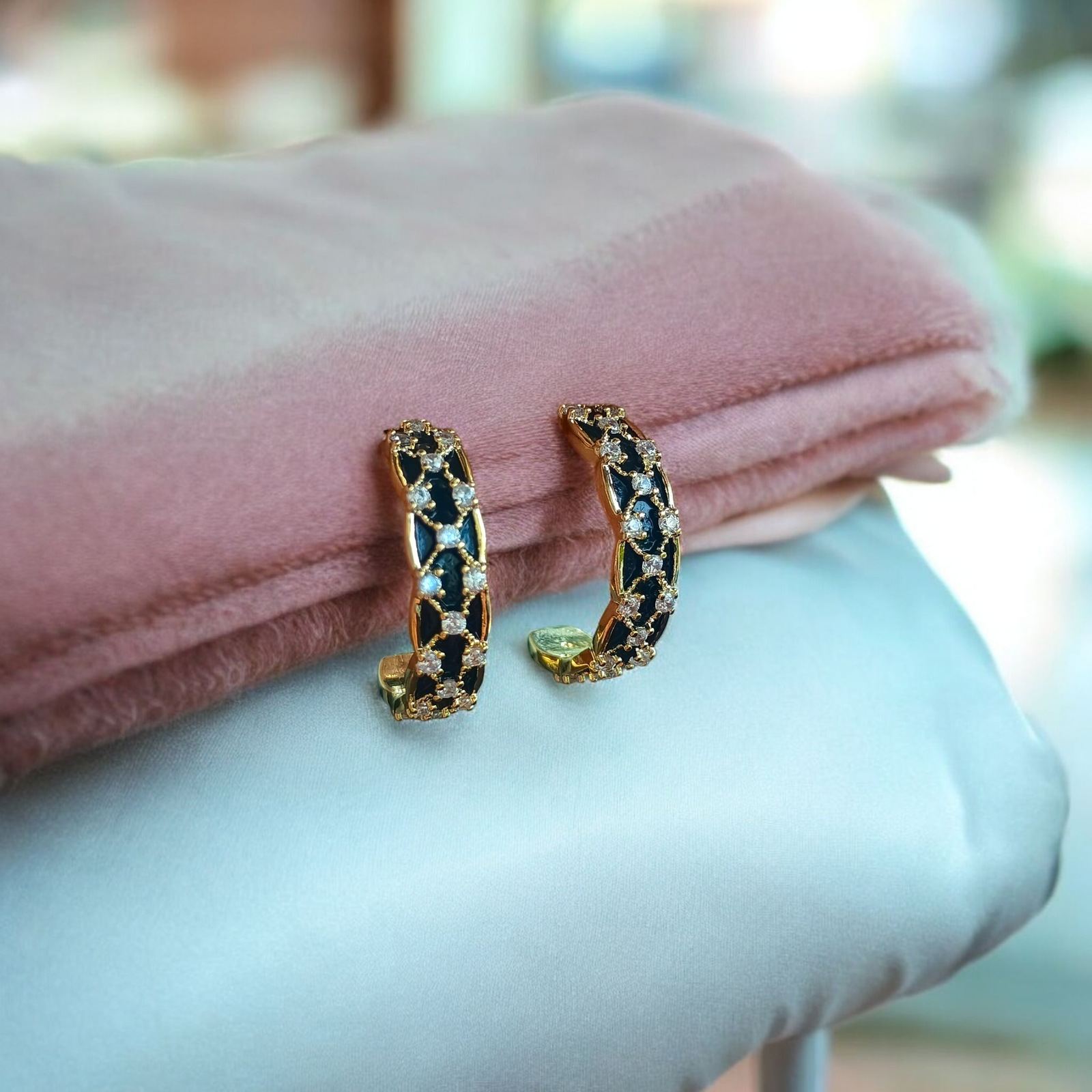 Gold Plated Square Edge Pave Huggie Hoop Earrings
