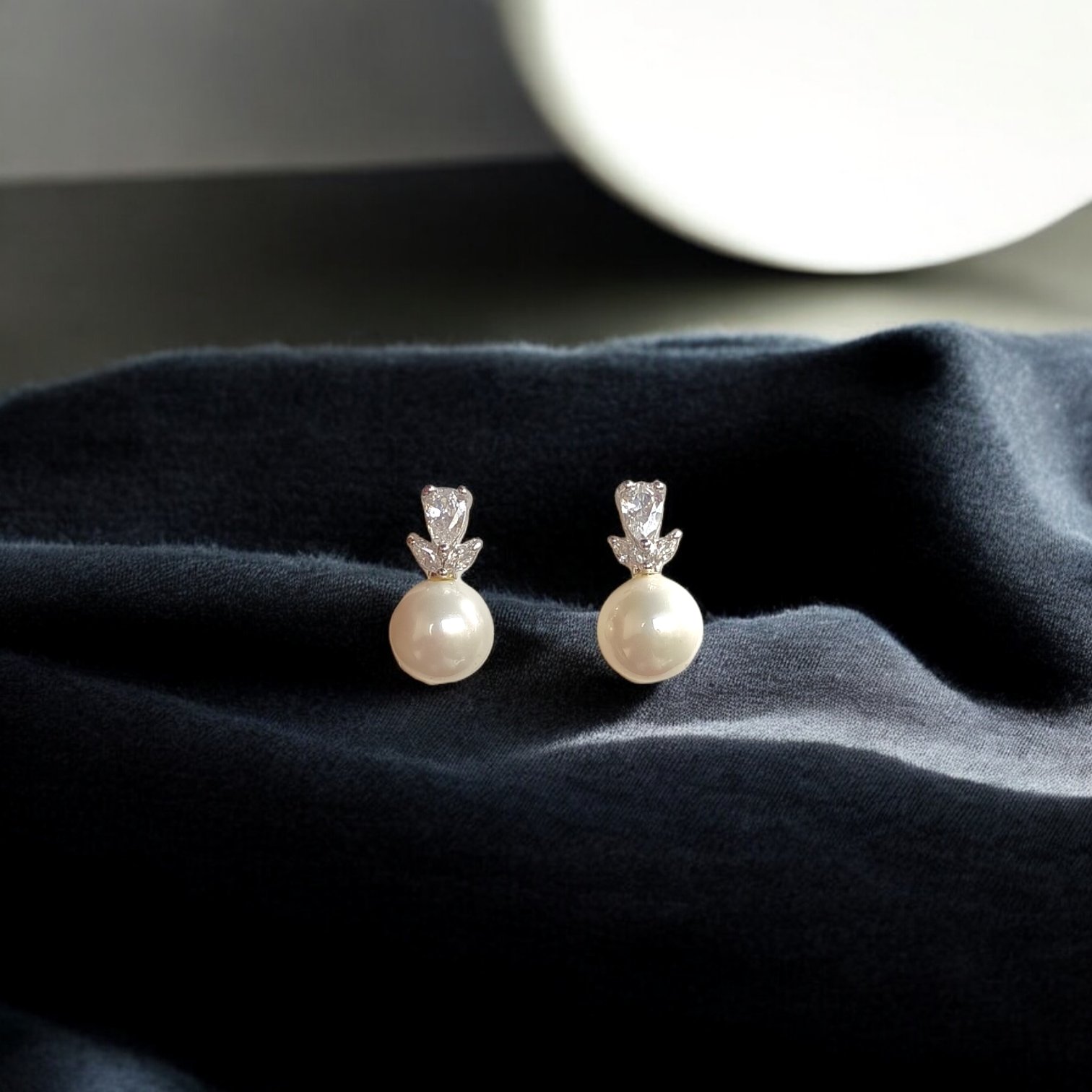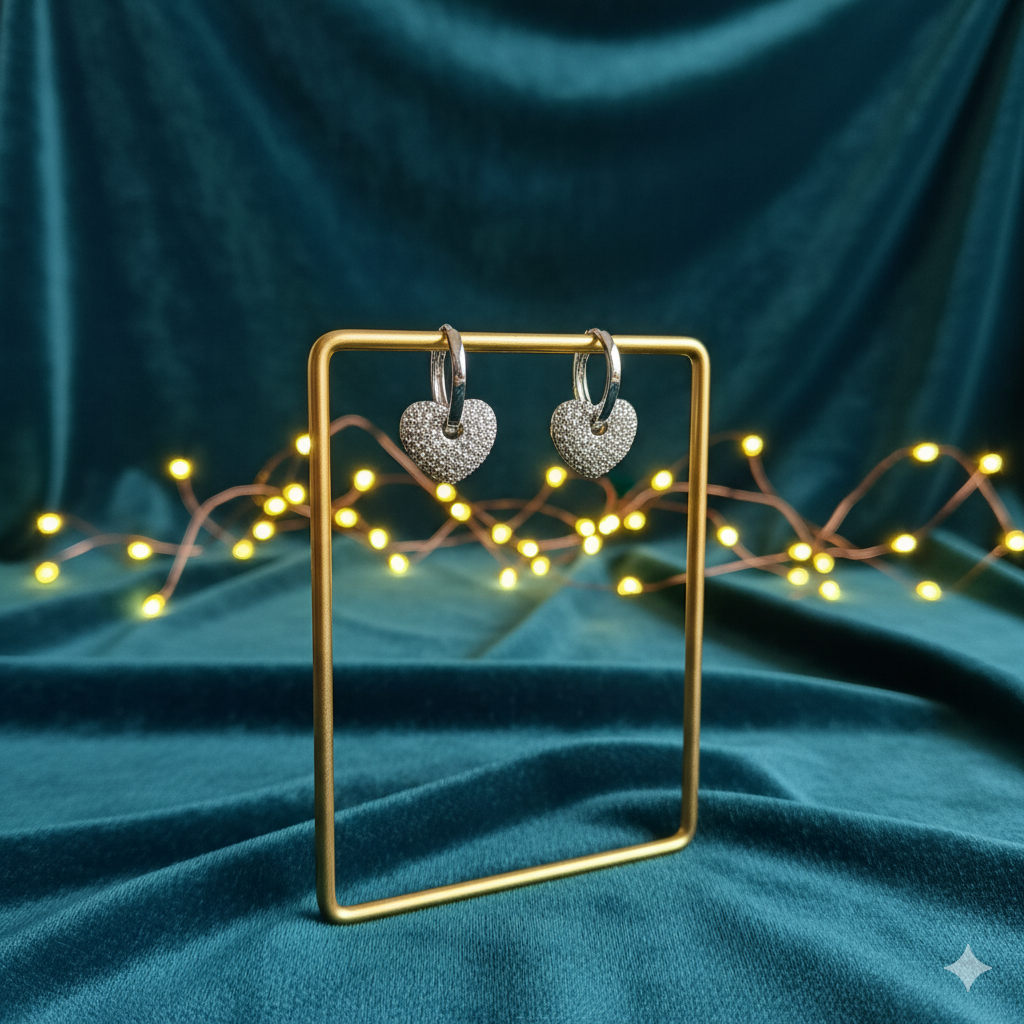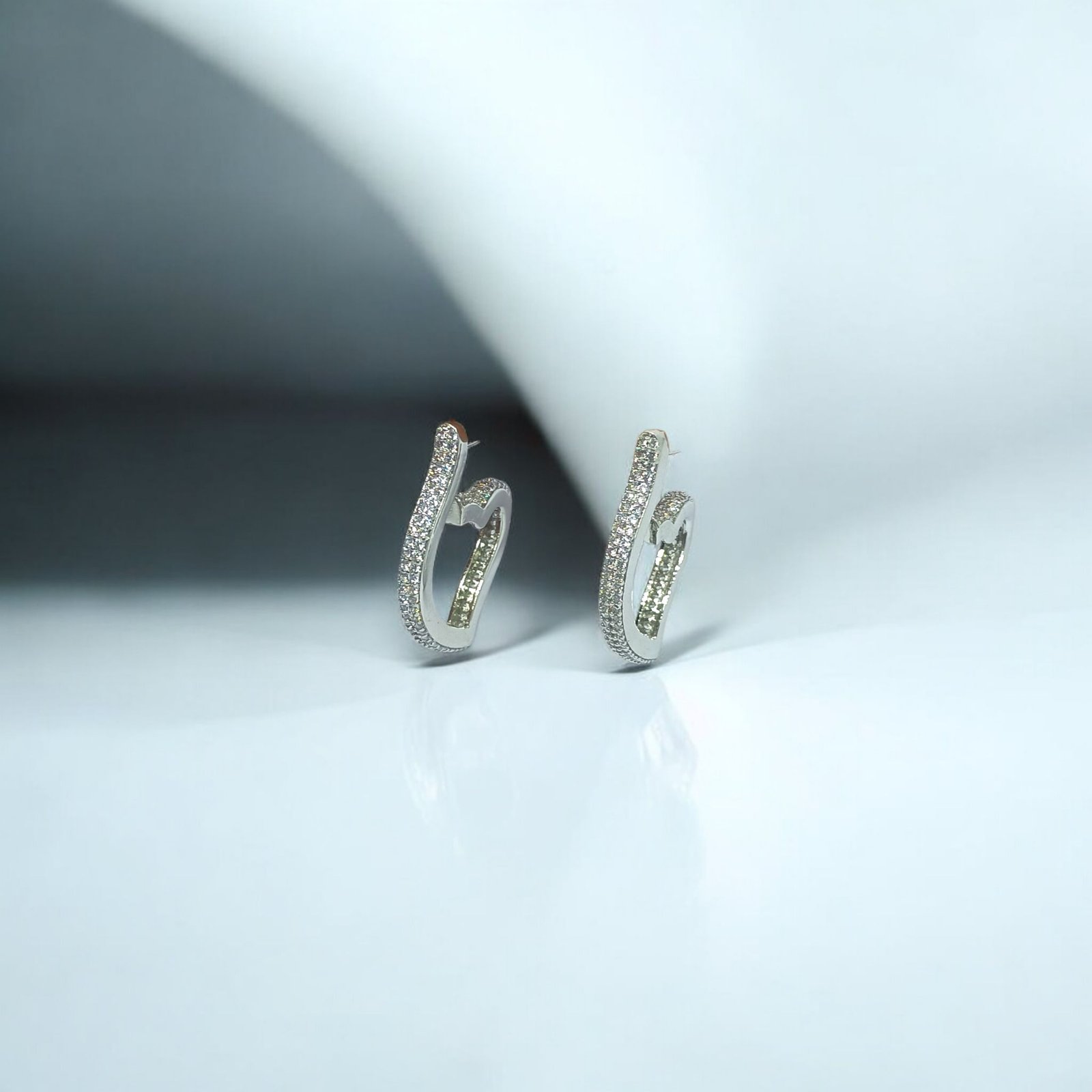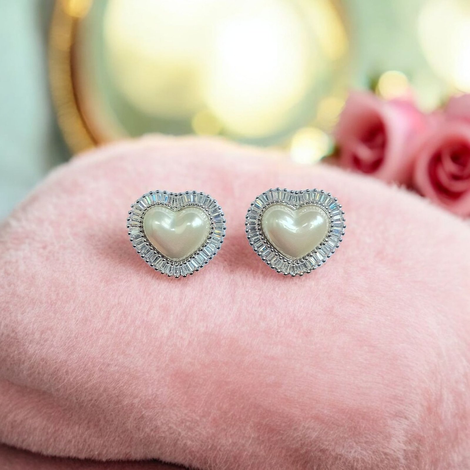 Heart Shaped Silver Mother of Pearl Studded CZ Studs