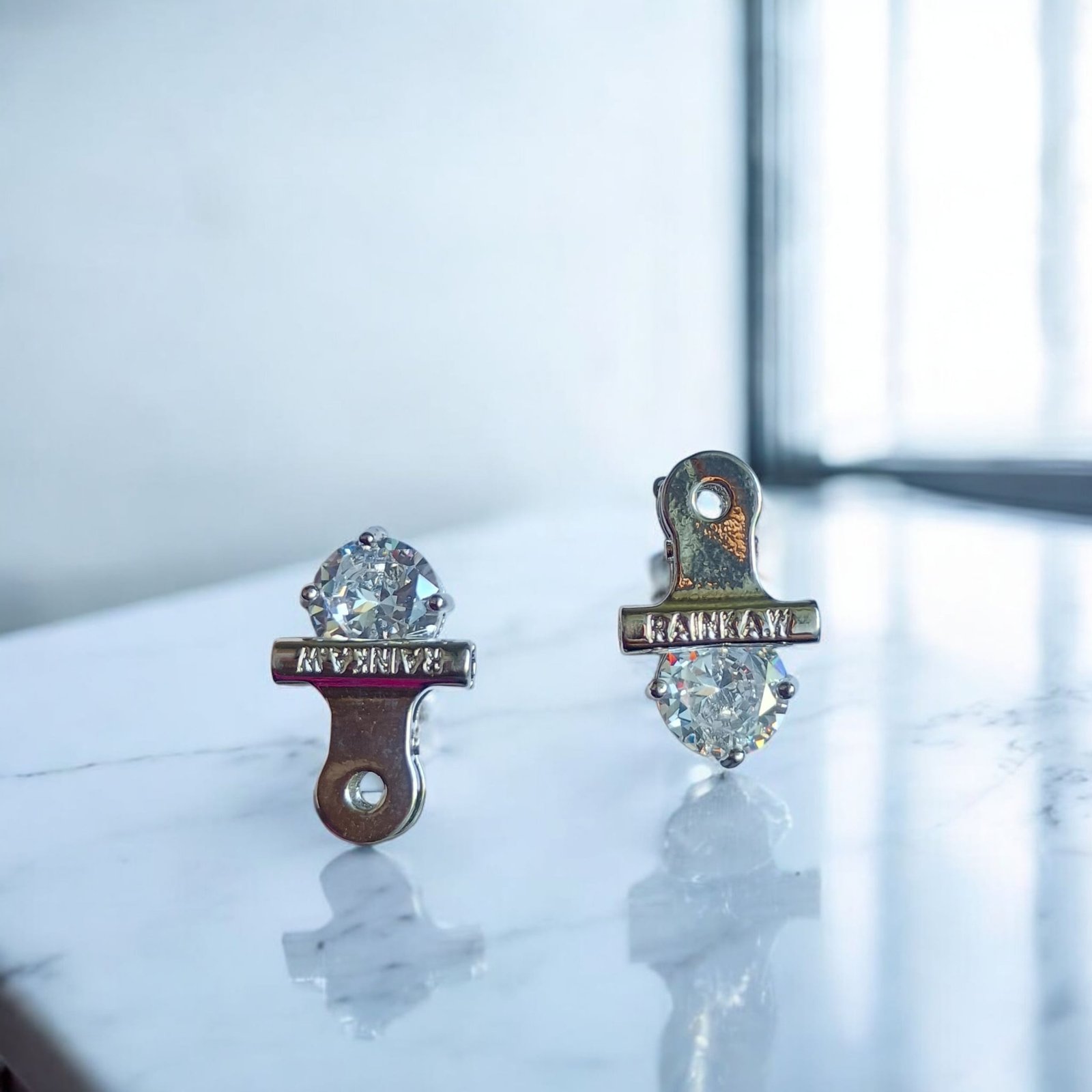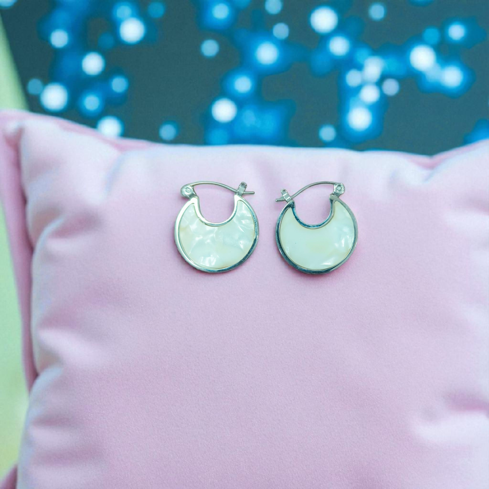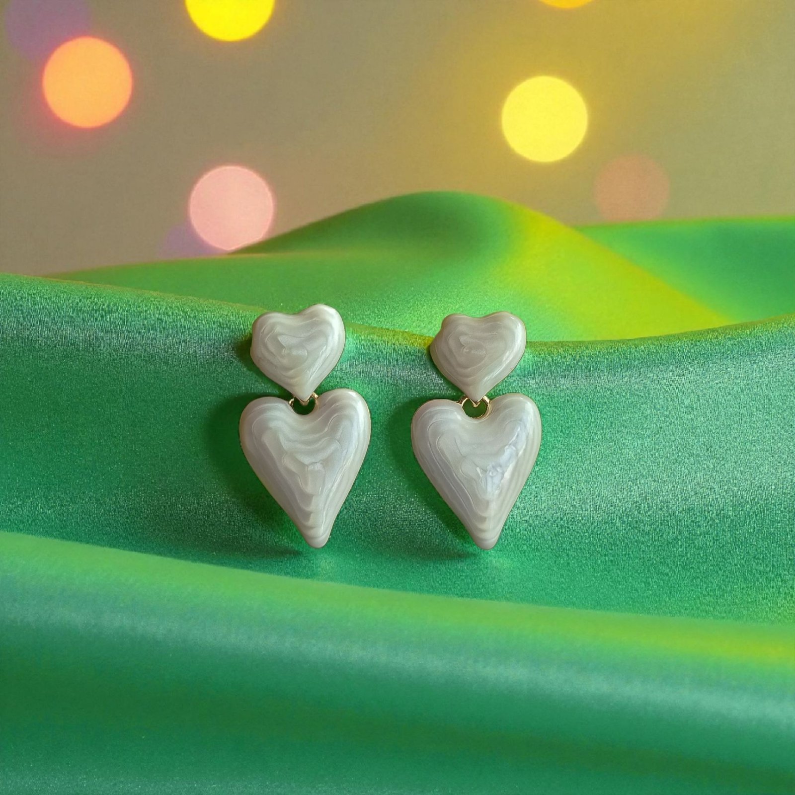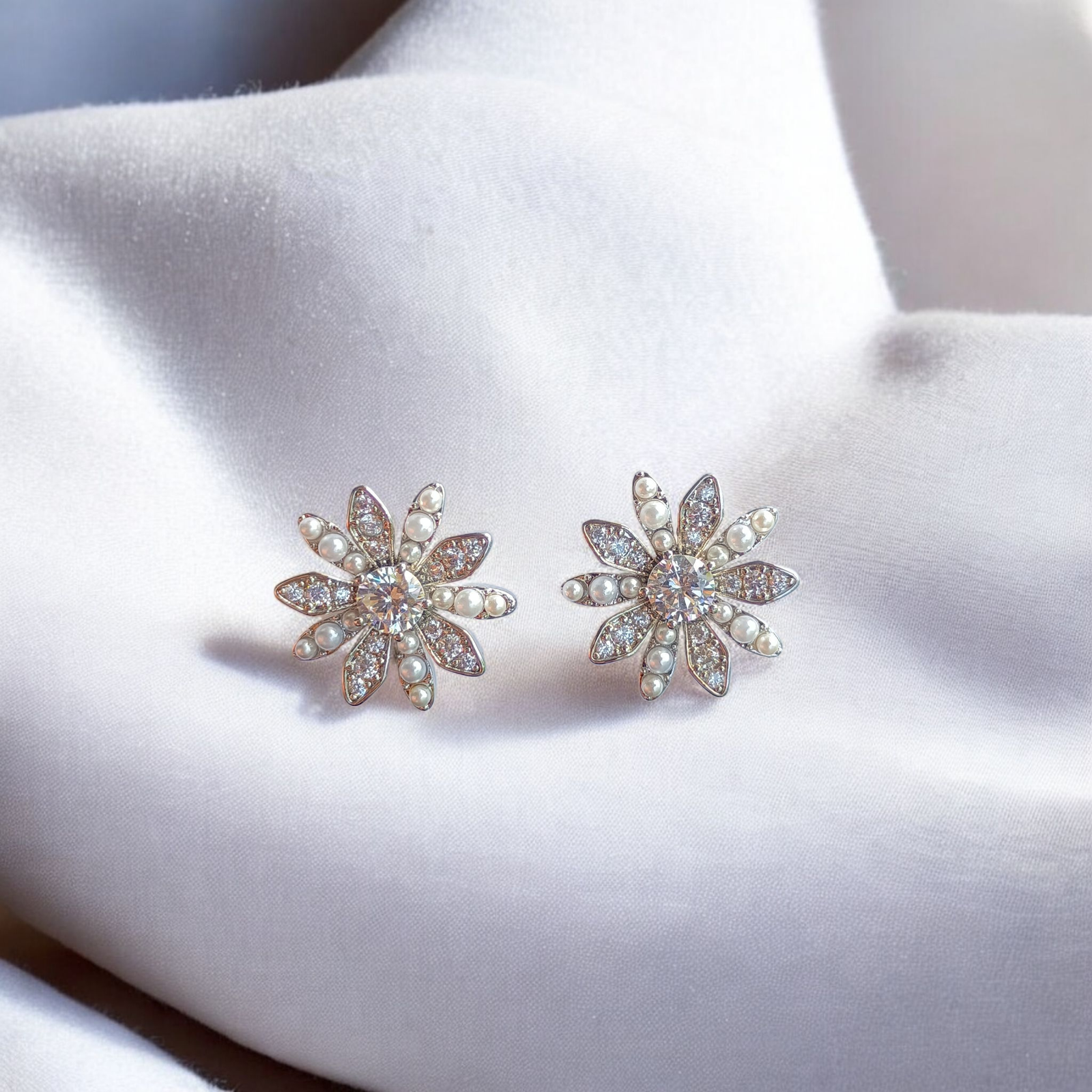Heart Shaped Silver Mother of Pearl Studded CZ Studs