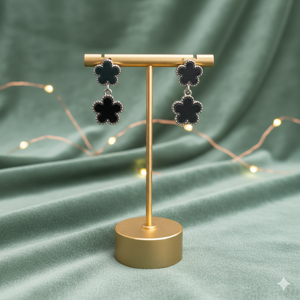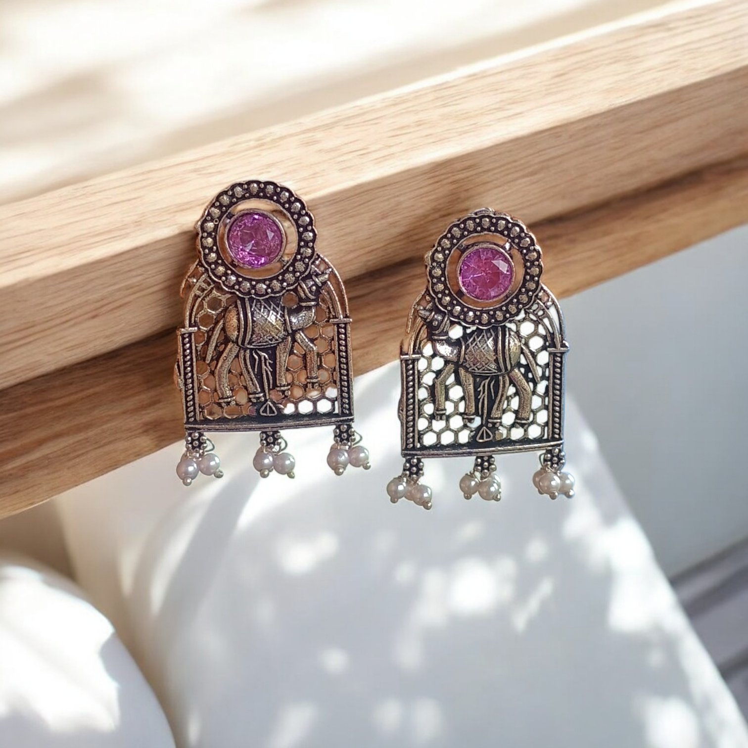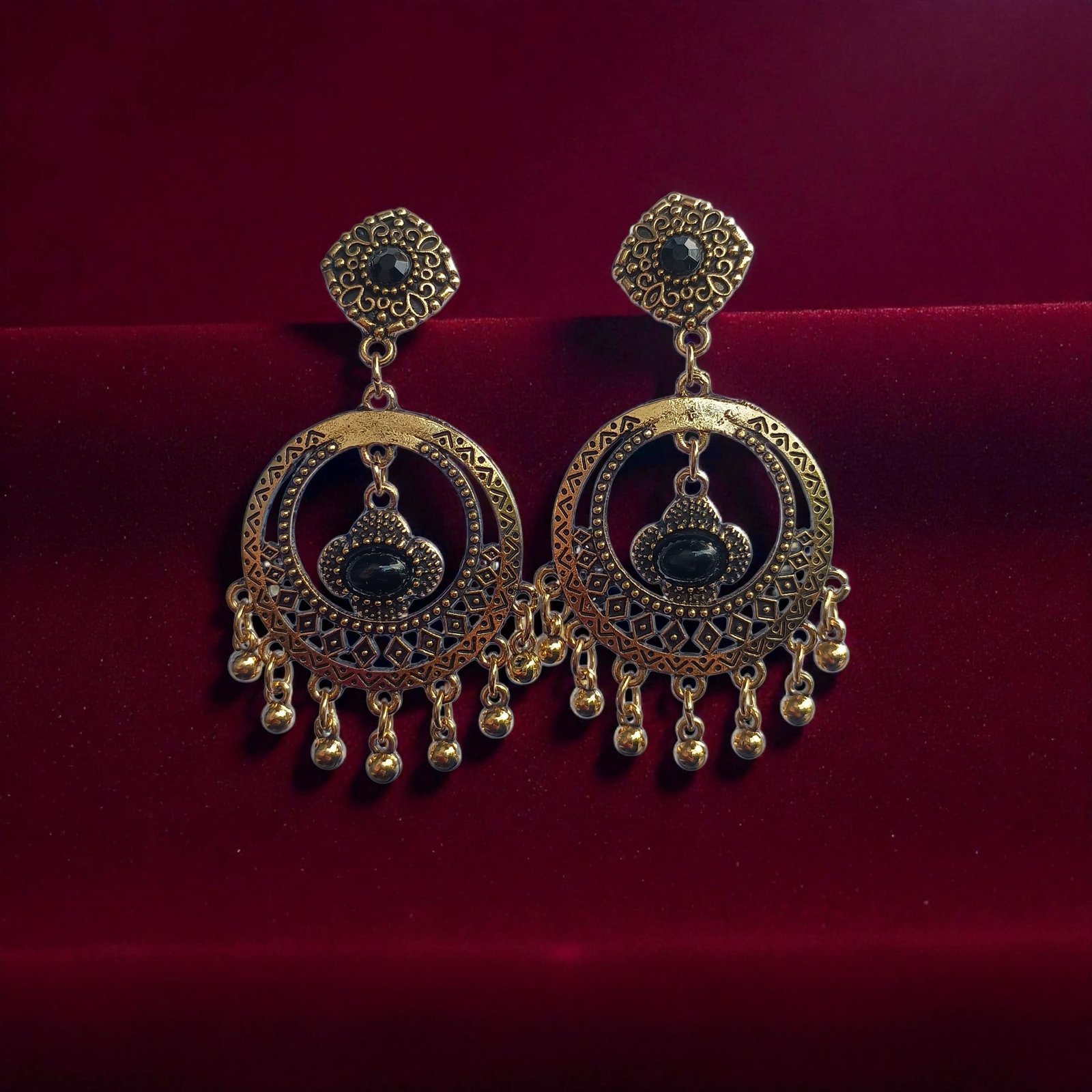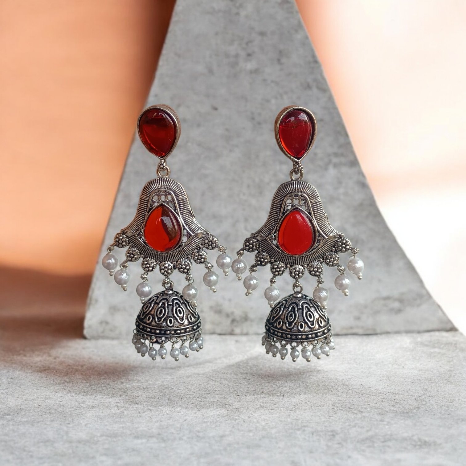 Triple Tier Oxidised Jhumka with Emerald Green Beads