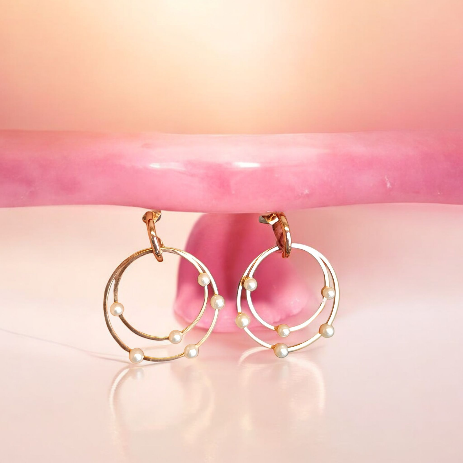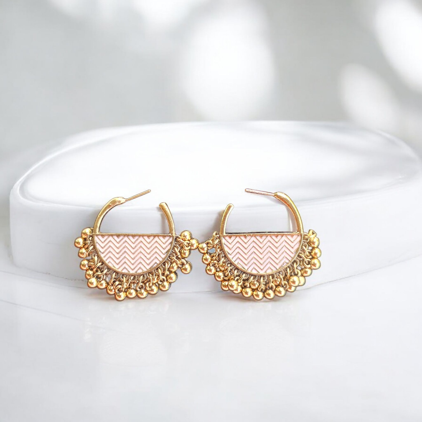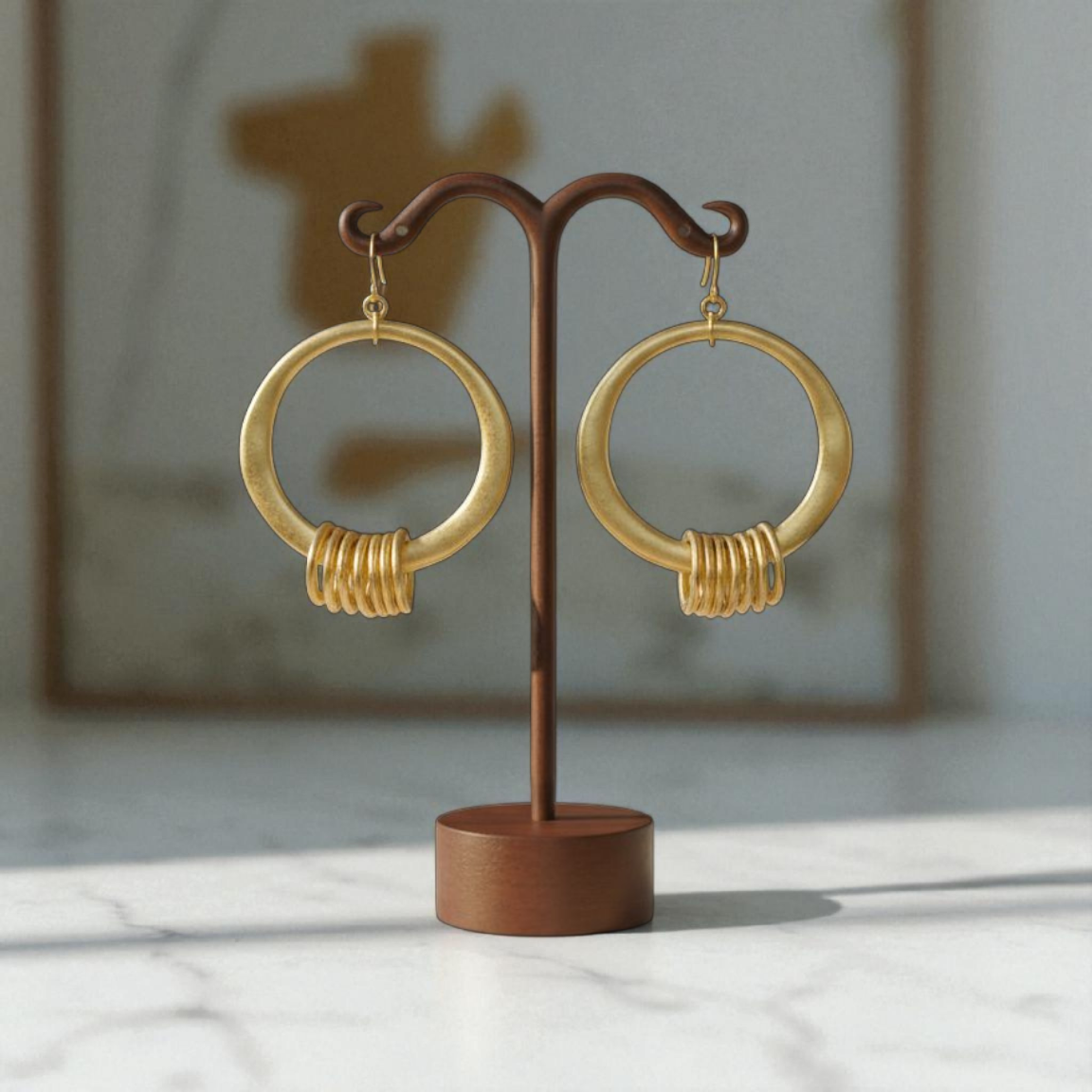 Gold Interlinked Geometric Hoop Dangler Earrings