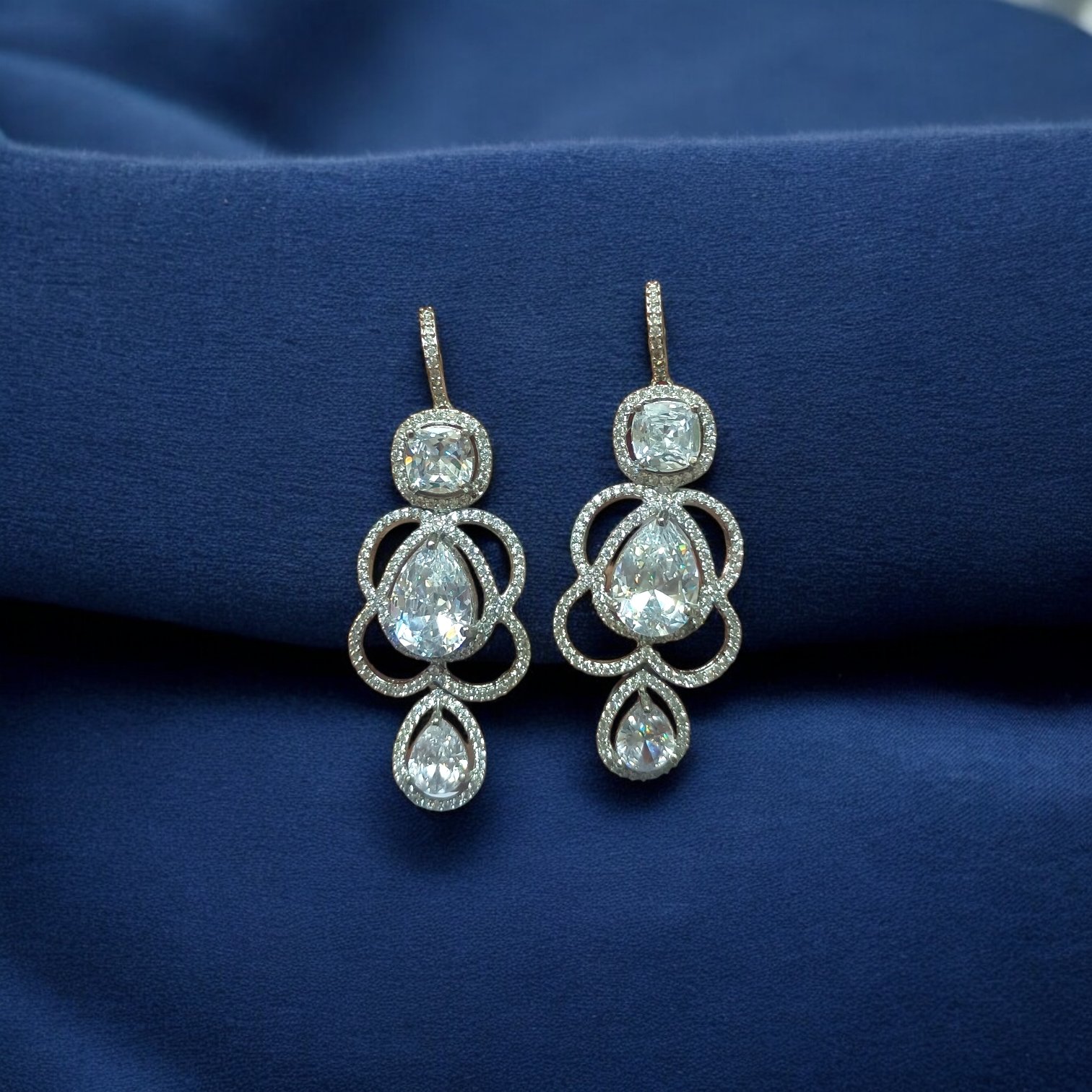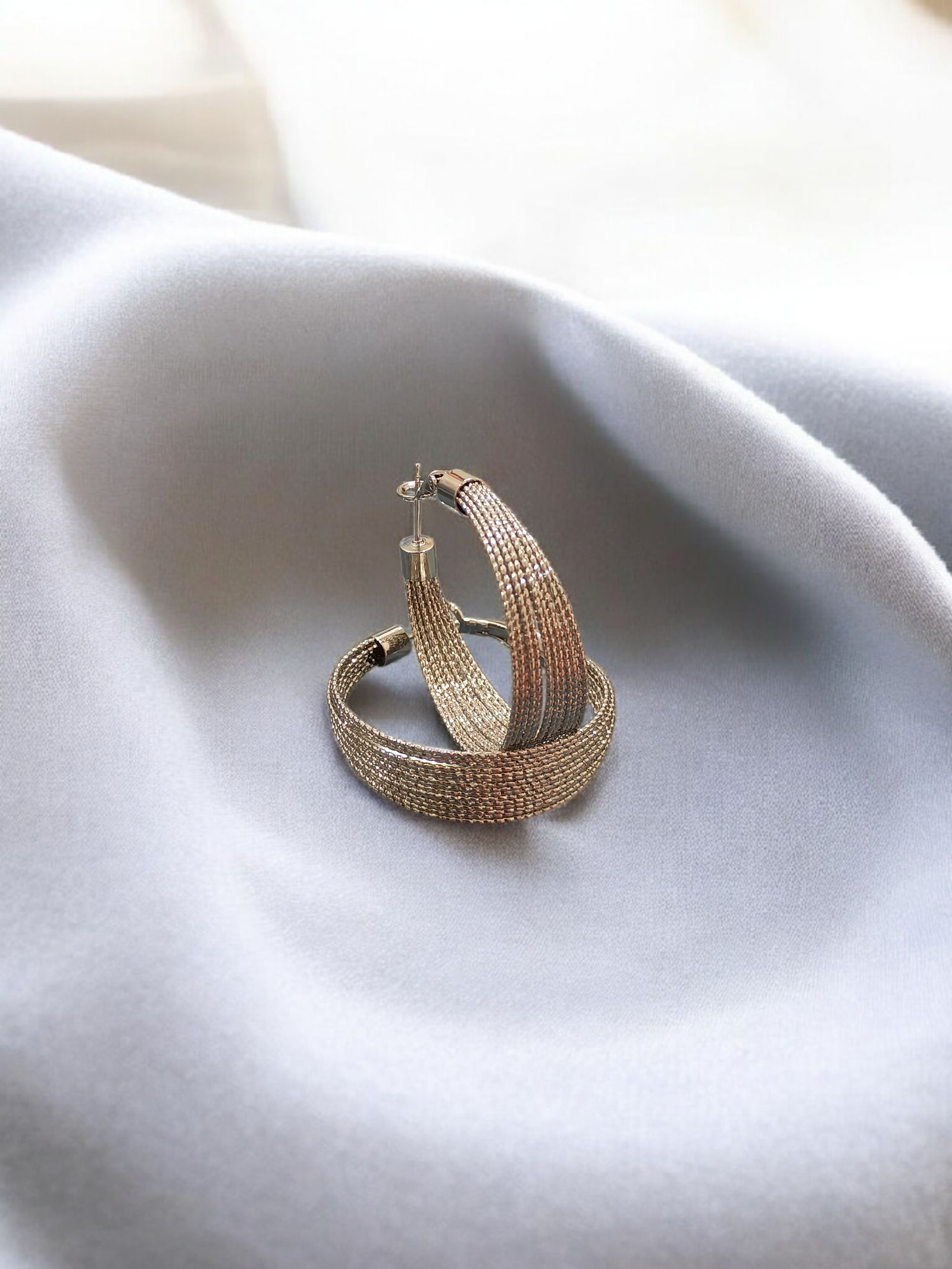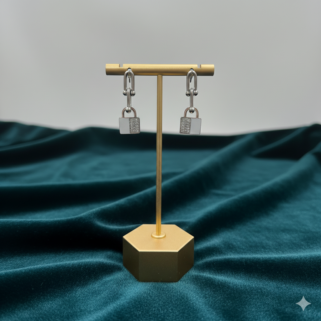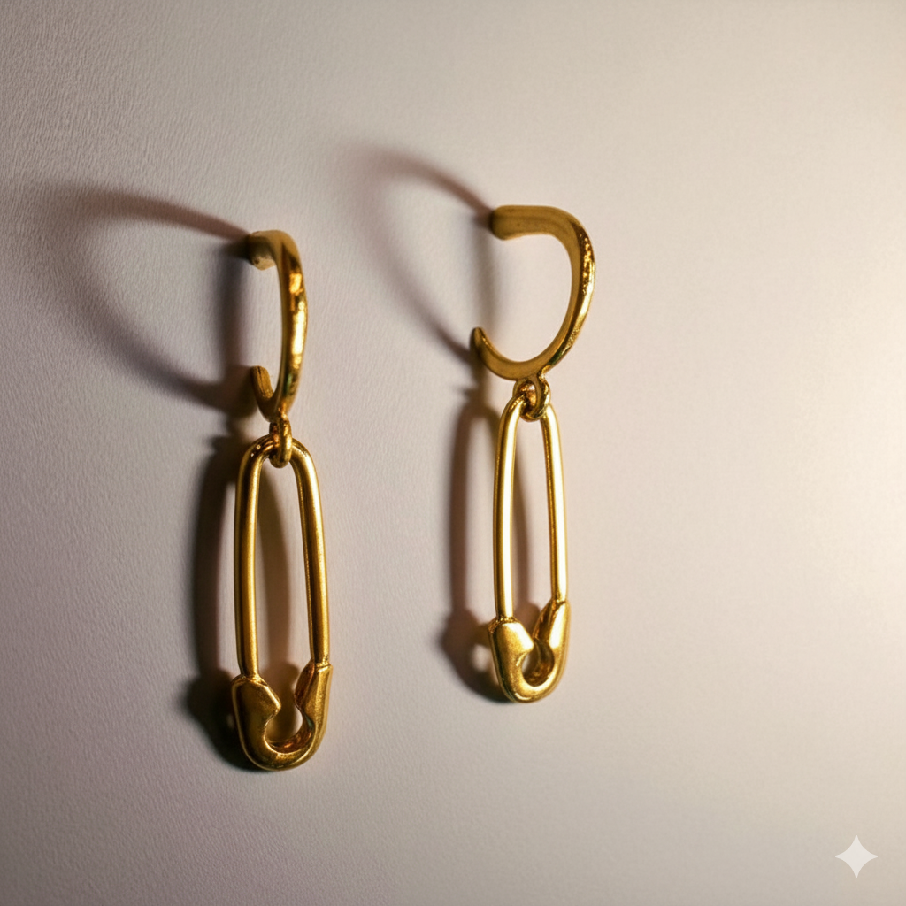 Gold Interlinked Geometric Hoop Dangler Earrings