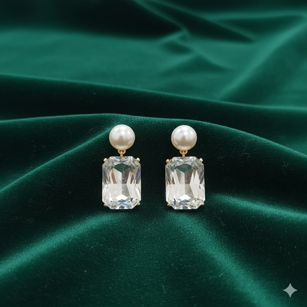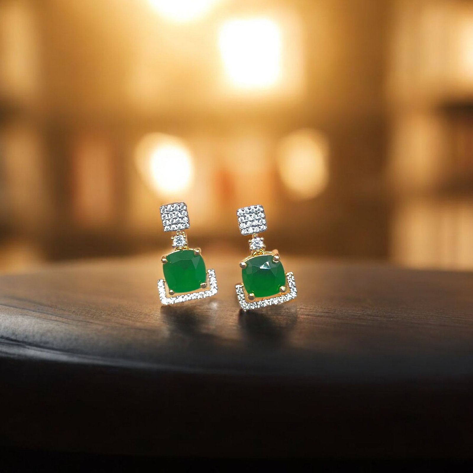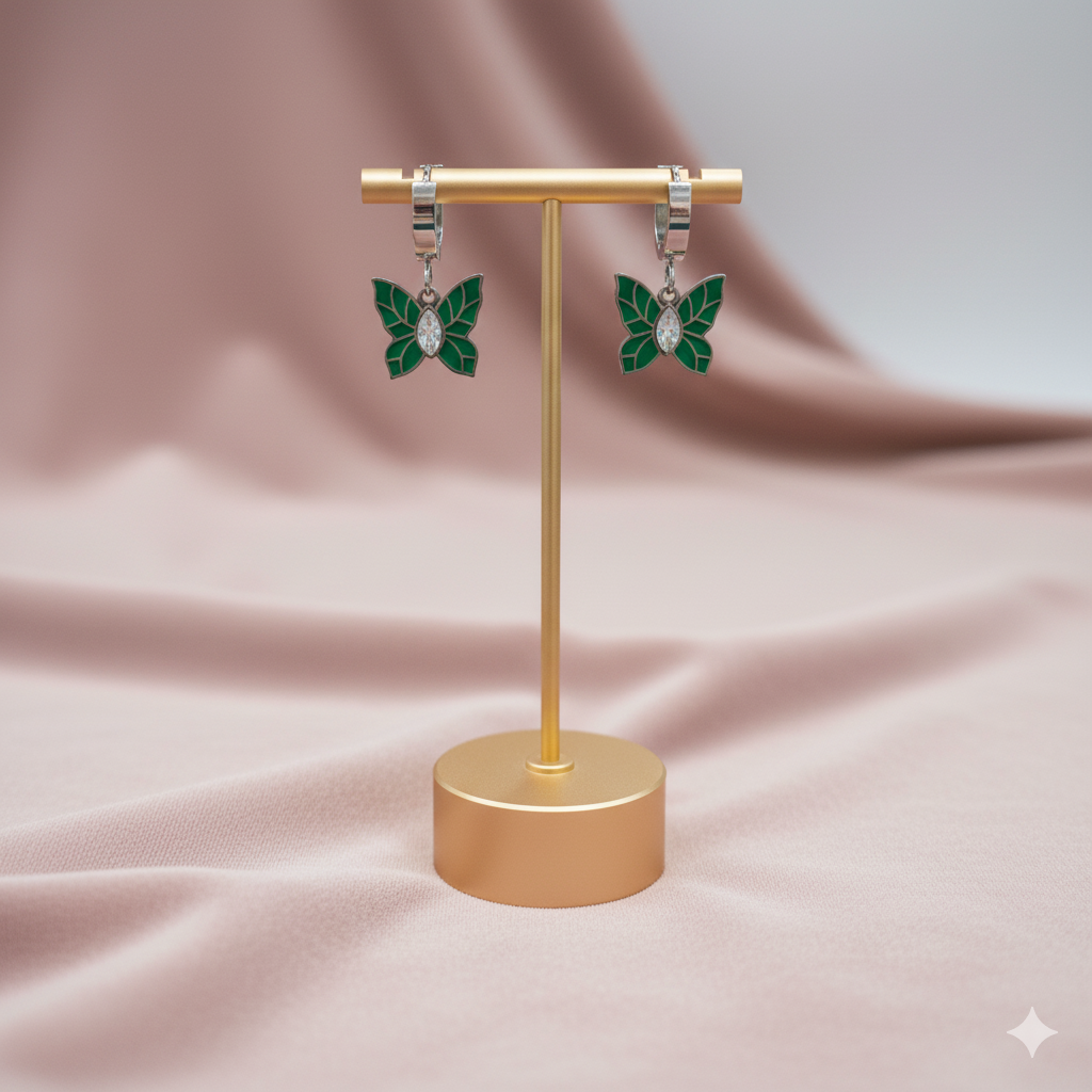 Butterfly Engraved Rectangle Crystal Drops - Green