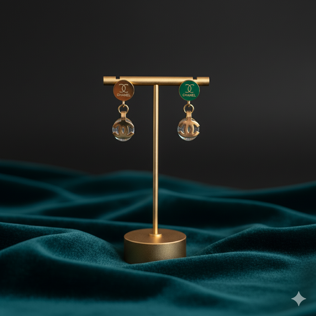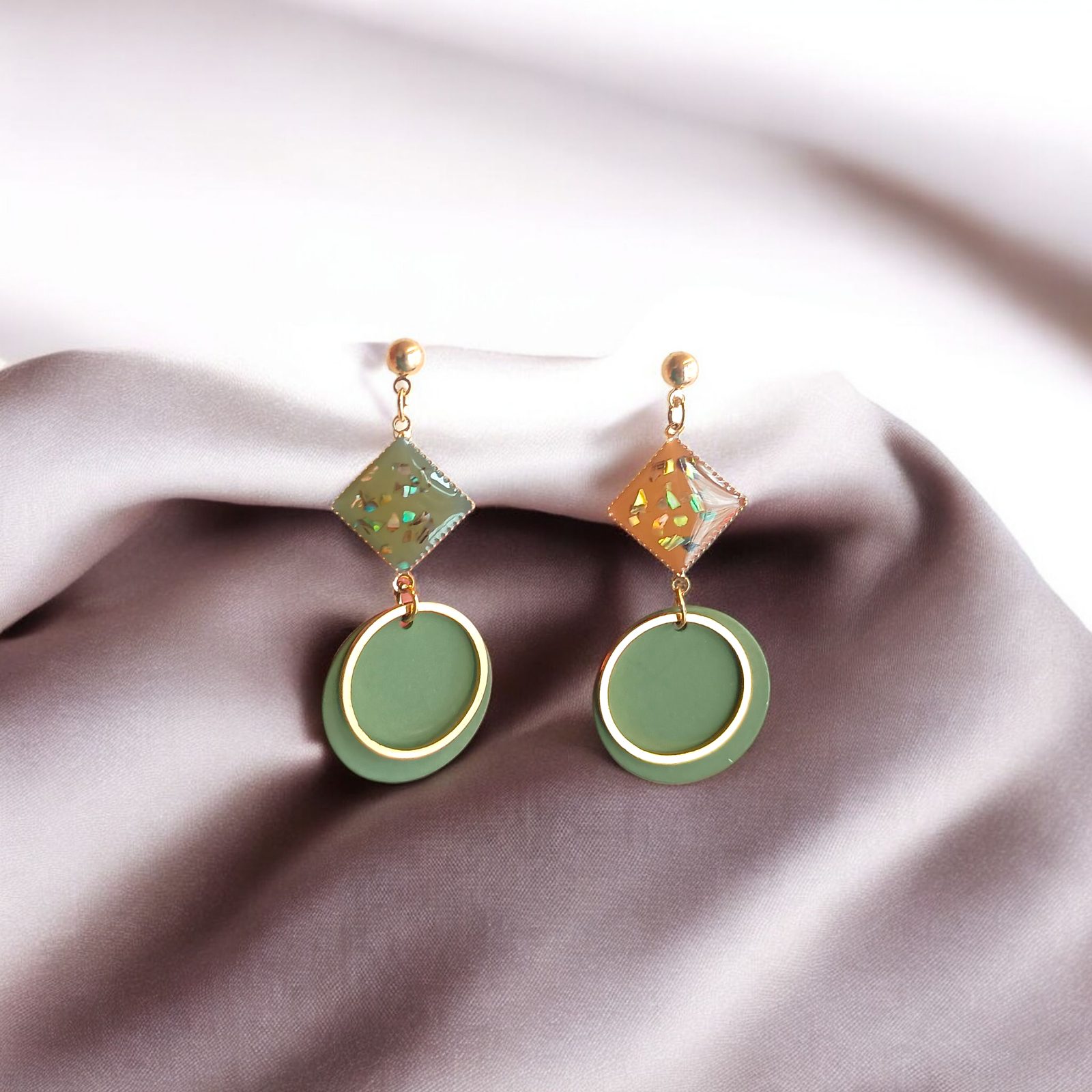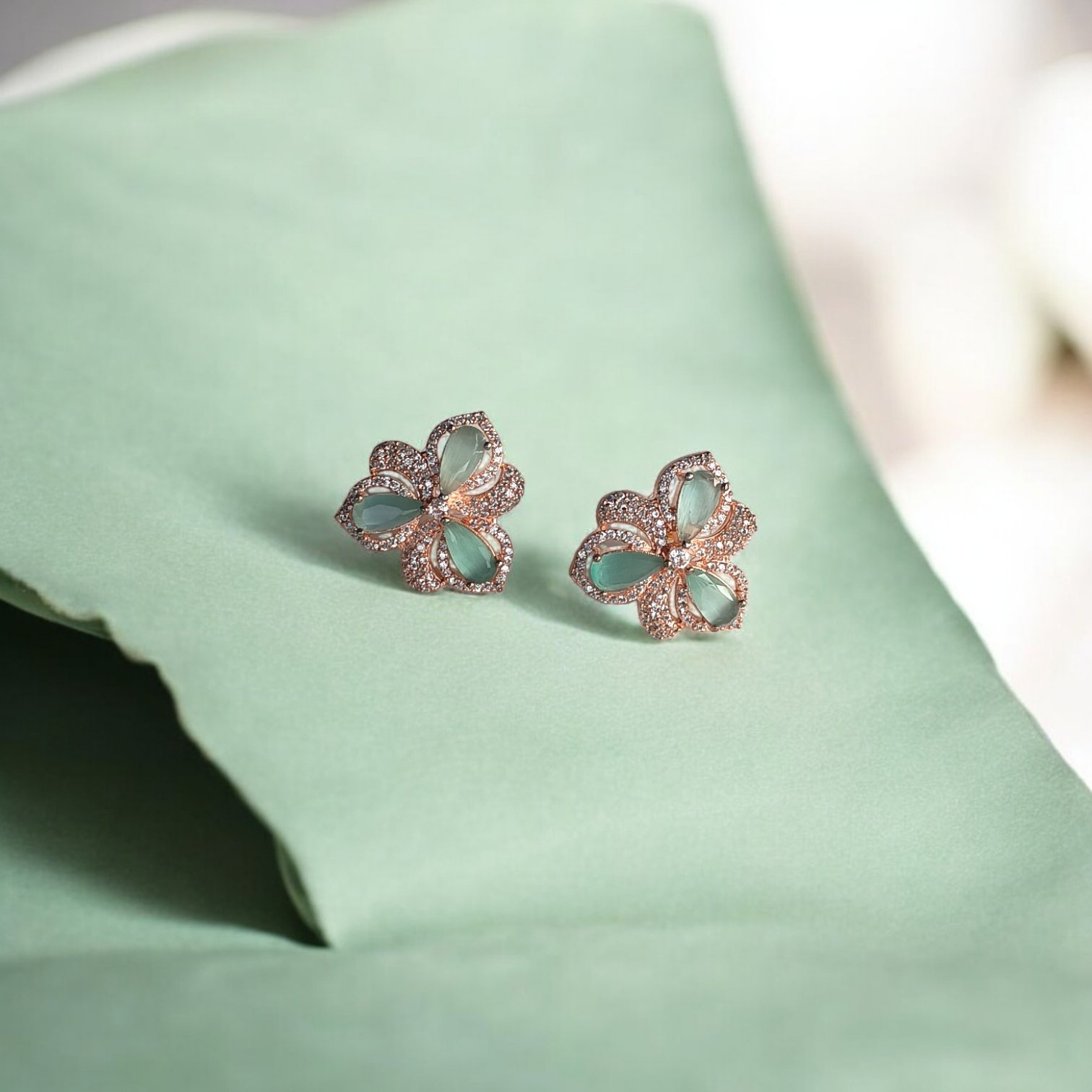 Butterfly Engraved Rectangle Crystal Drops - Green