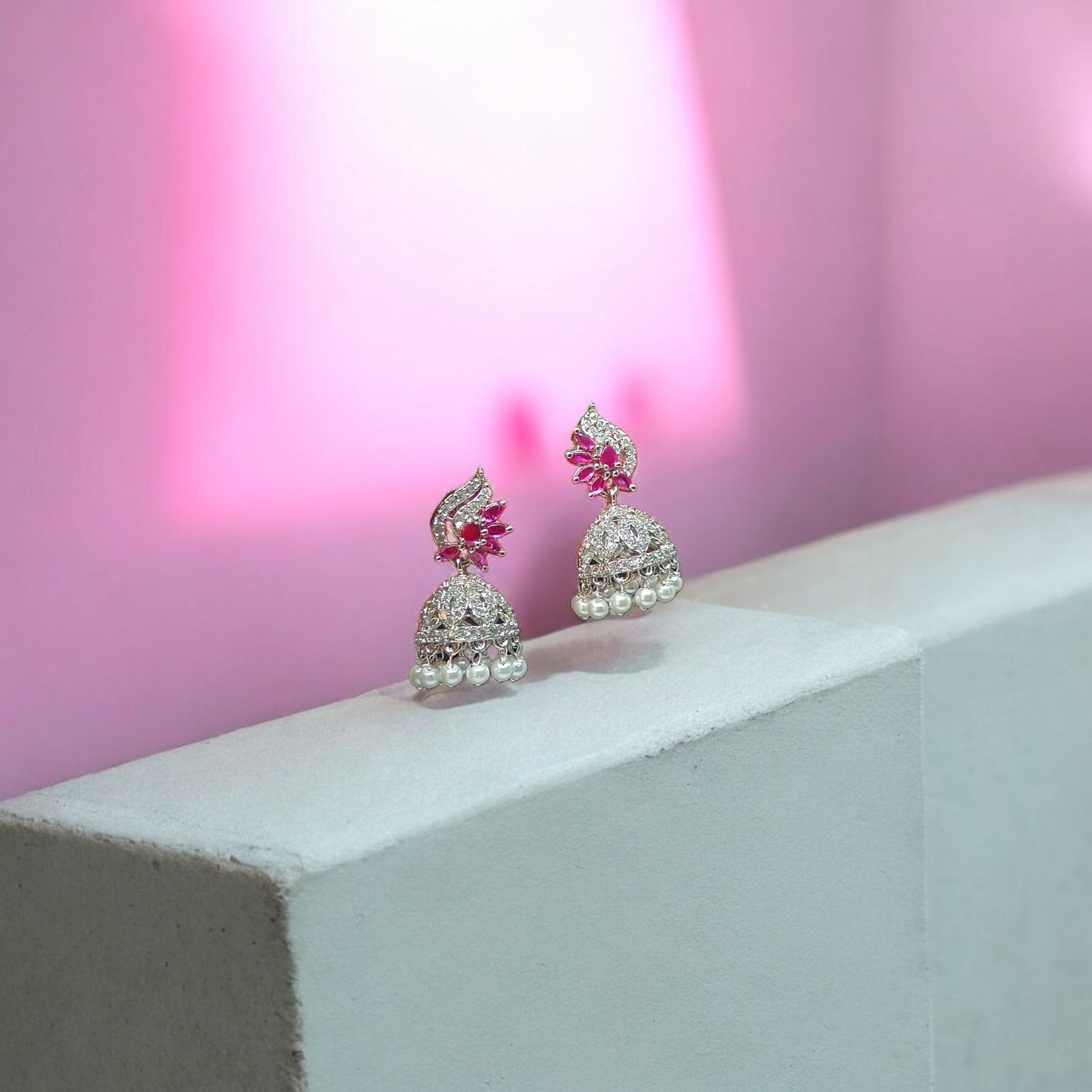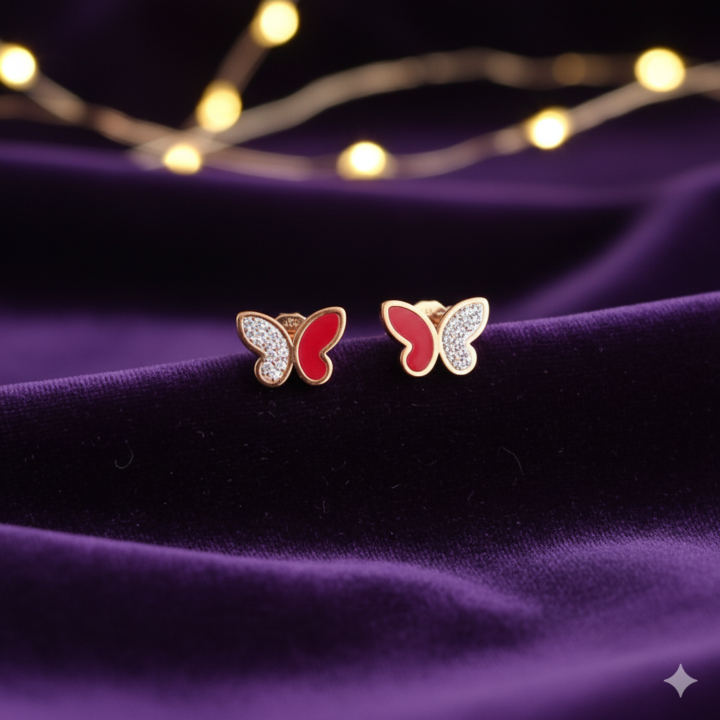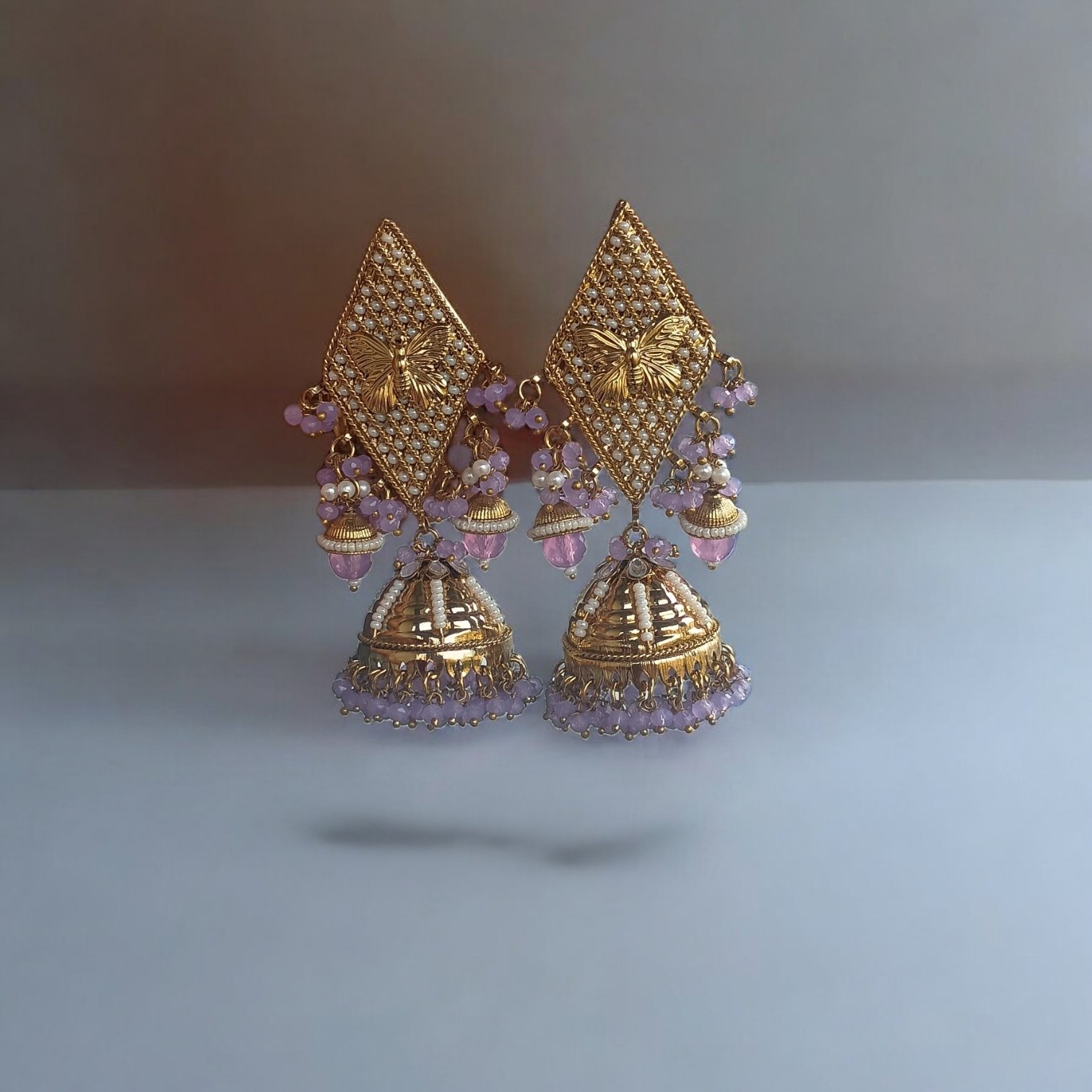 Regal Butterfly Motif Diamond Jhumka with Lavender Accents