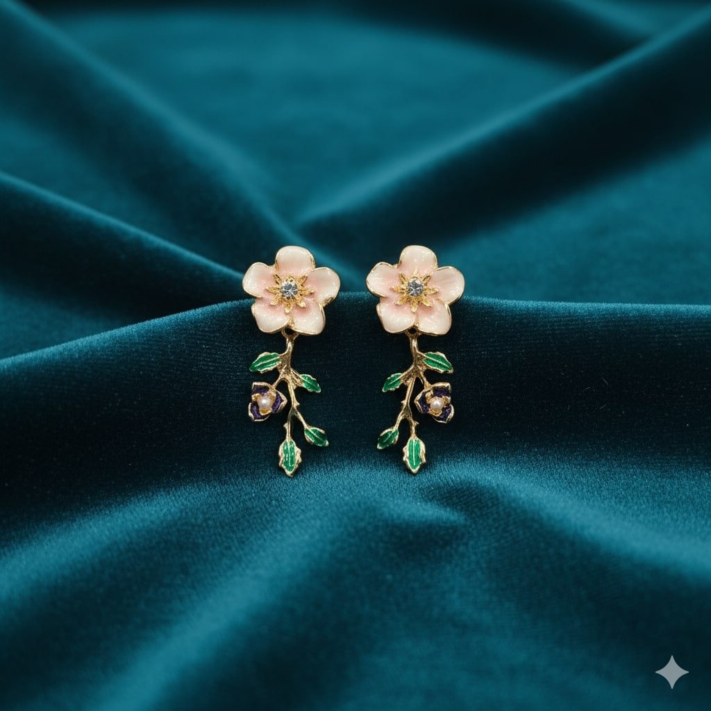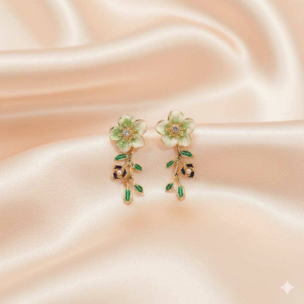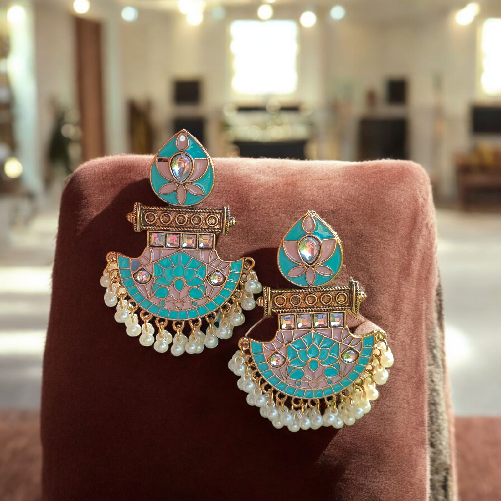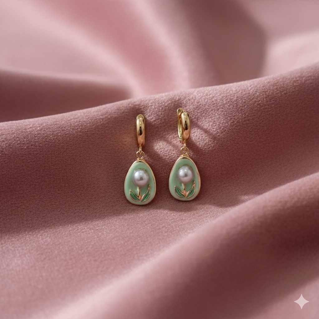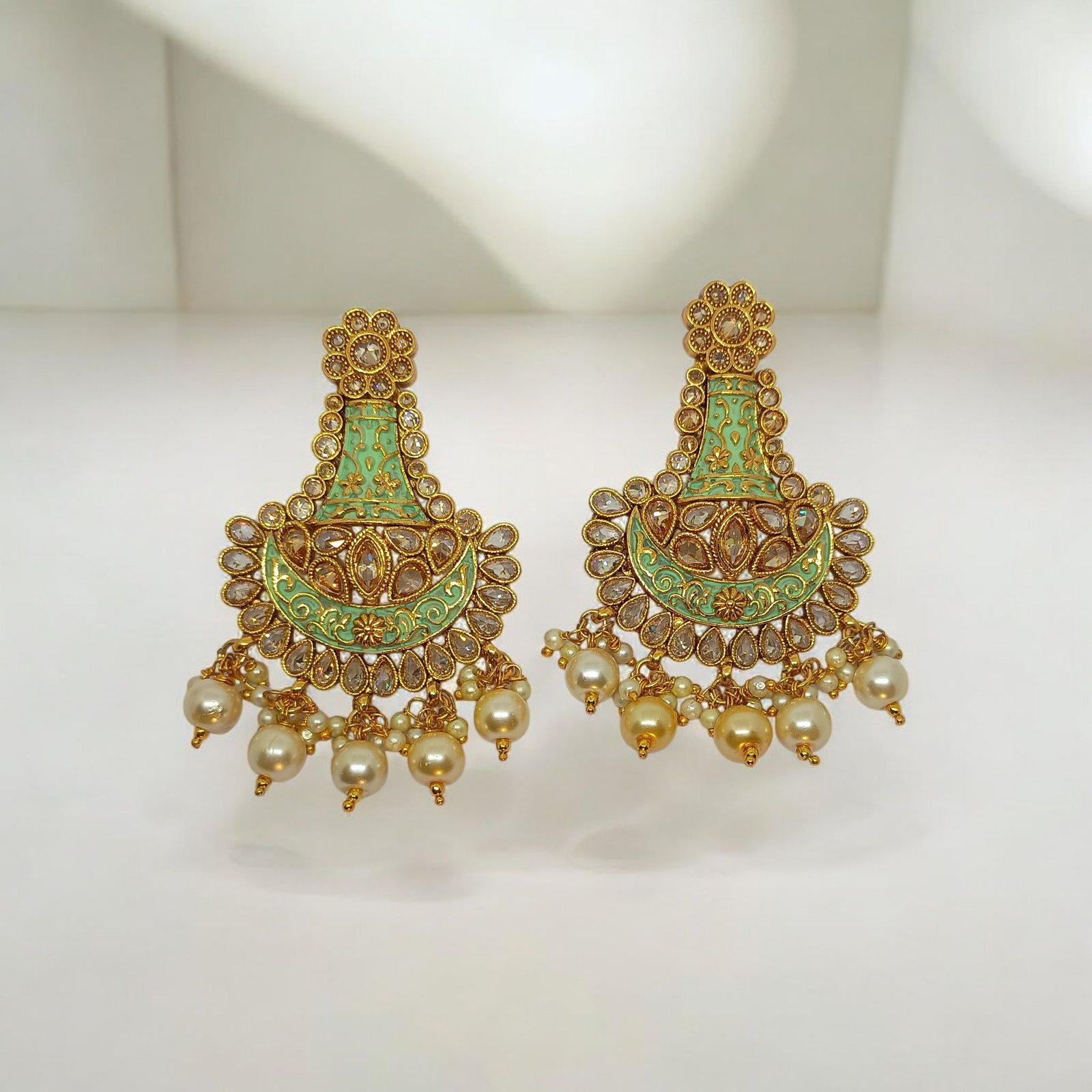 Delicate Leaf Meenakari Drop Earrings with Pearl