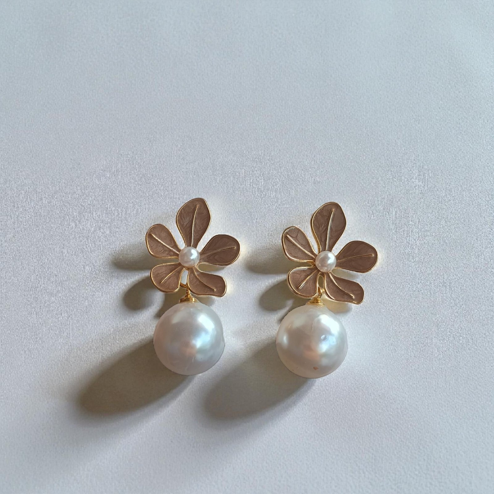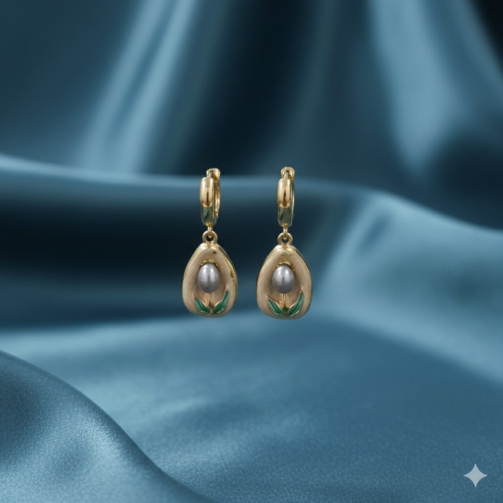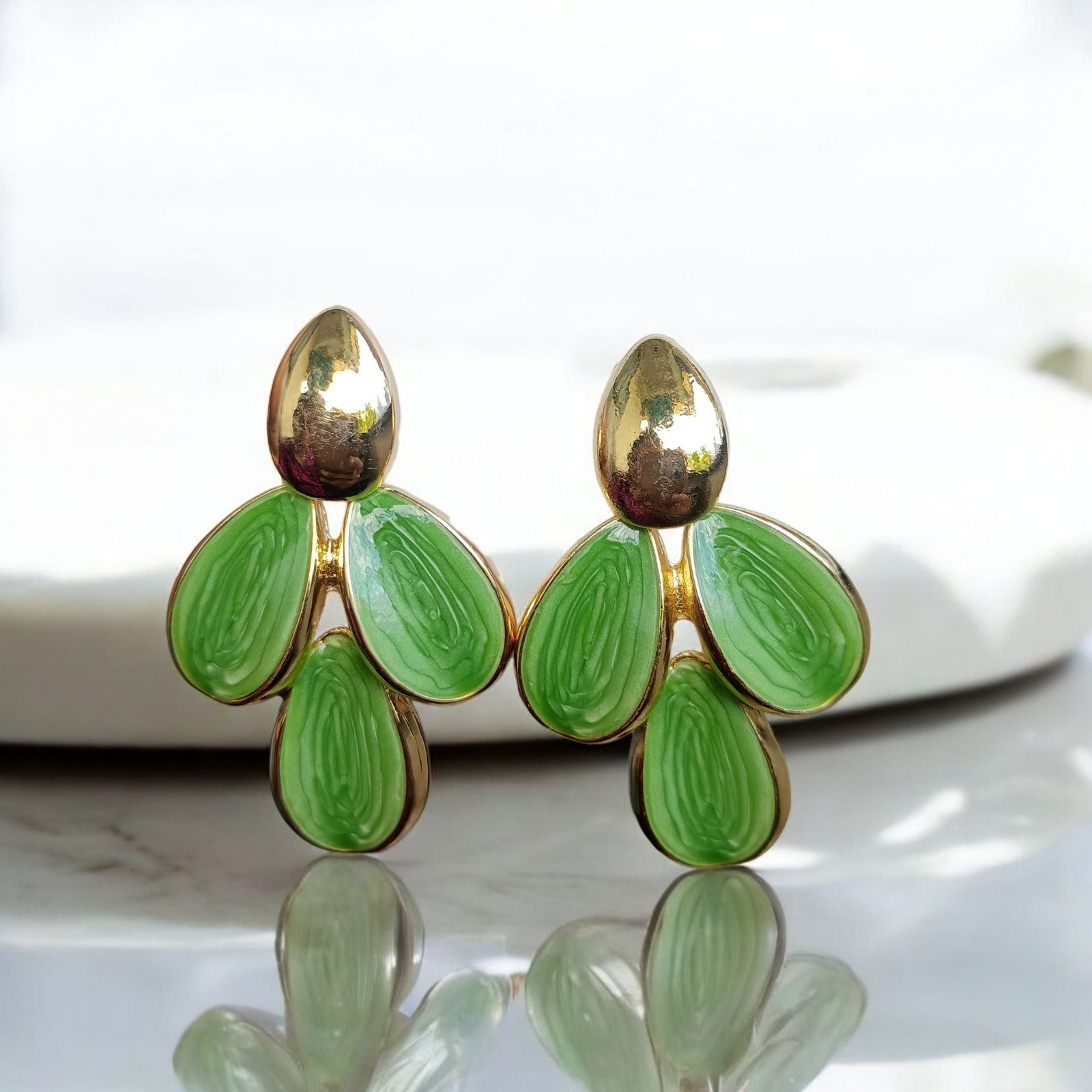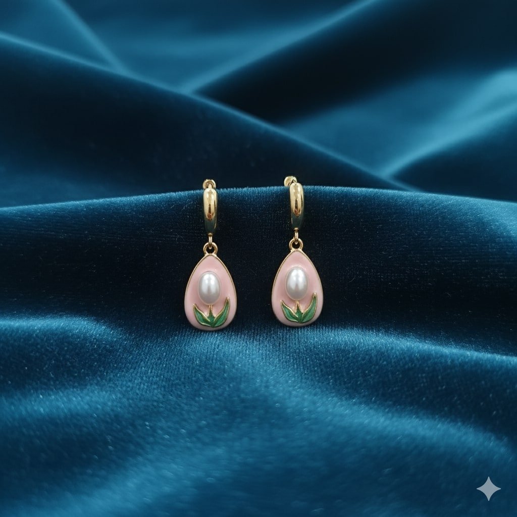 Delicate Leaf Meenakari Drop Earrings with Pearl
