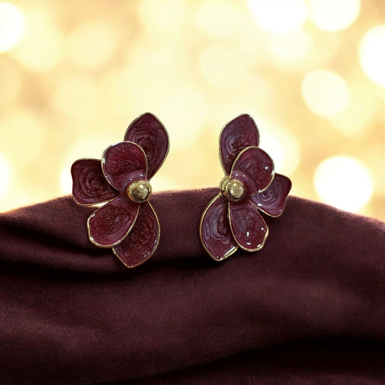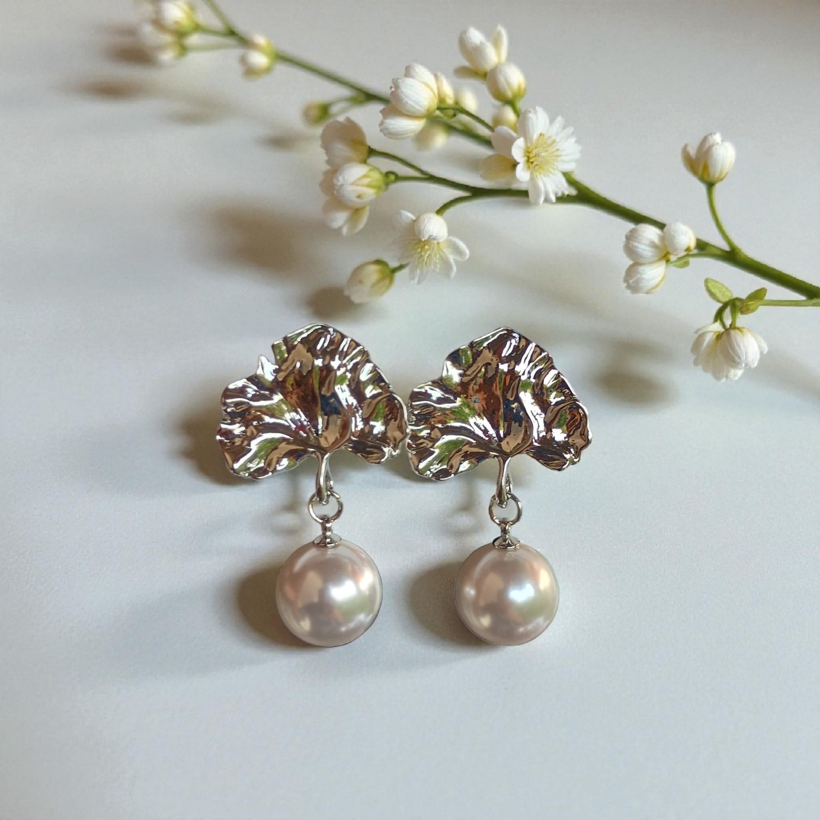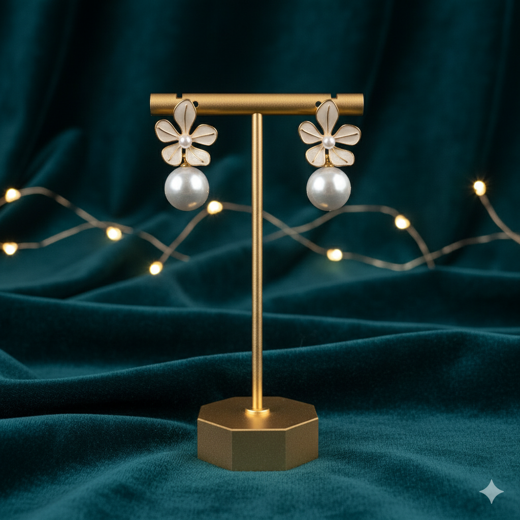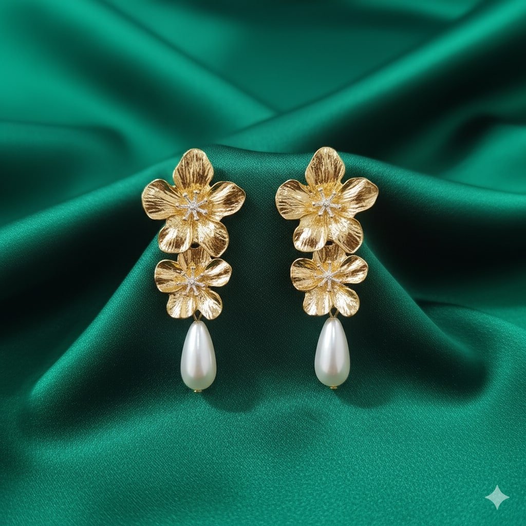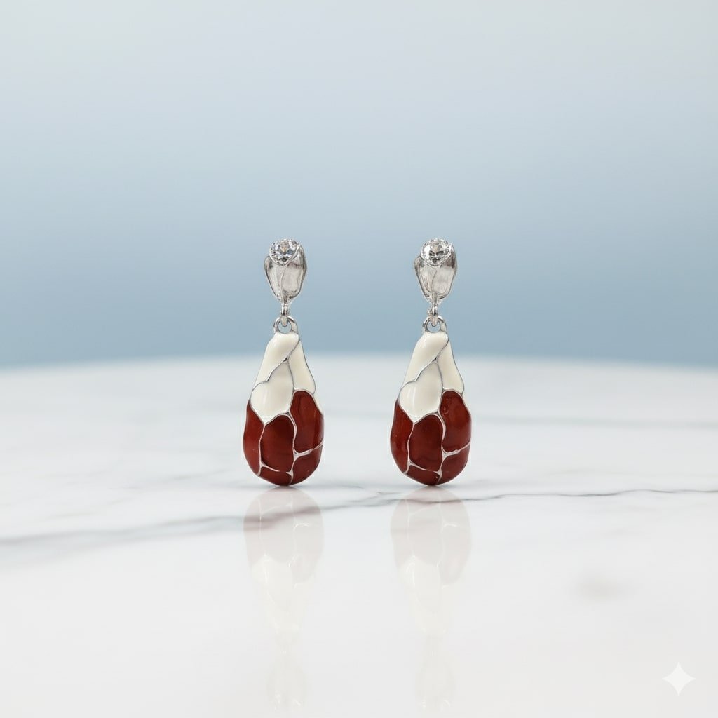 Delicate Leaf Meenakari Drop Earrings with Pearl