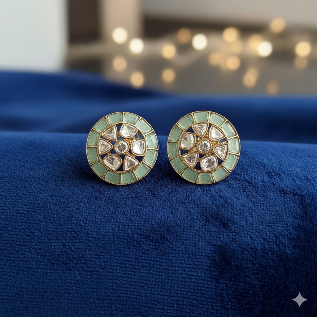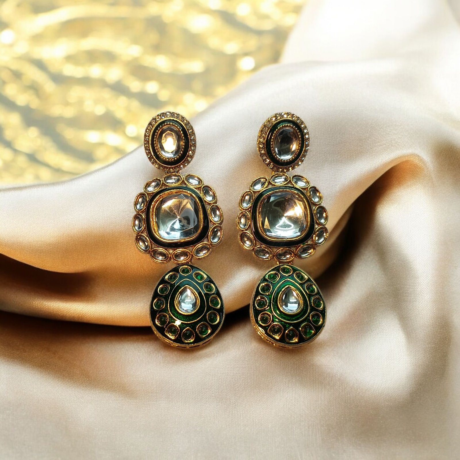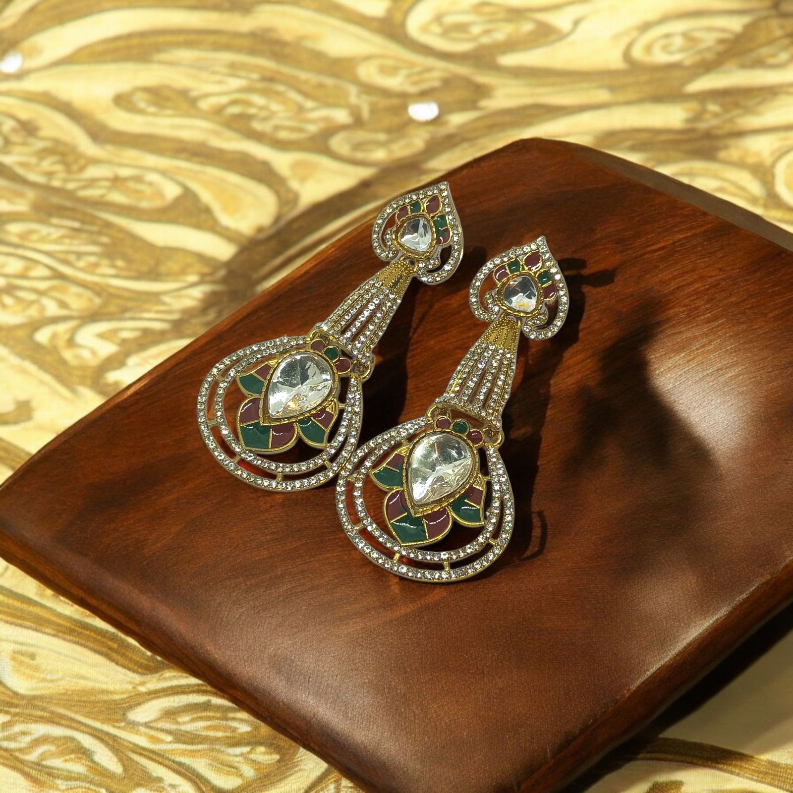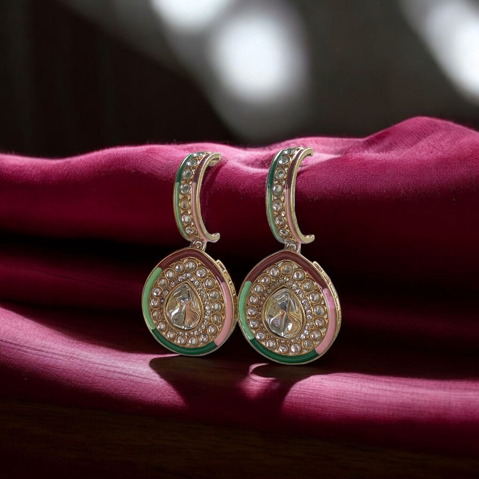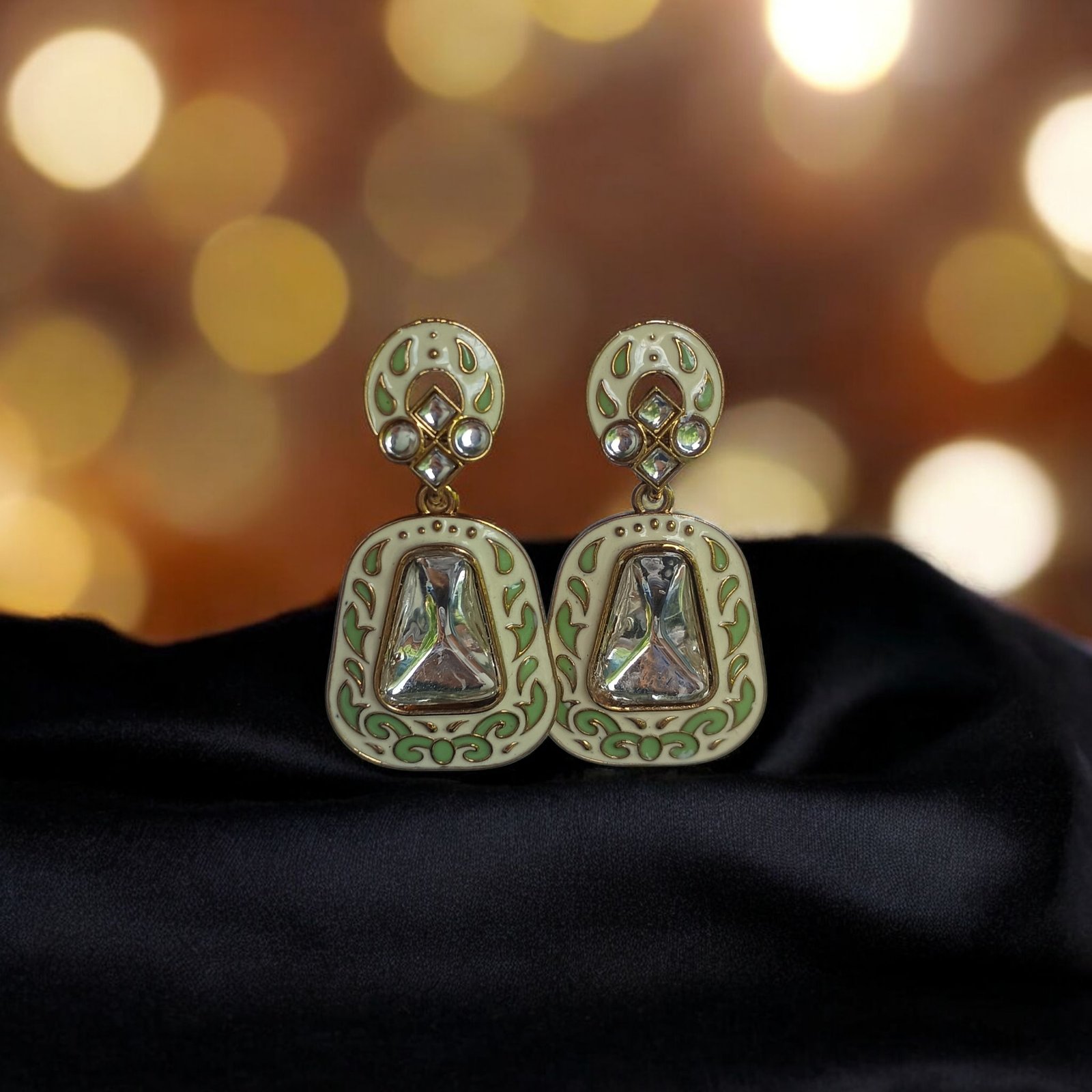 Minimalist Meenakari Drop Earrings with Polki Stone