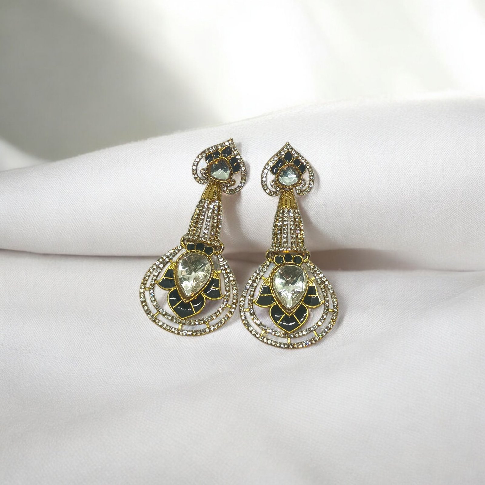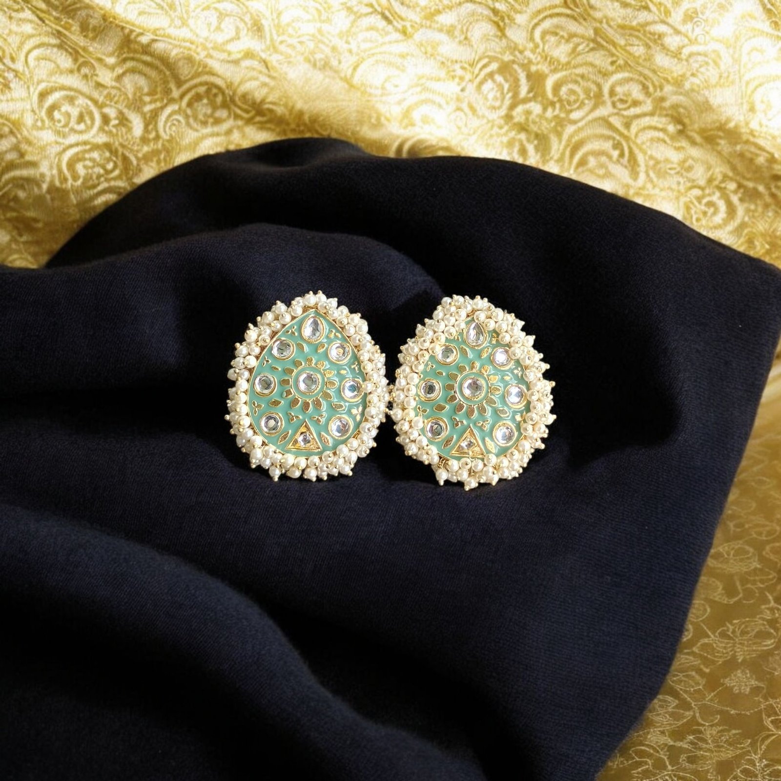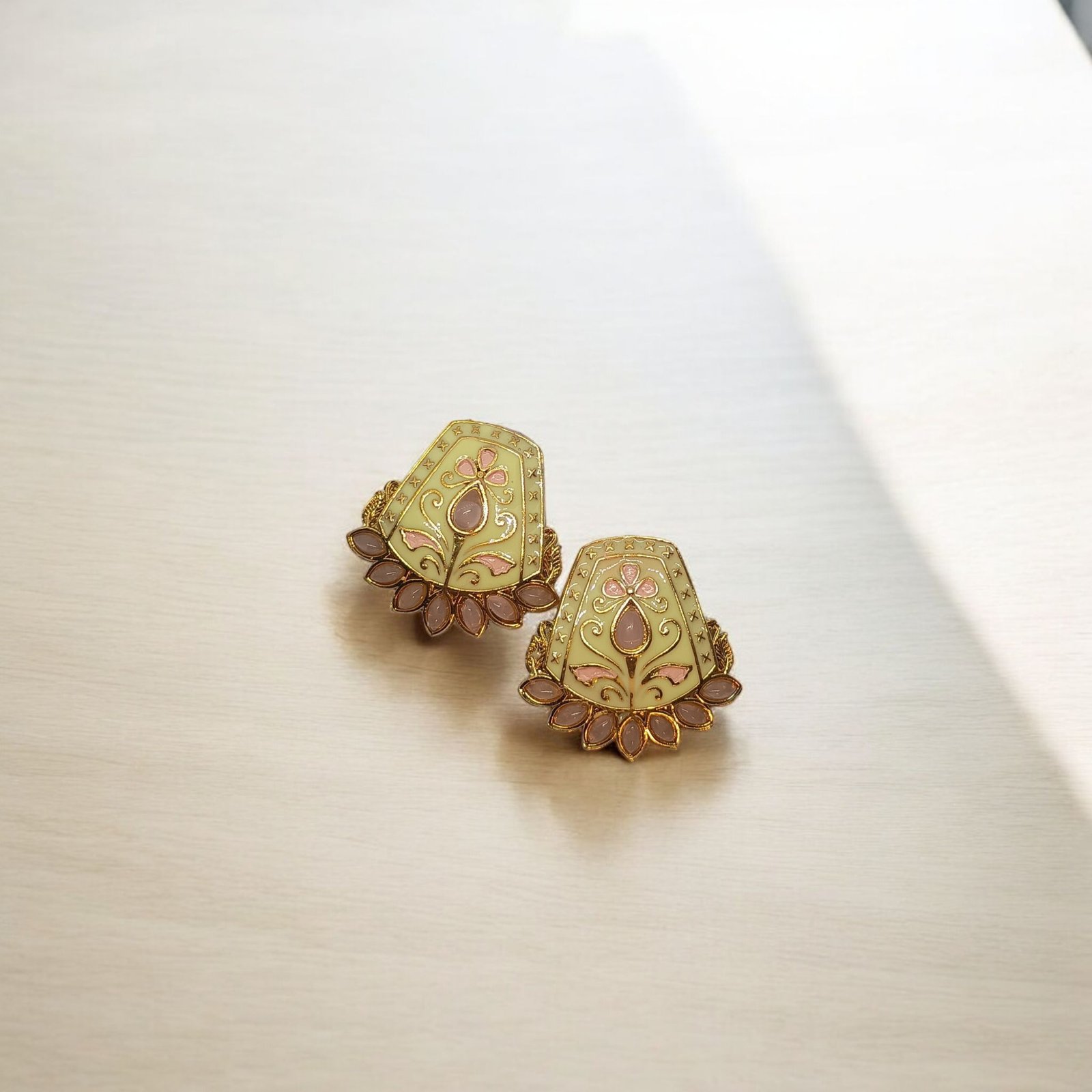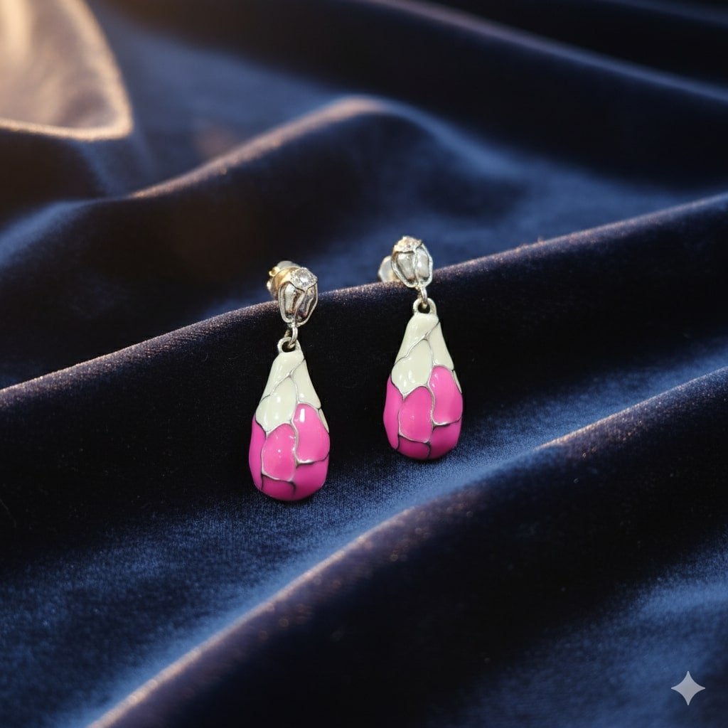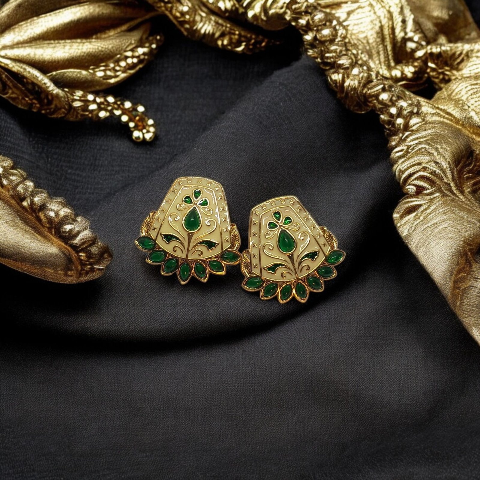 Minimalist Meenakari Drop Earrings with Polki Stone