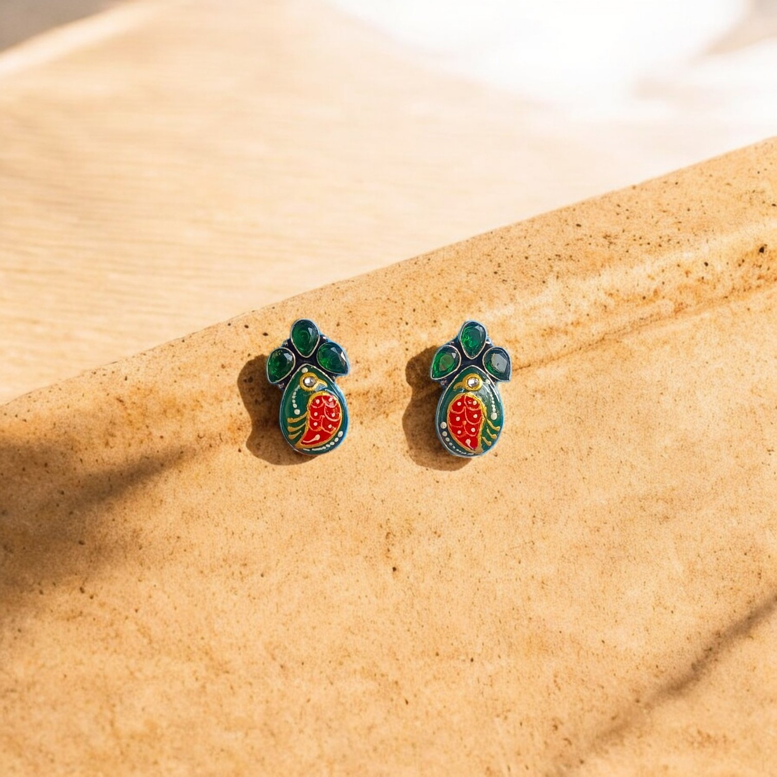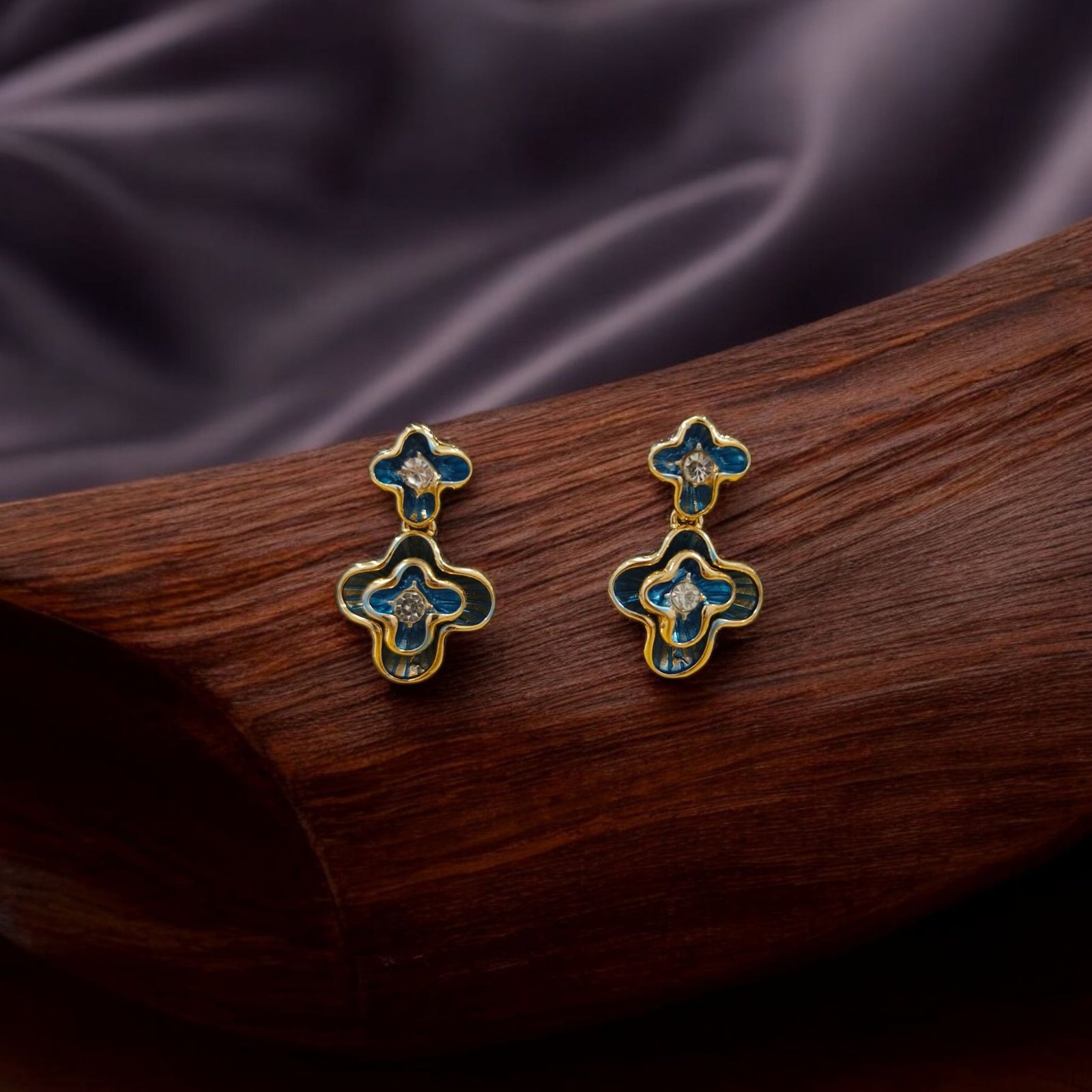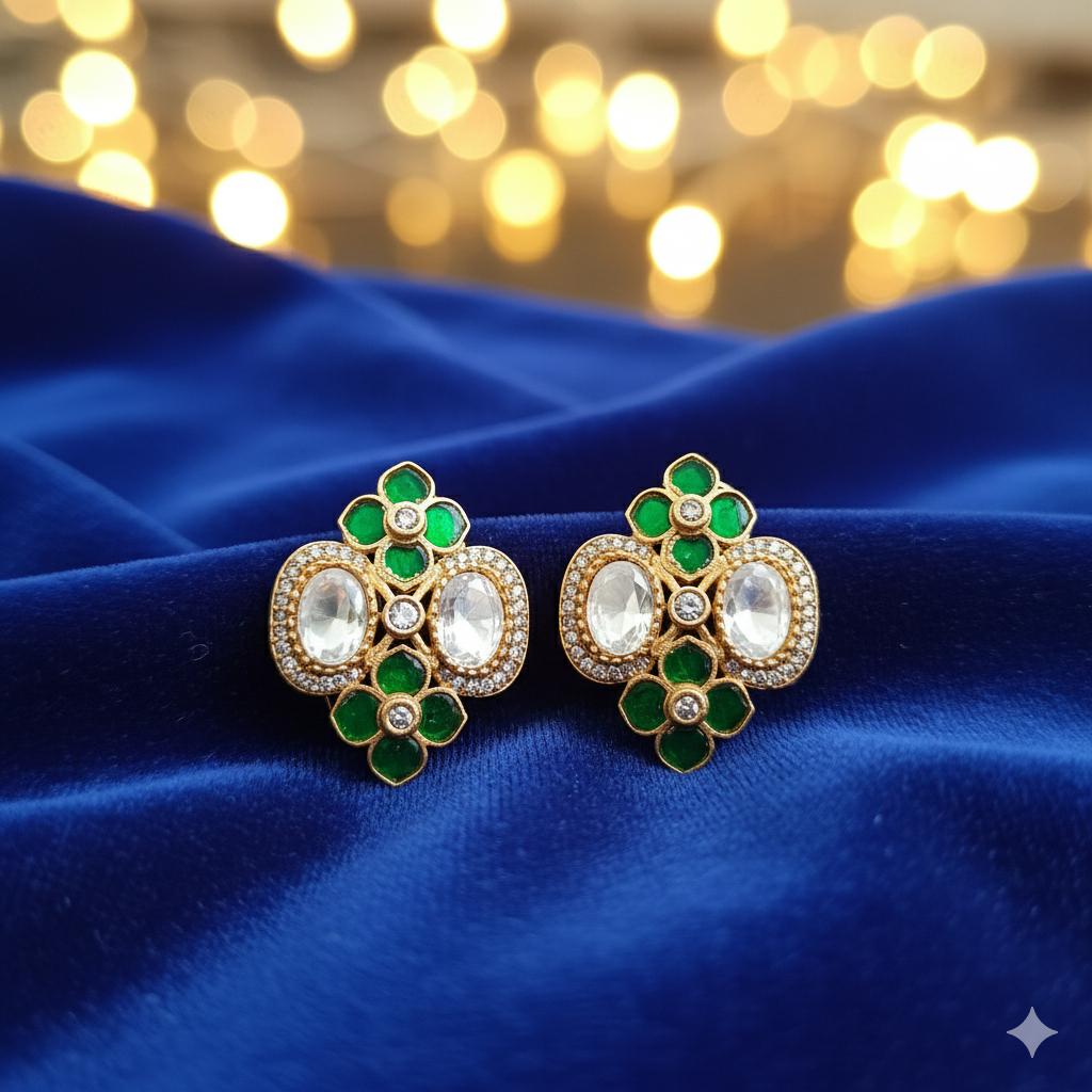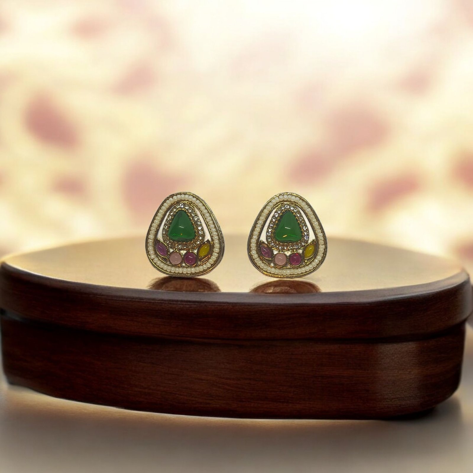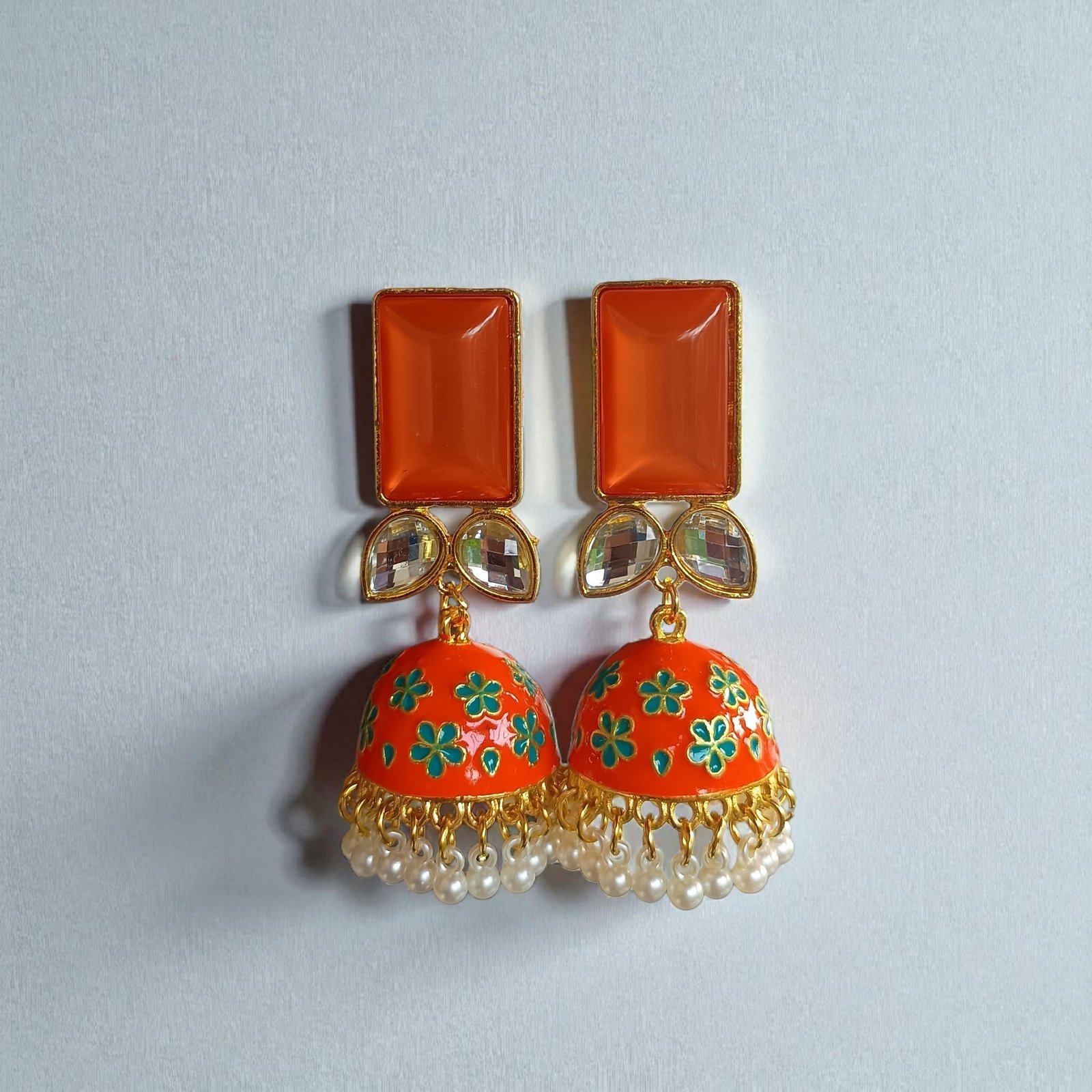 Minimalist Meenakari Drop Earrings with Polki Stone