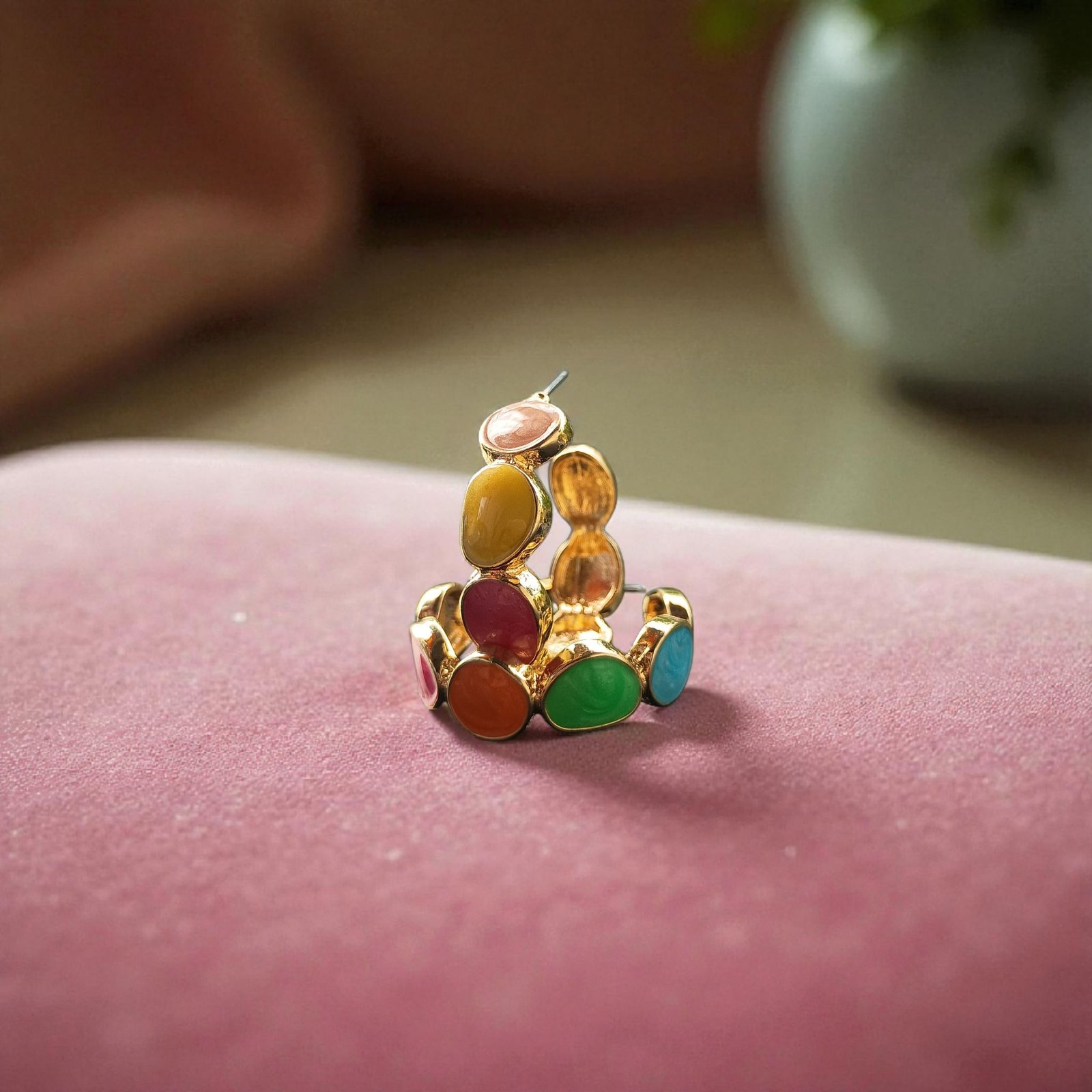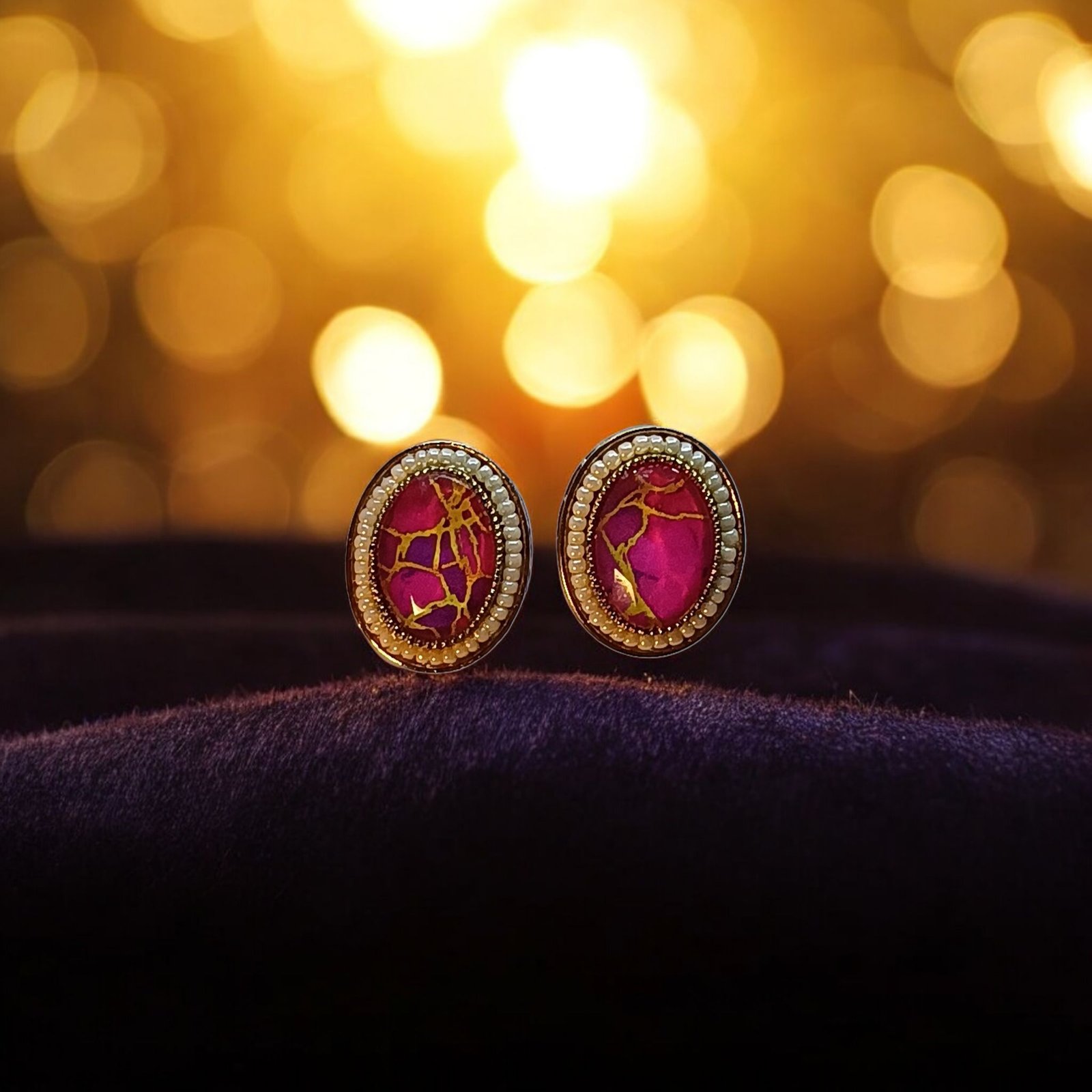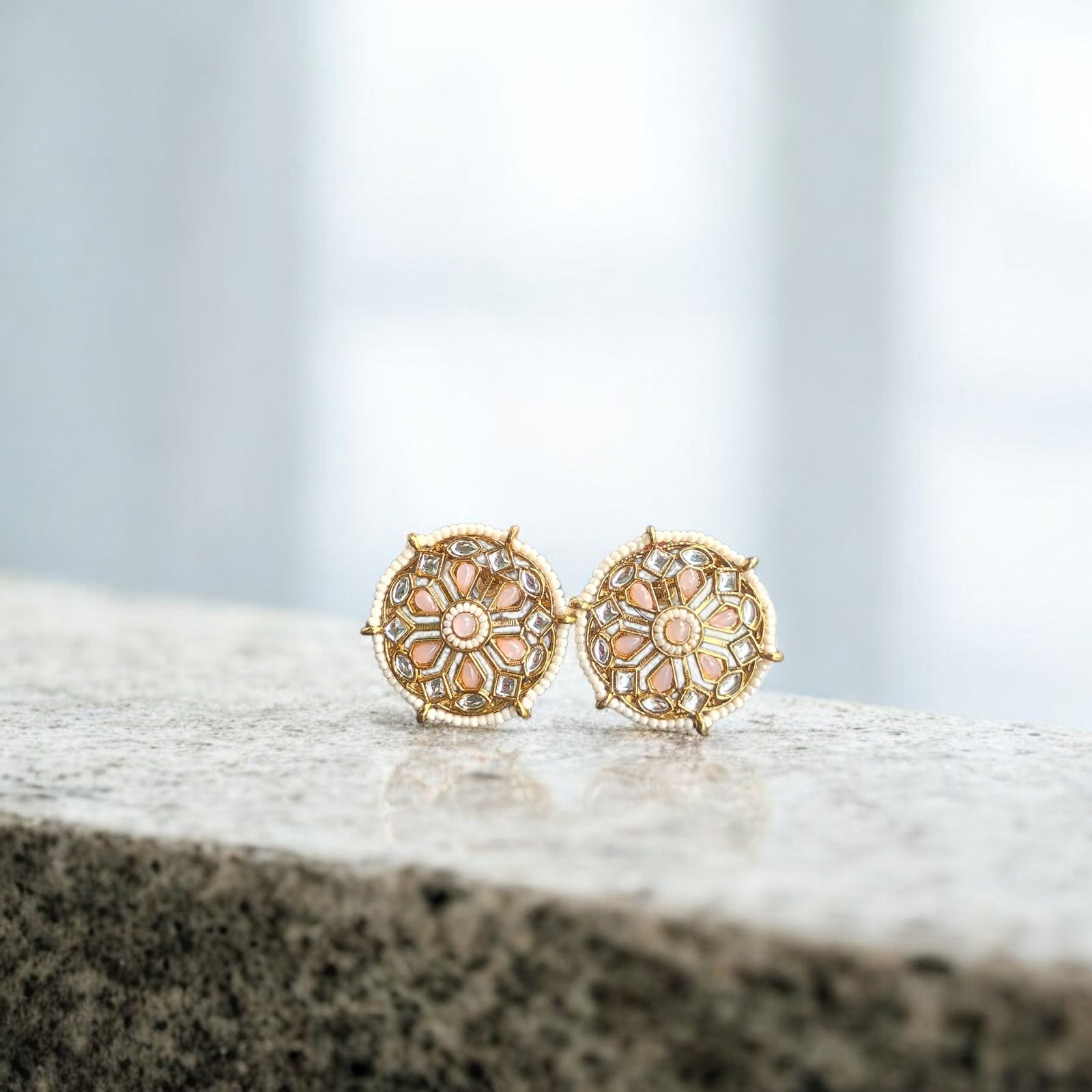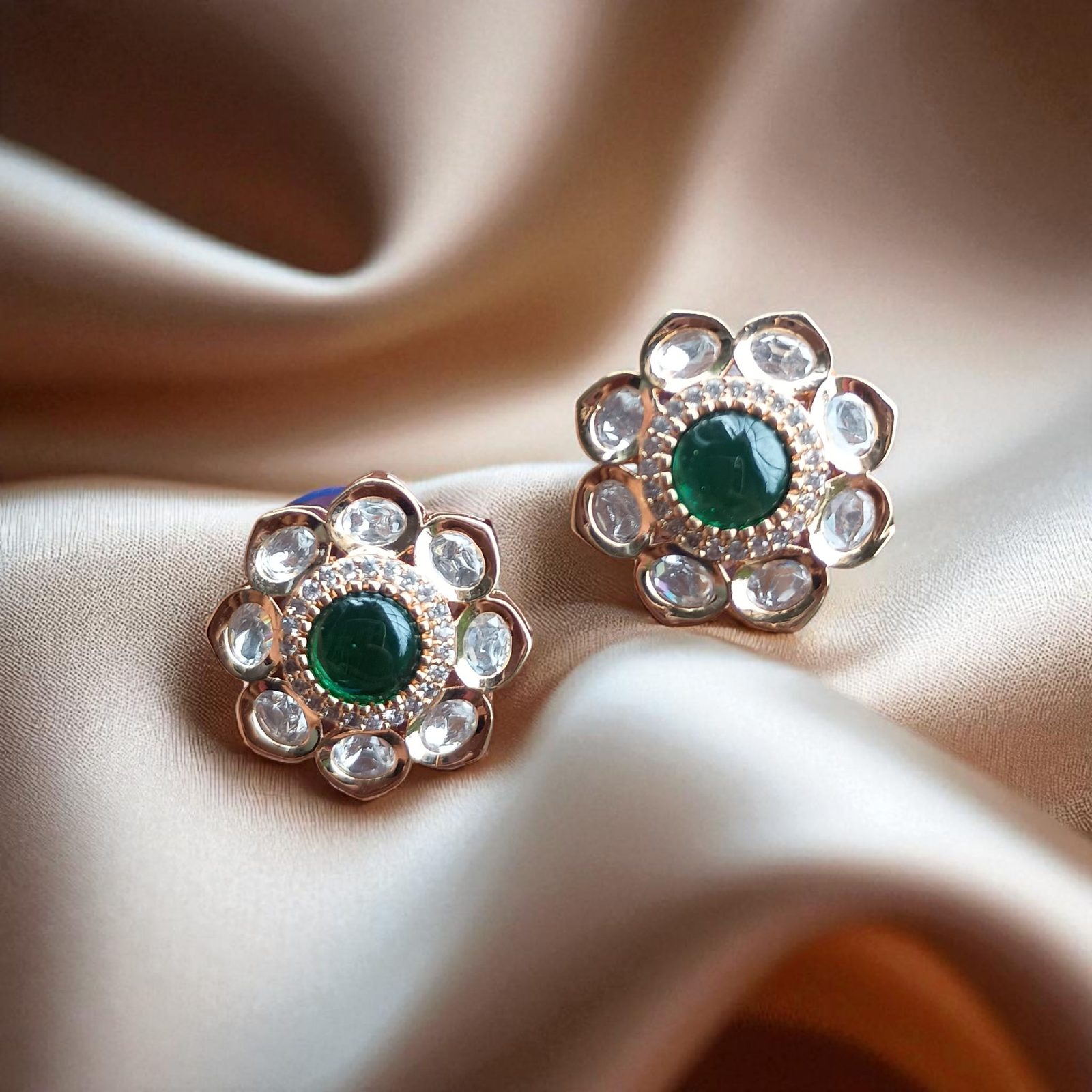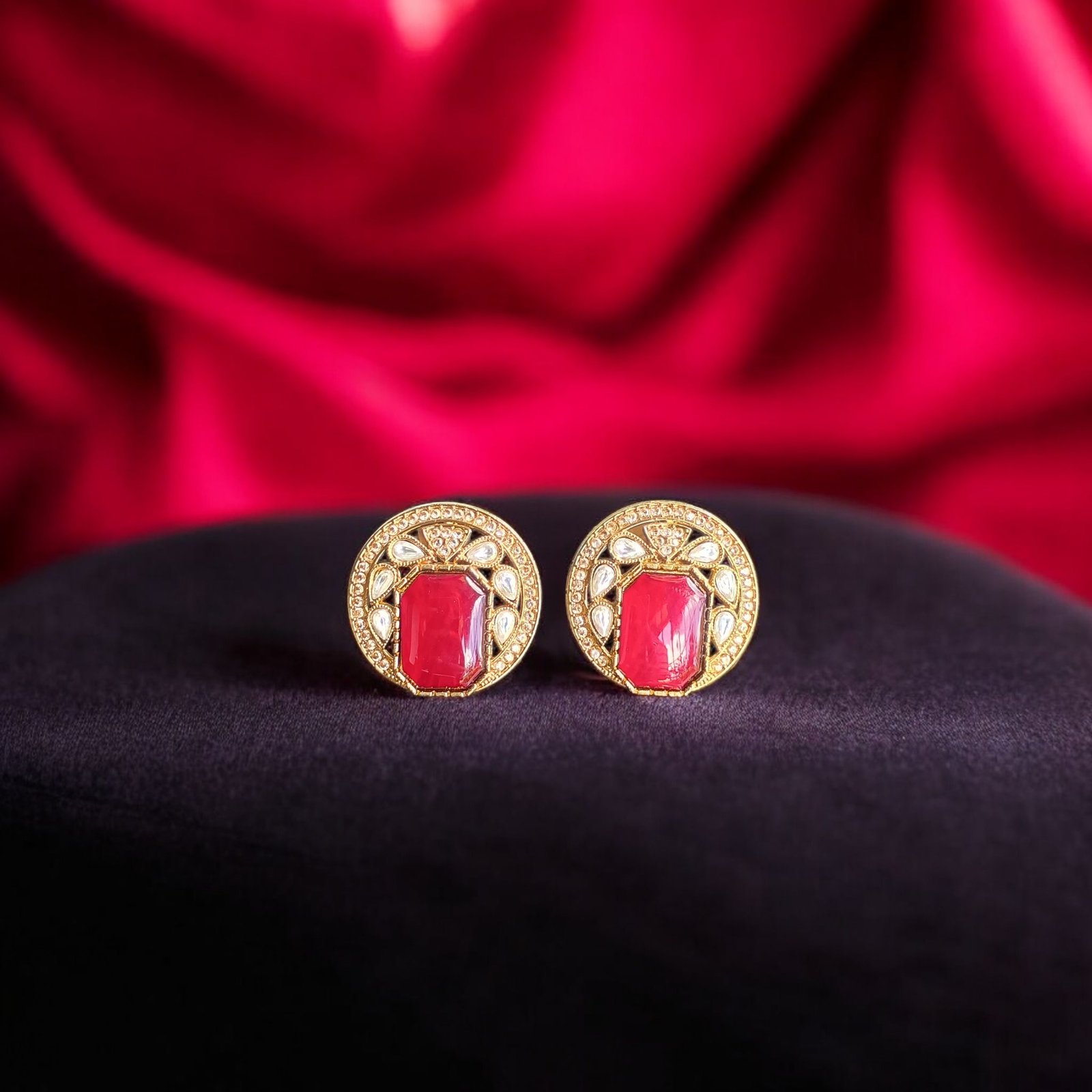 Minimalist Meenakari Drop Earrings with Polki Stone