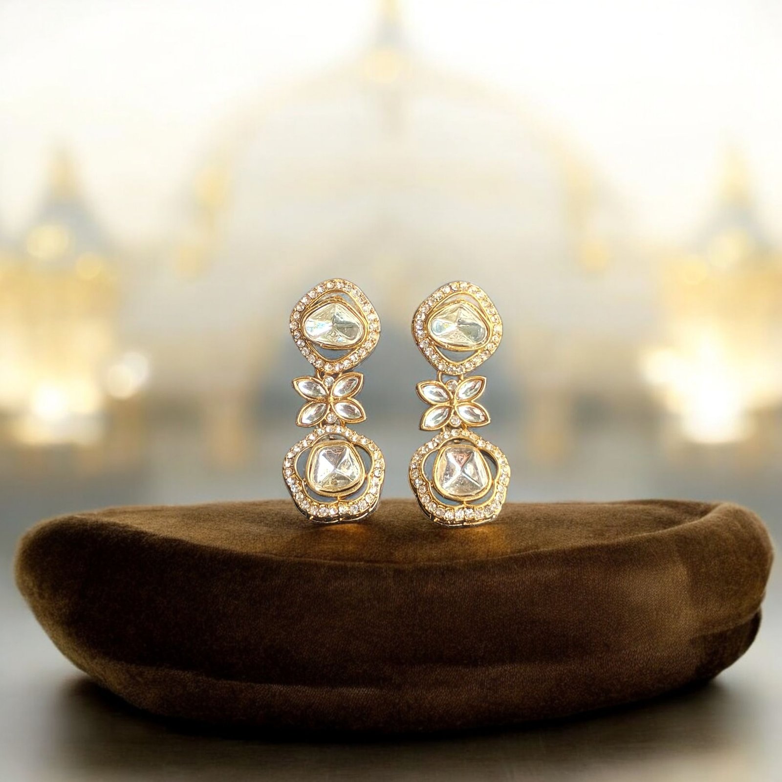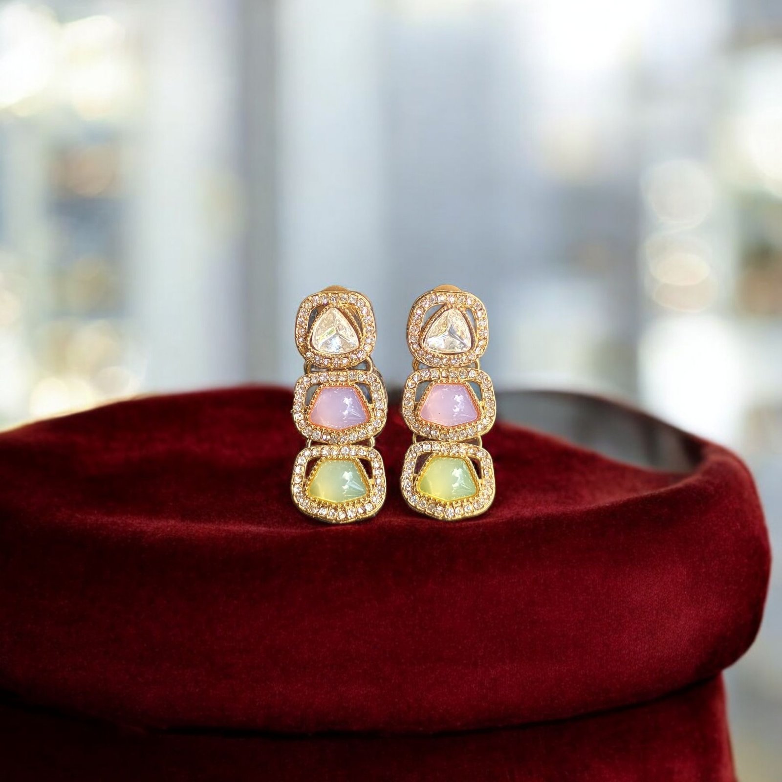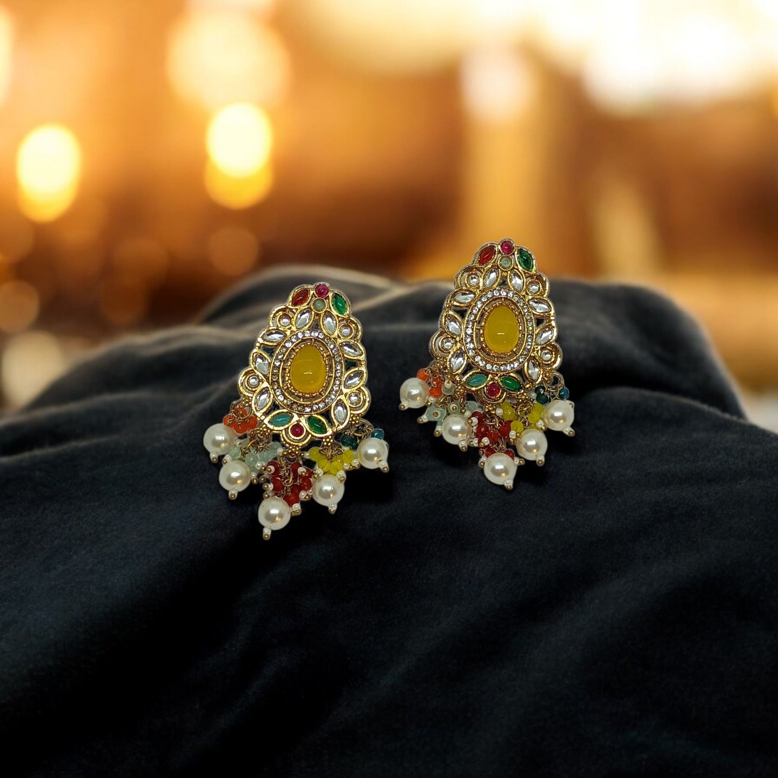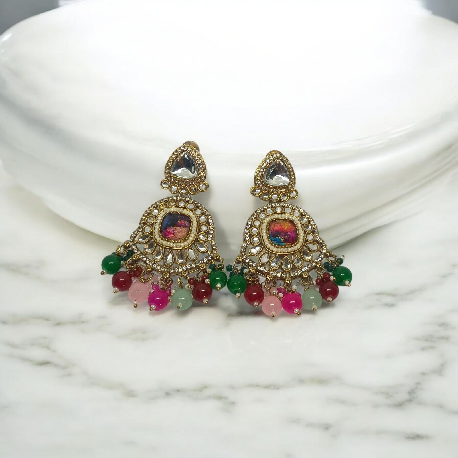 Polki Drop Earrings with Multicoloured Bead Danglers