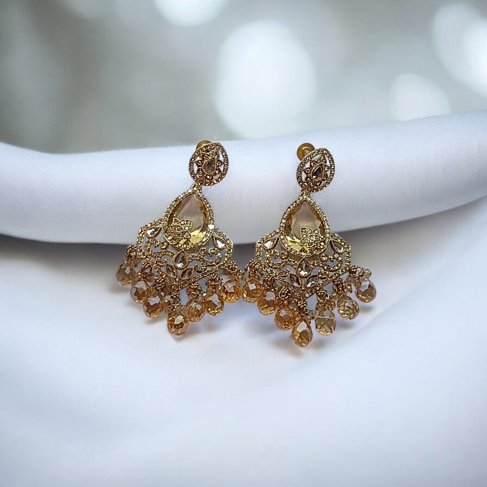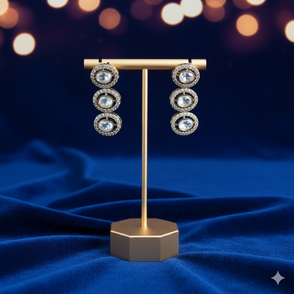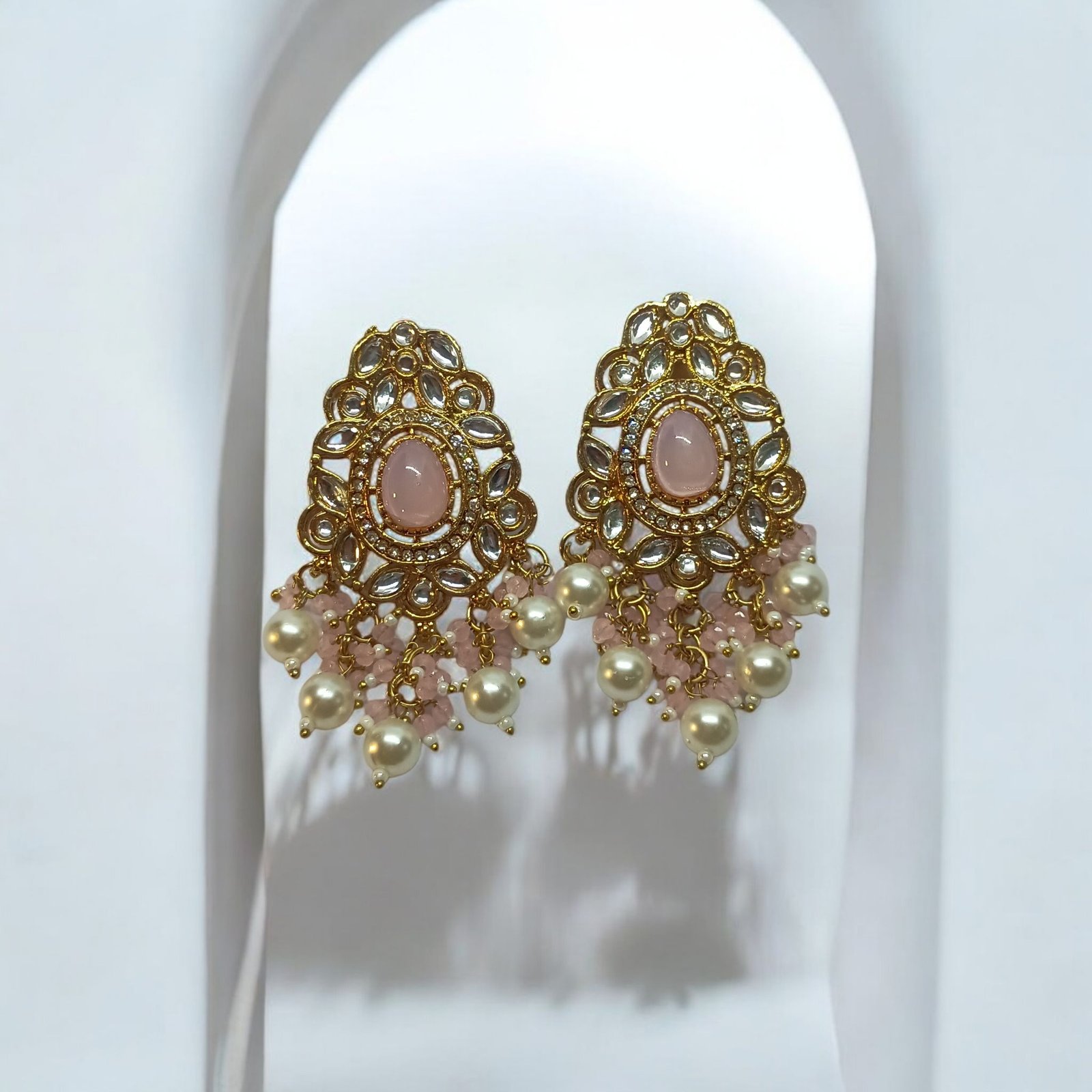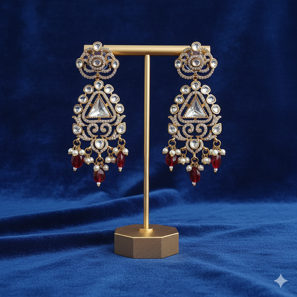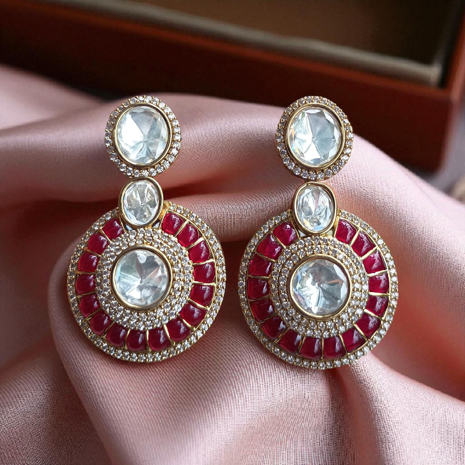 Polki Drop Earrings with Multicoloured Bead Danglers