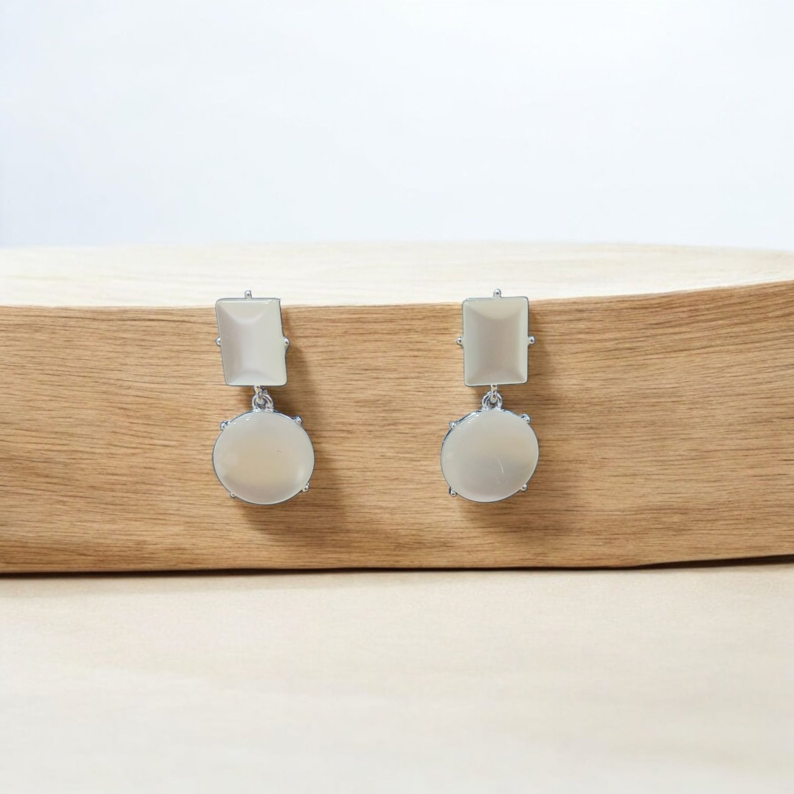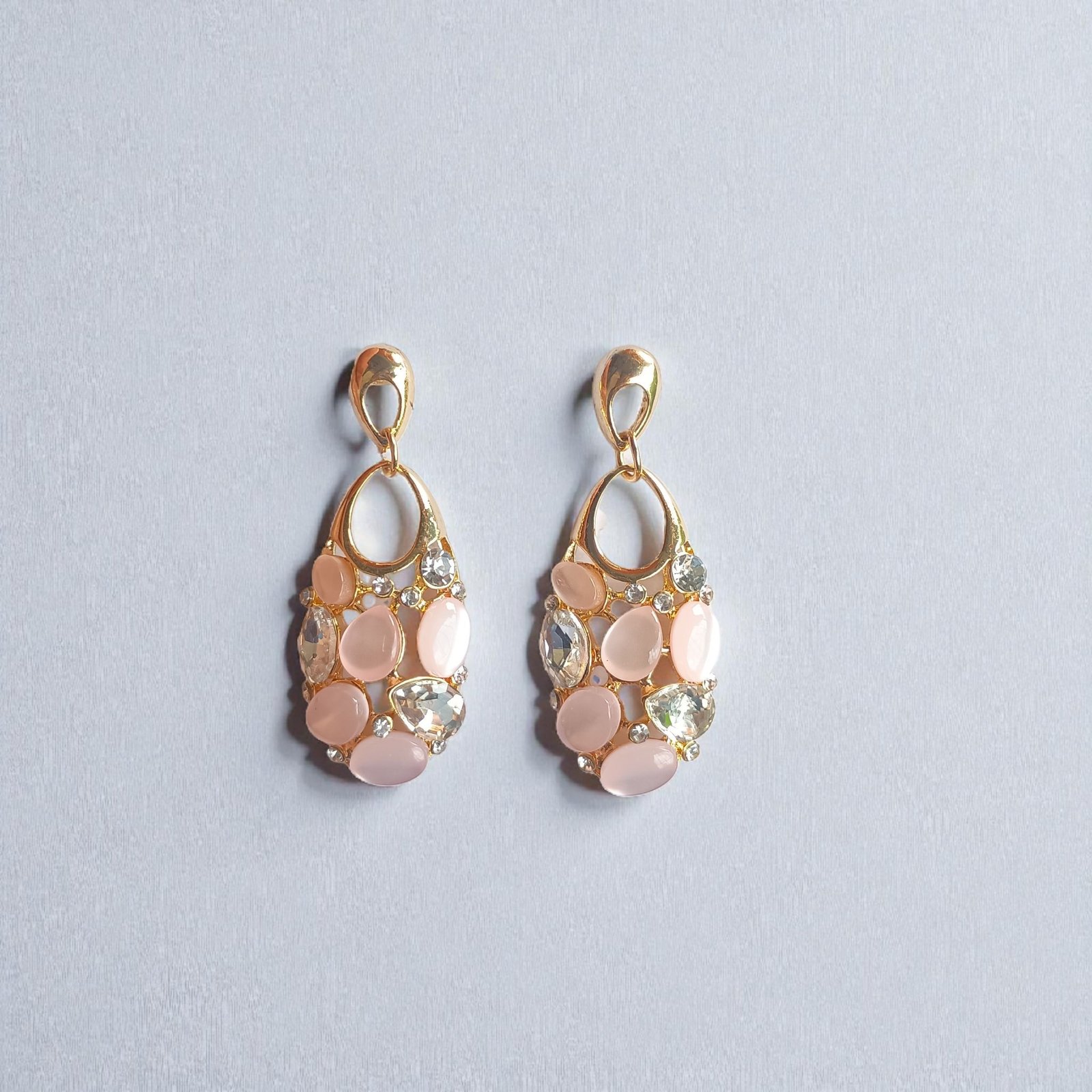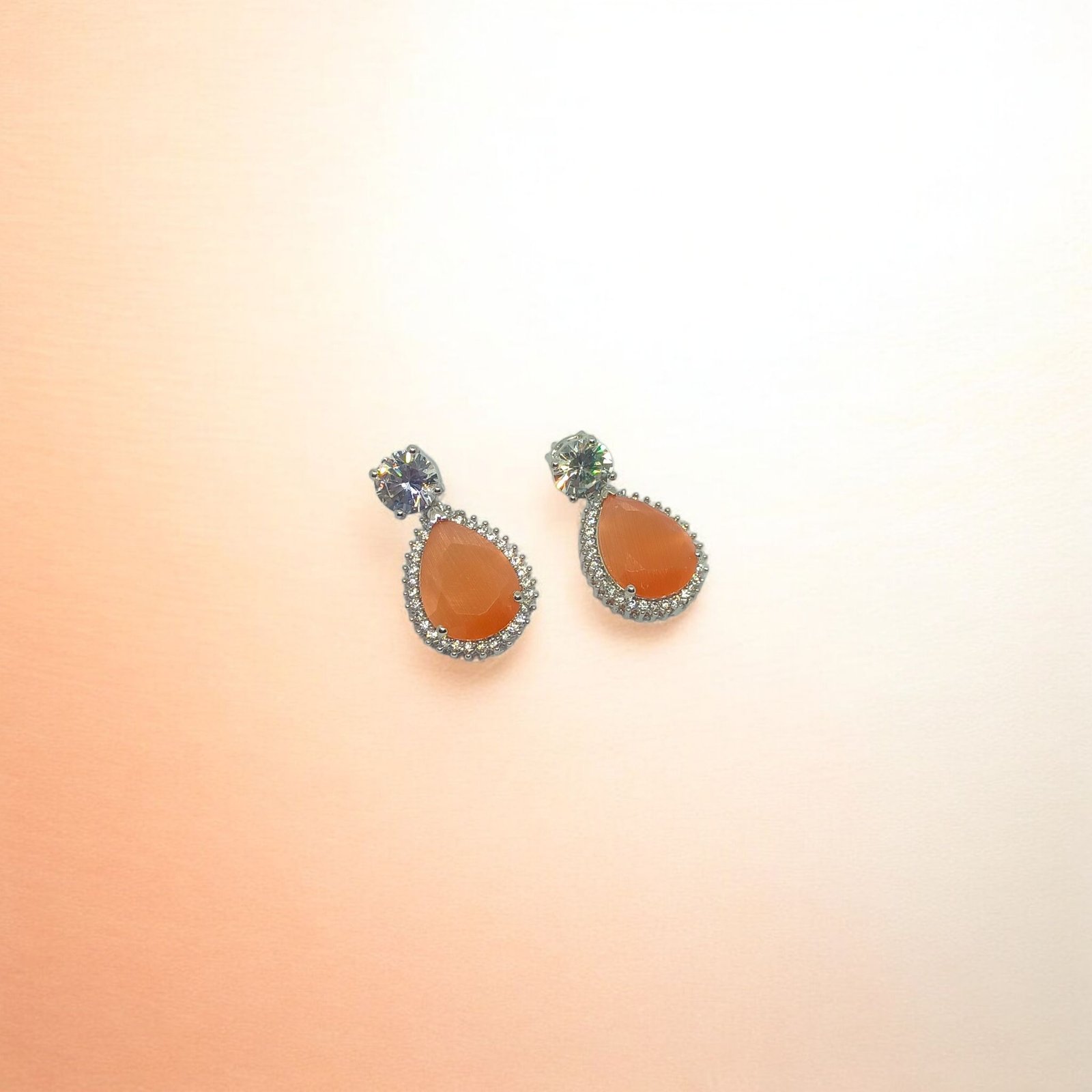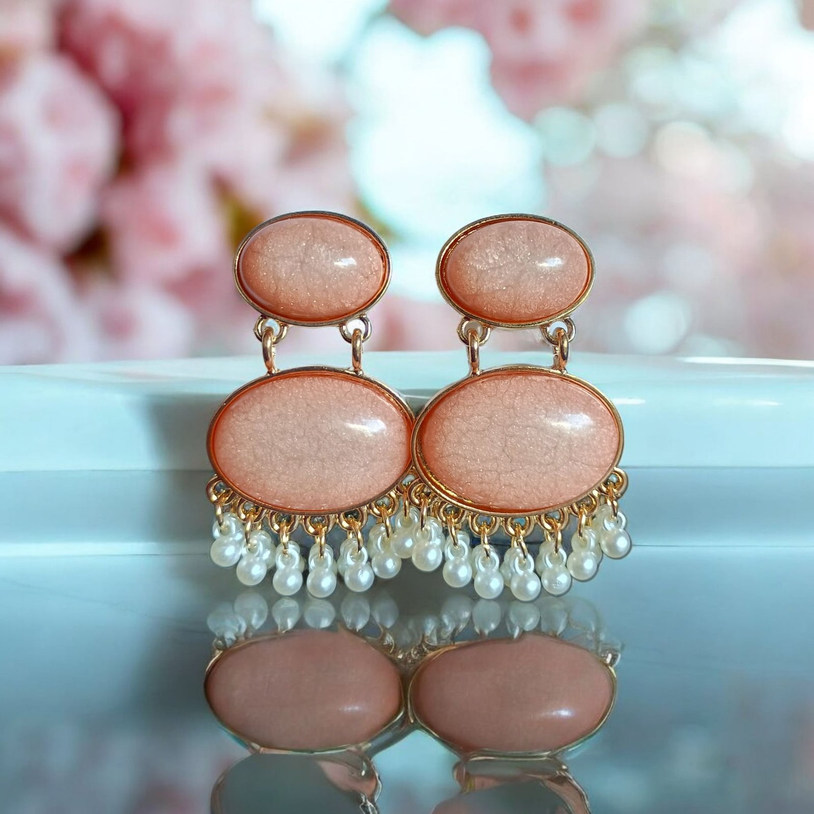 Silver Plated Peach Stone Cluster Dangler Earrings