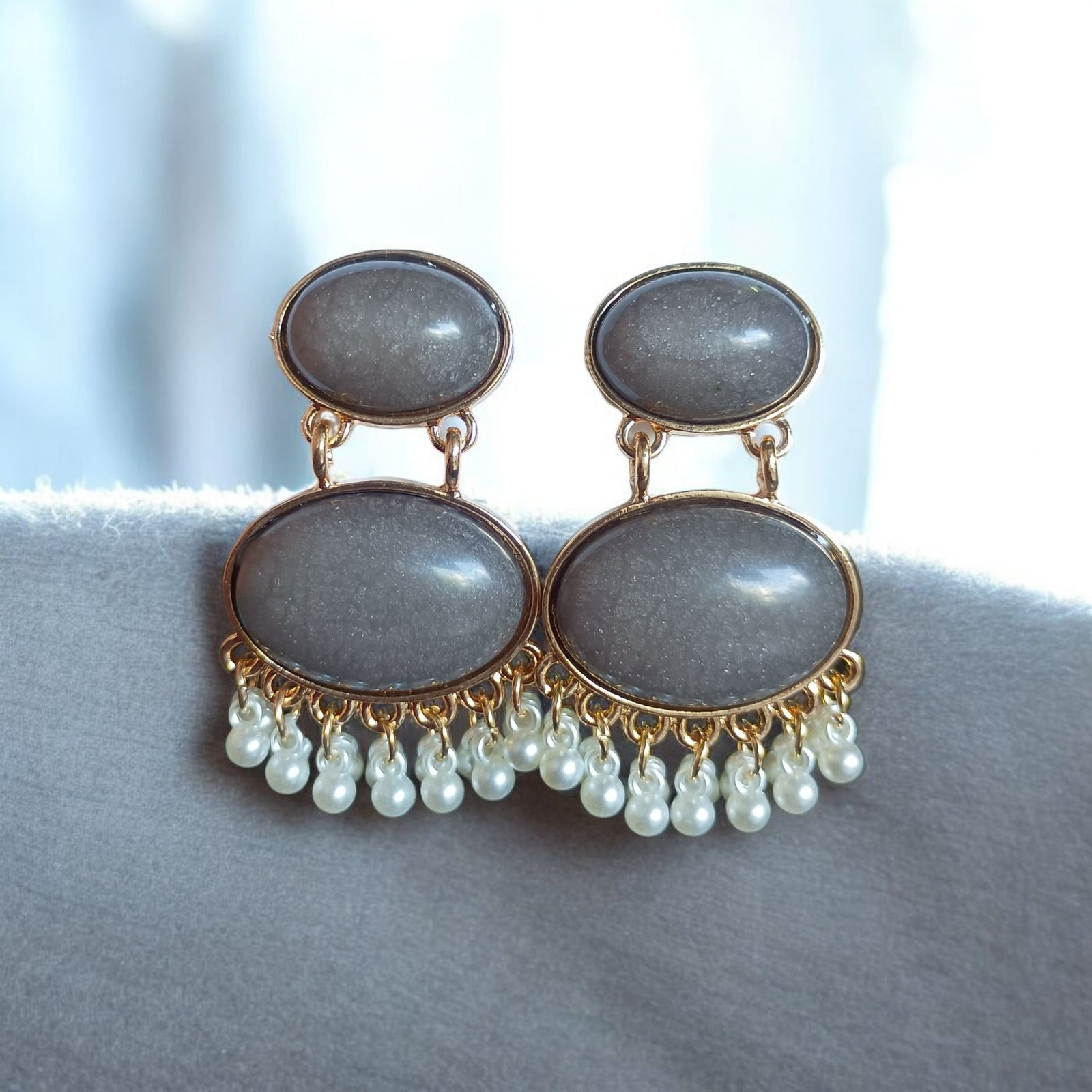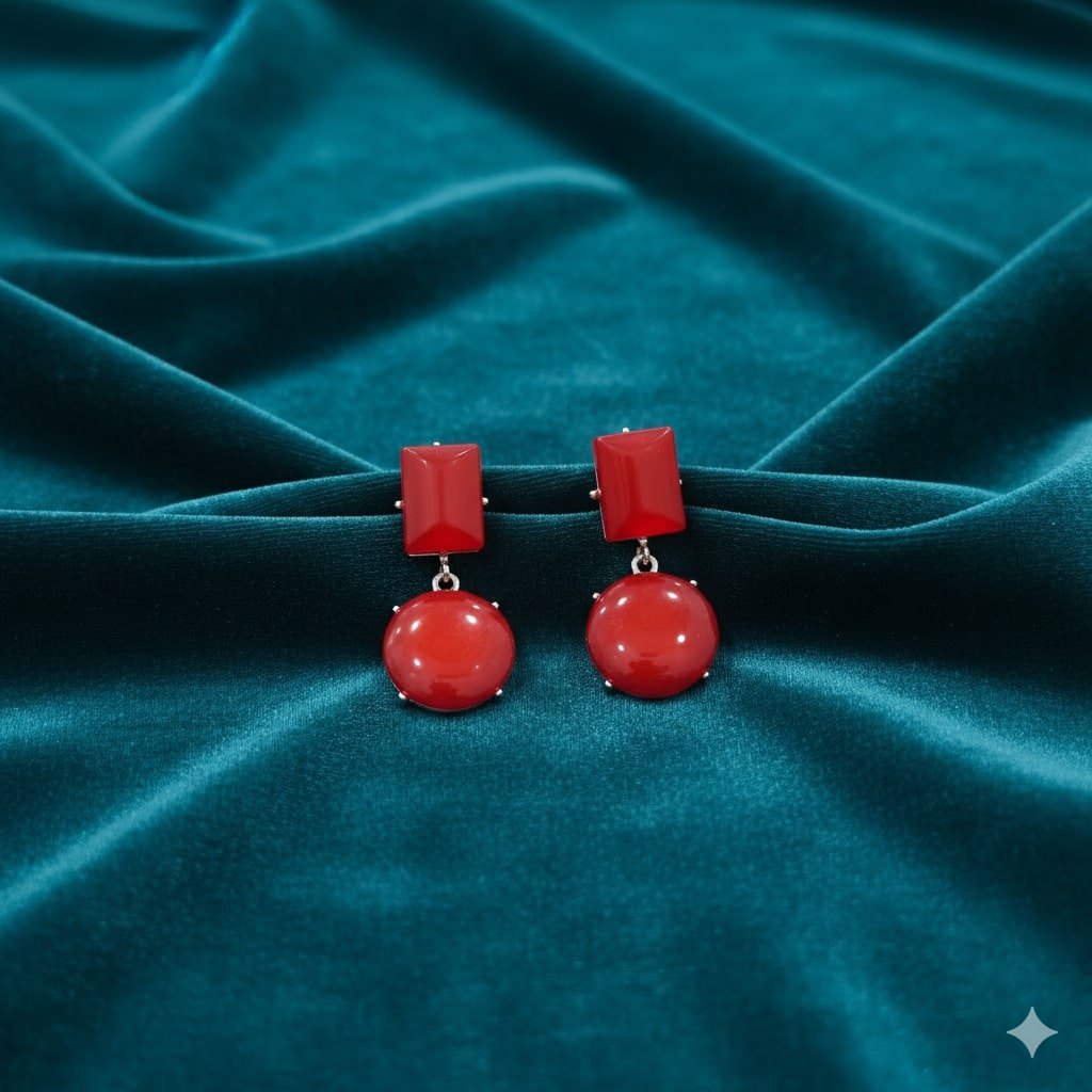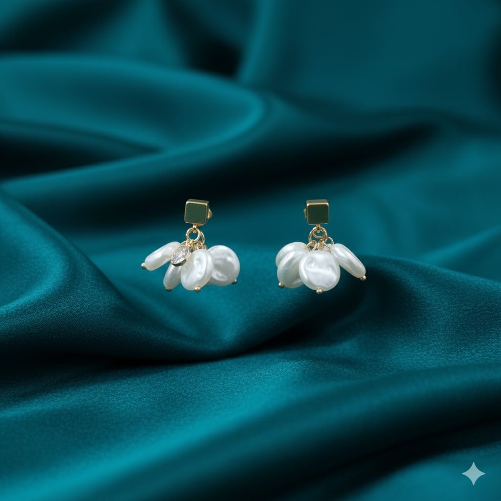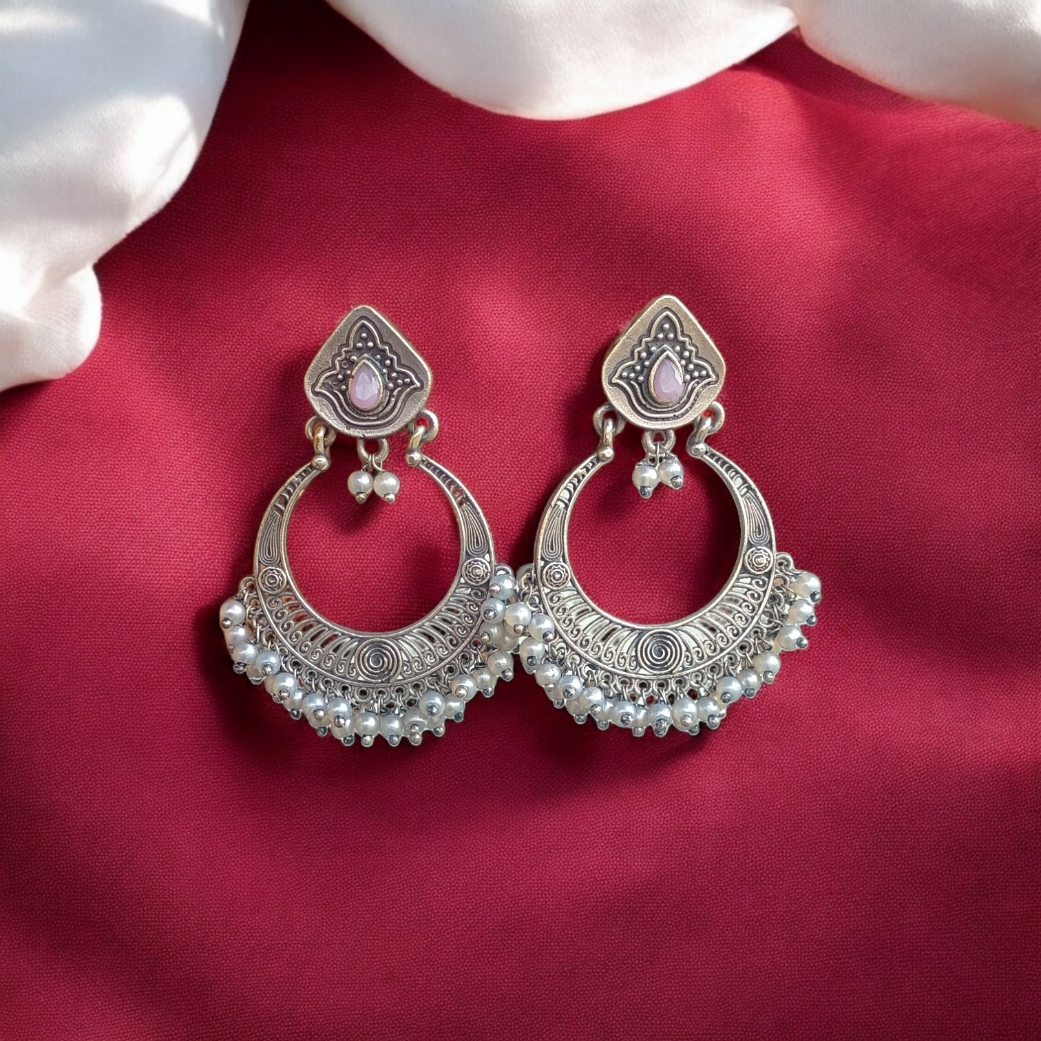 Silver Plated Peach Stone Cluster Dangler Earrings