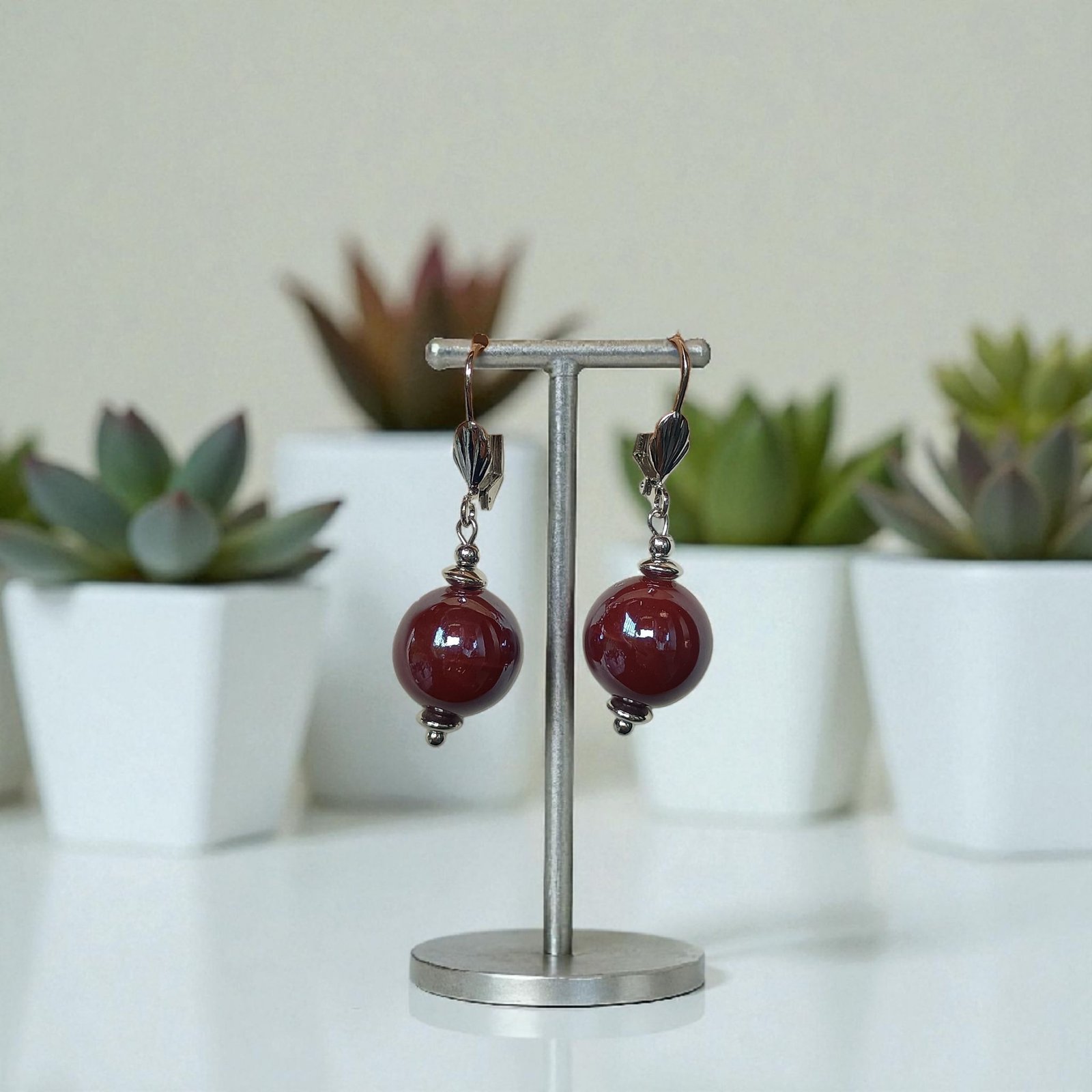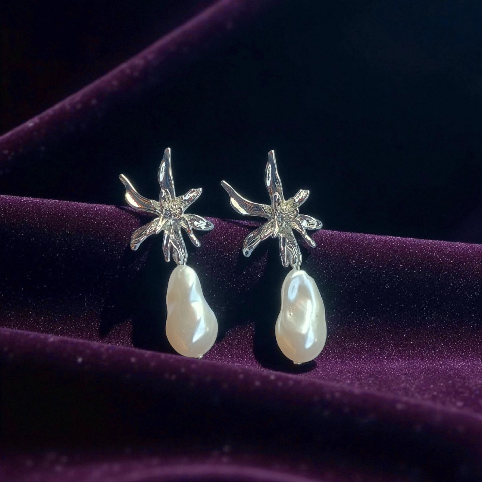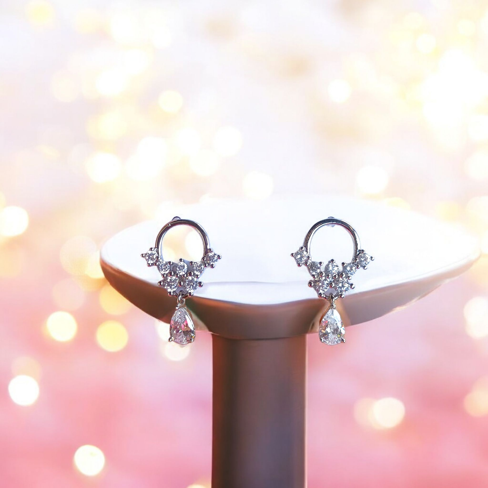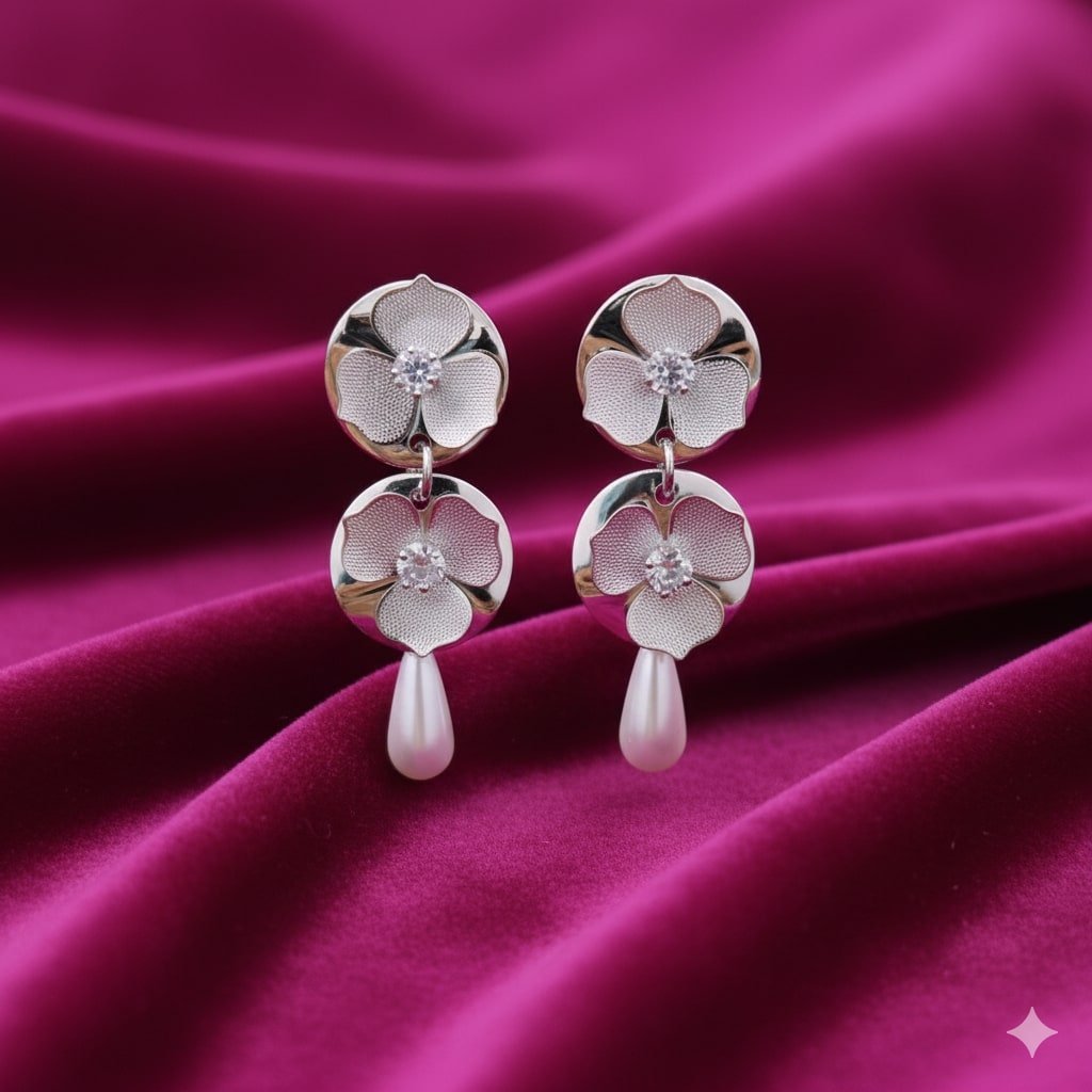 Silver Plated Peach Stone Cluster Dangler Earrings
