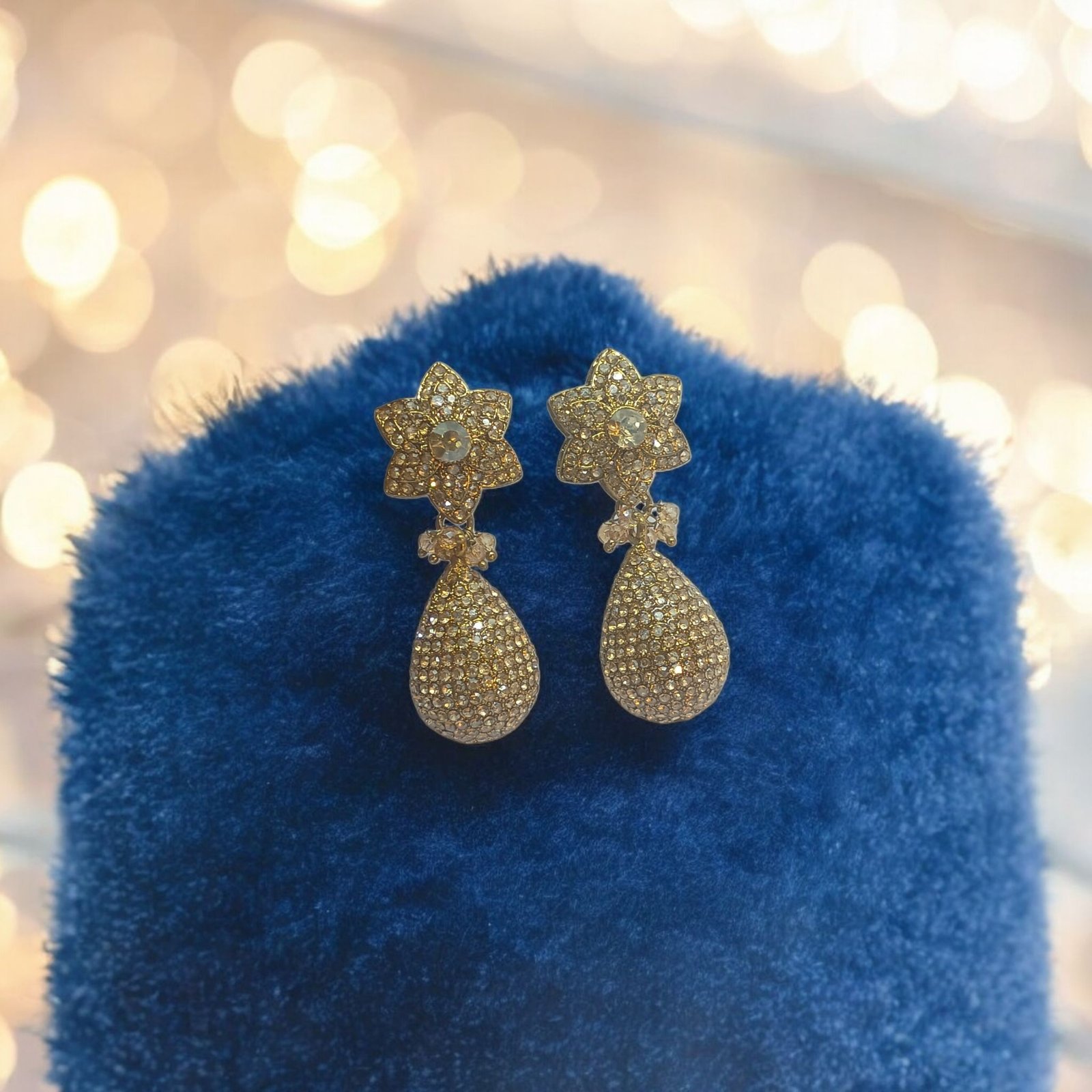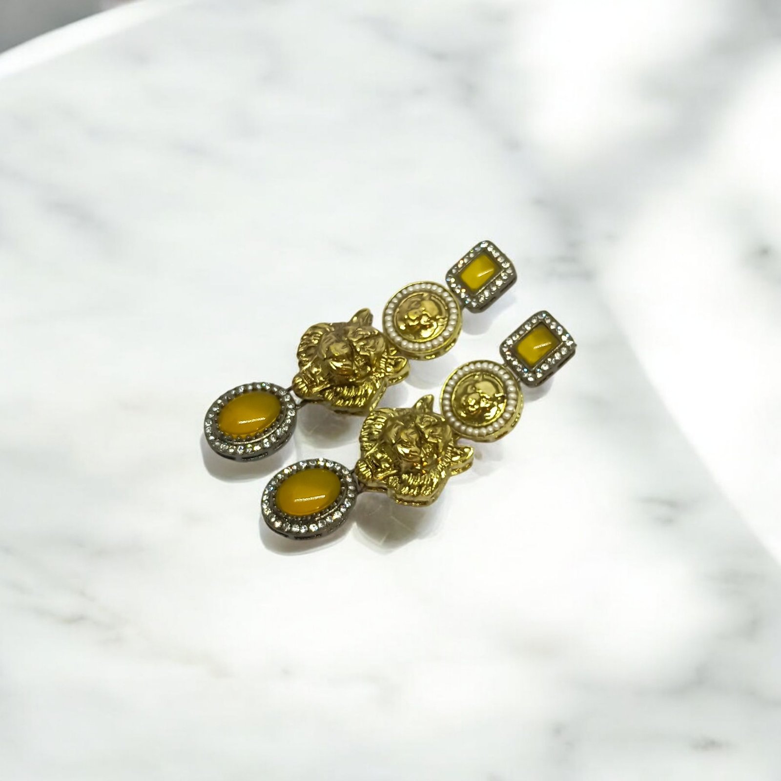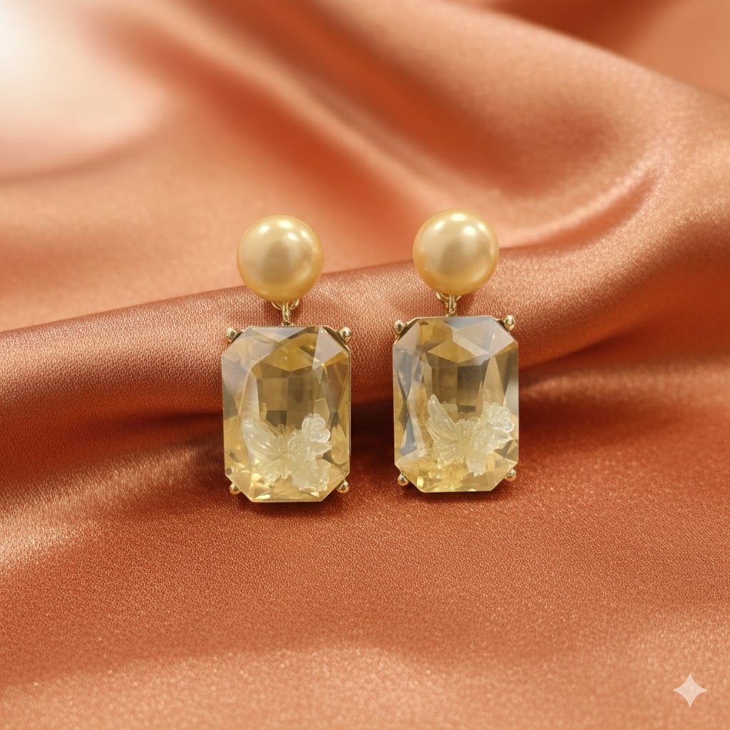 Butterfly Engraved Rectangle Crystal Drops - Yellow