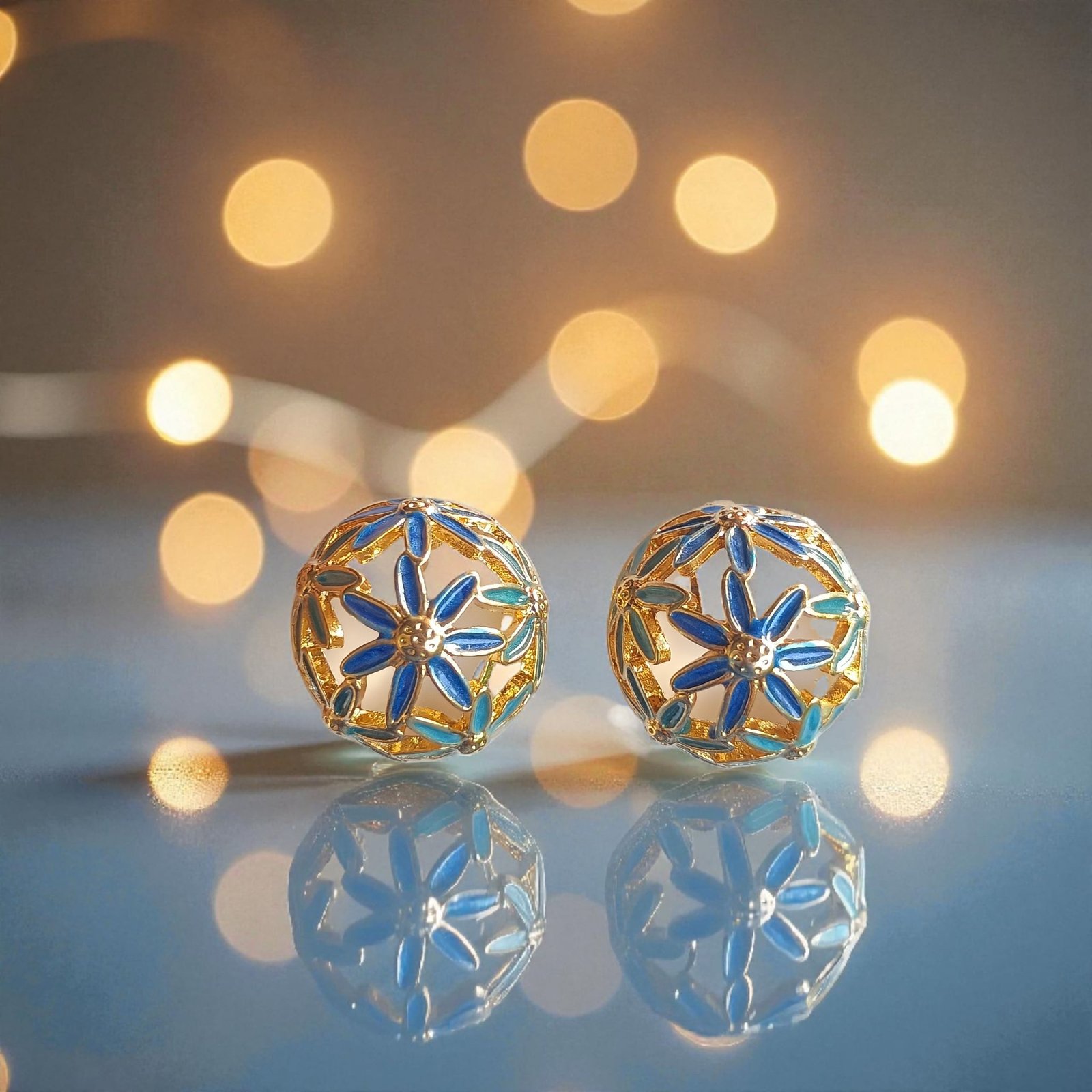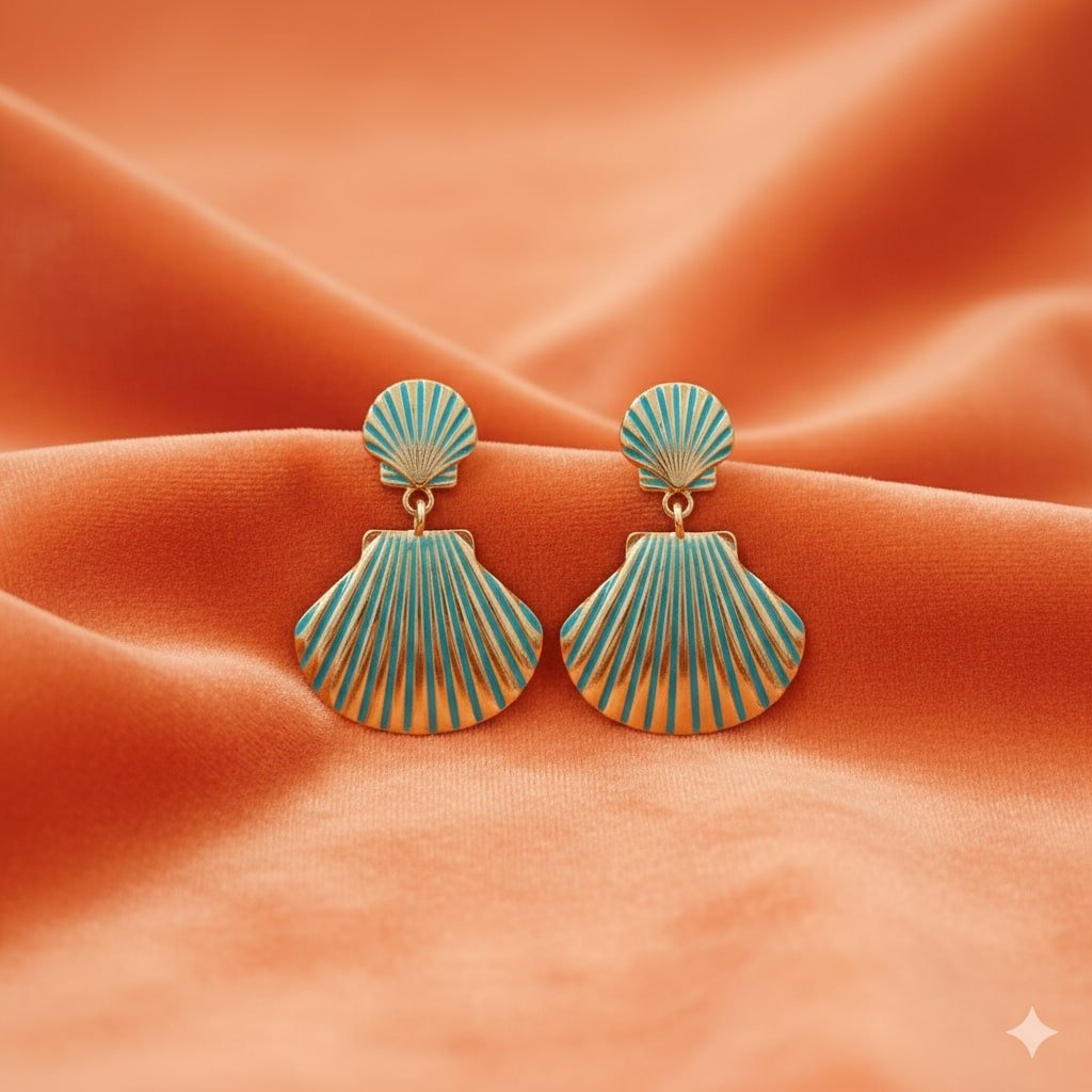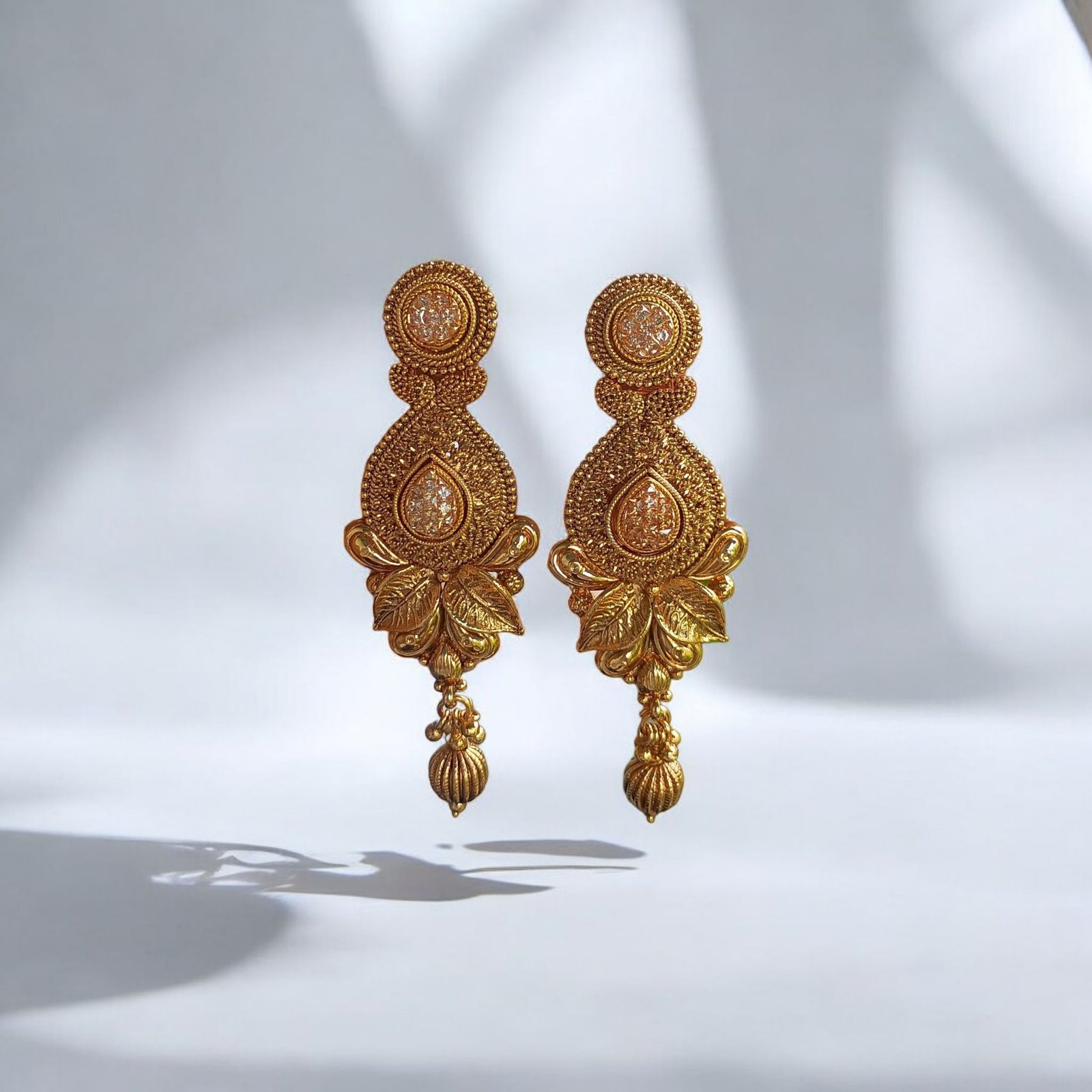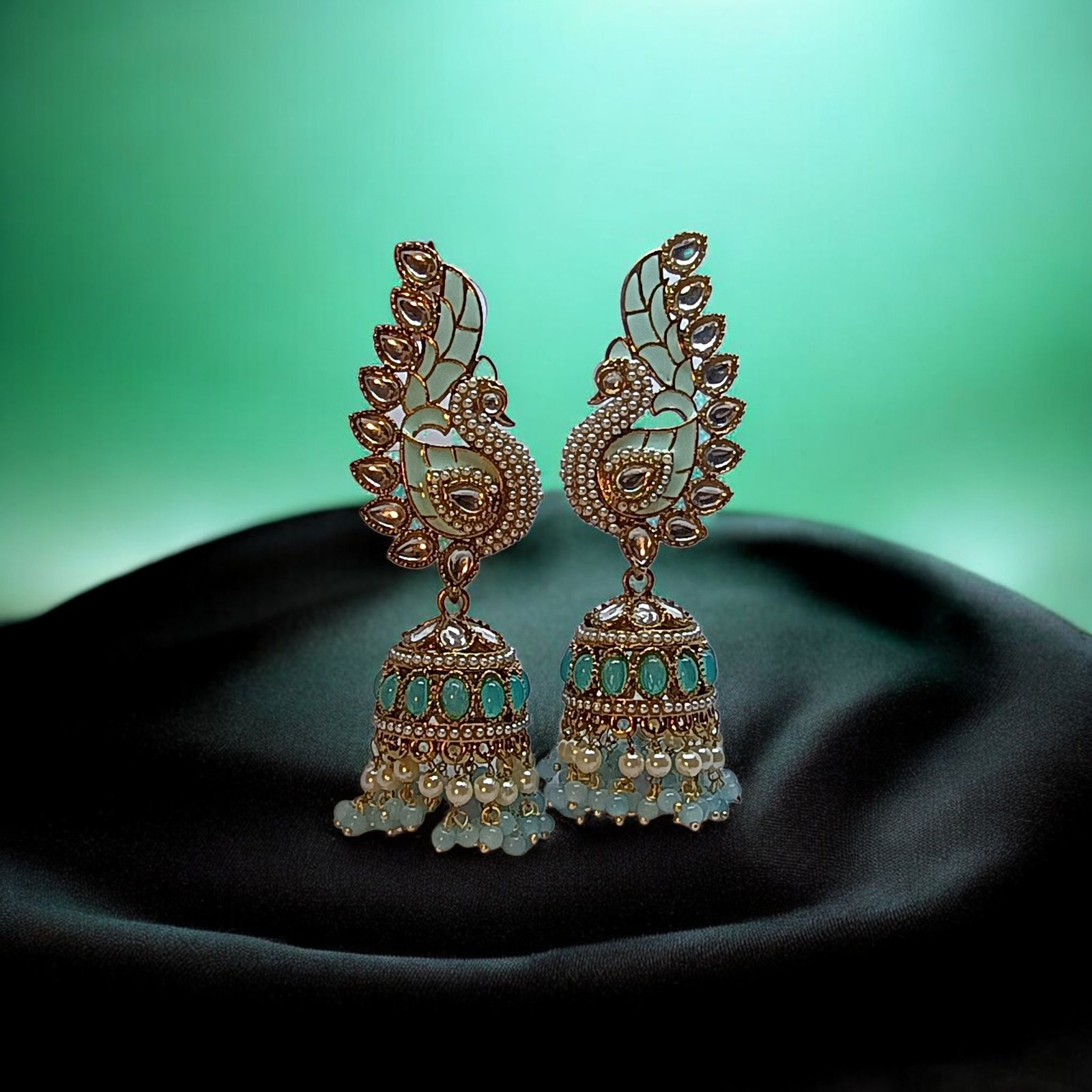 Sophisticated Gold Leaf Jhumka with Teal Bead Drops