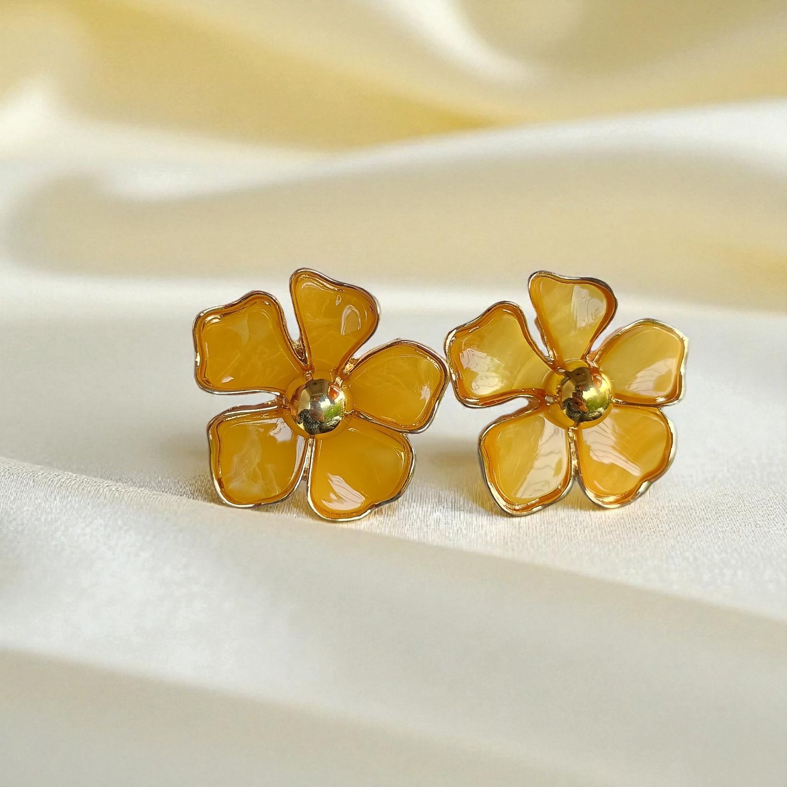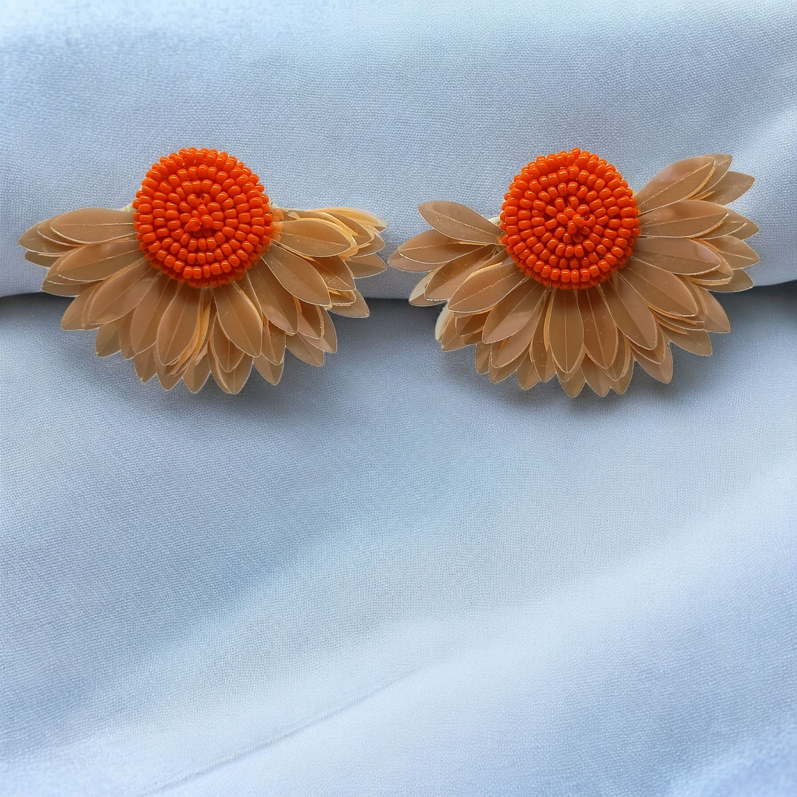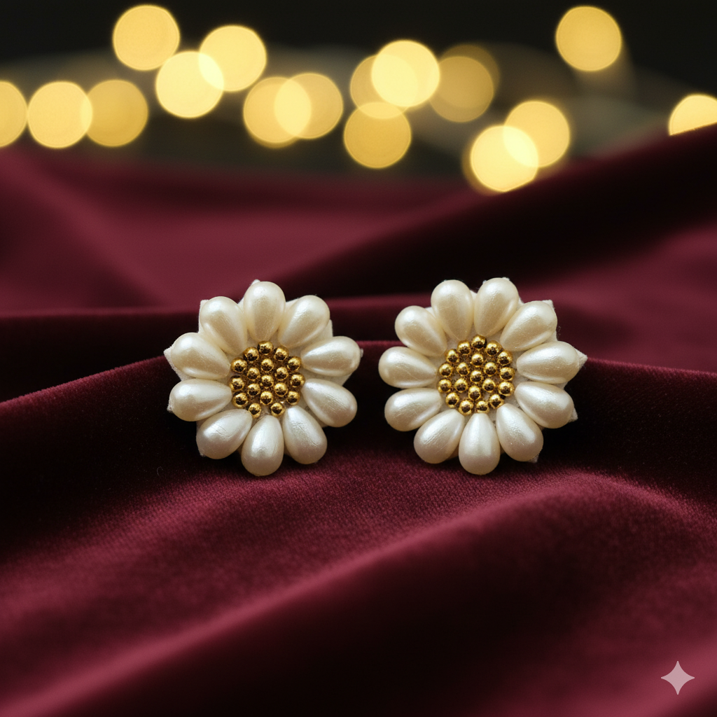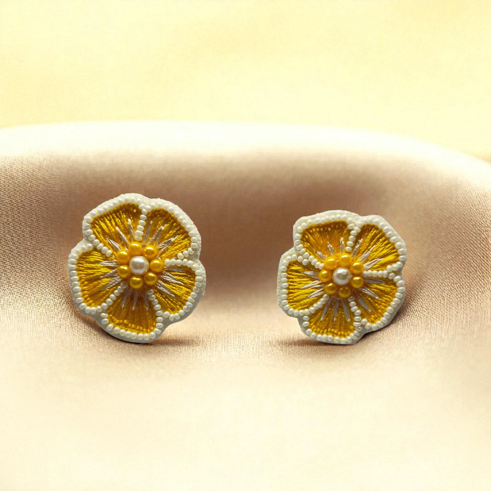 Hand-Embroidered Yellow and White Flower Stud Earrings