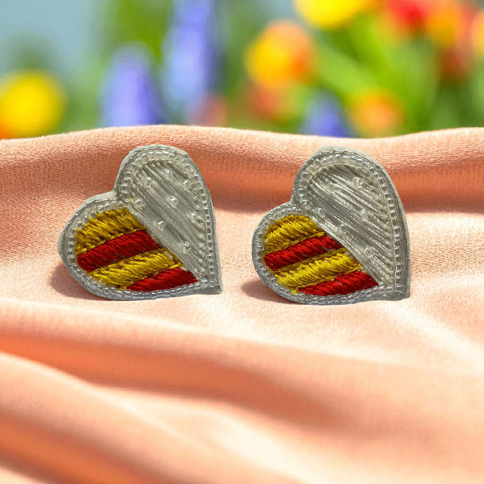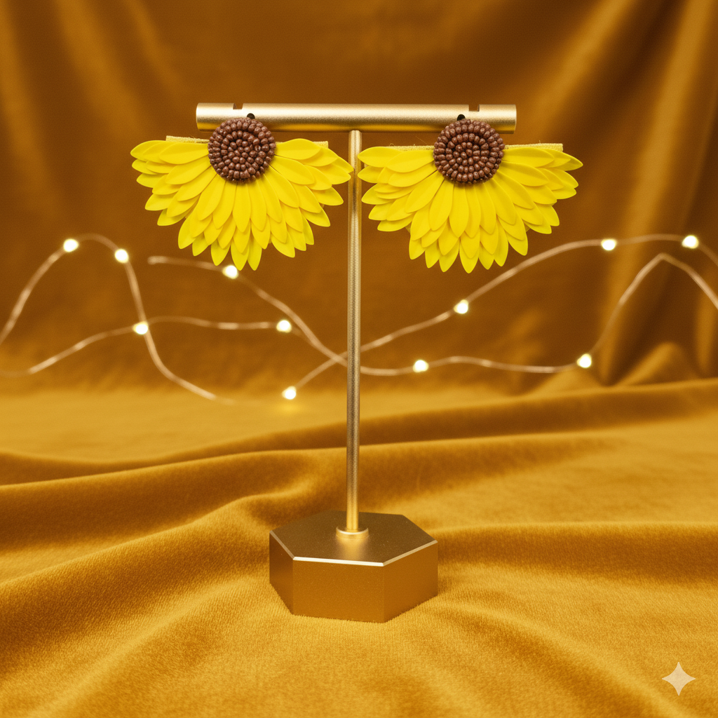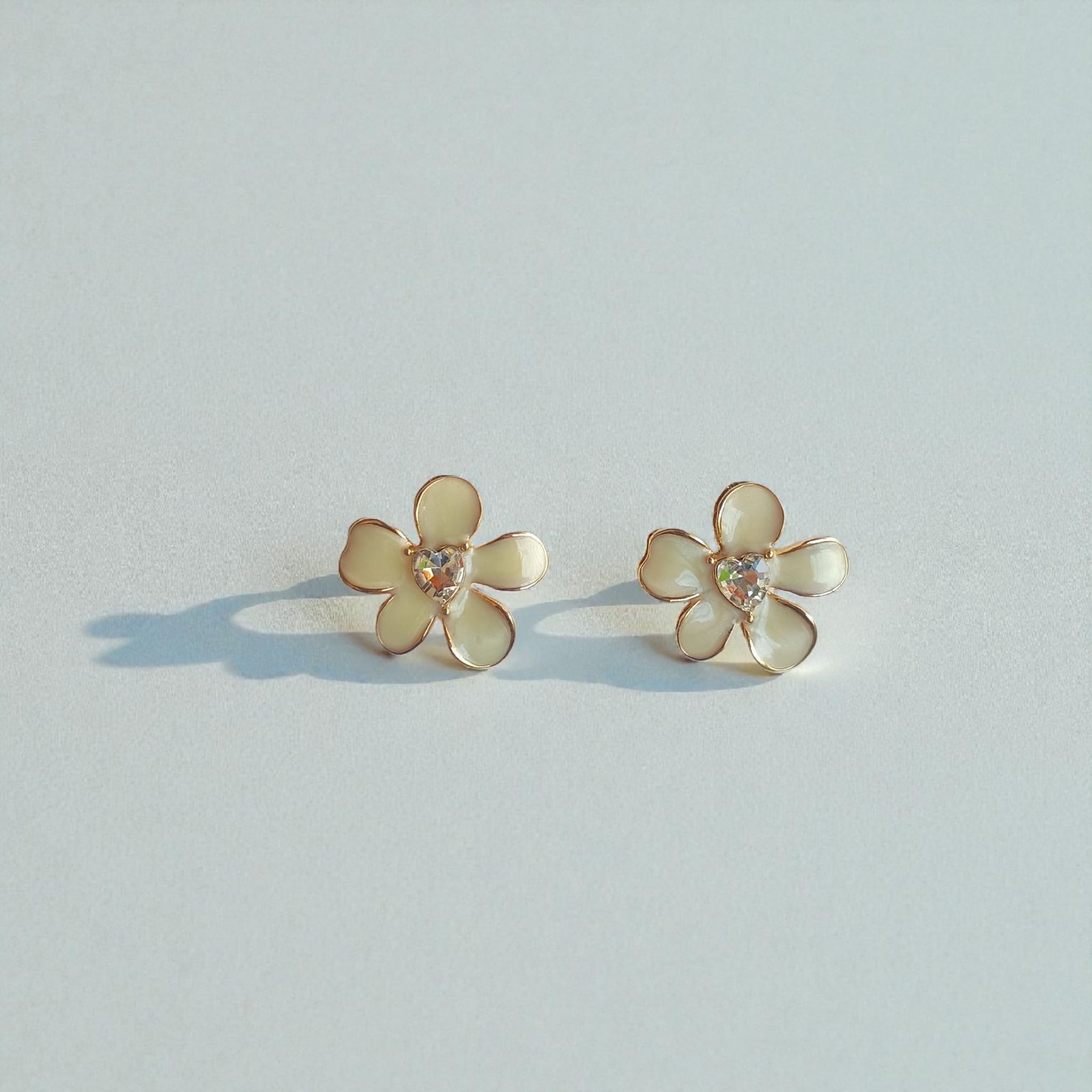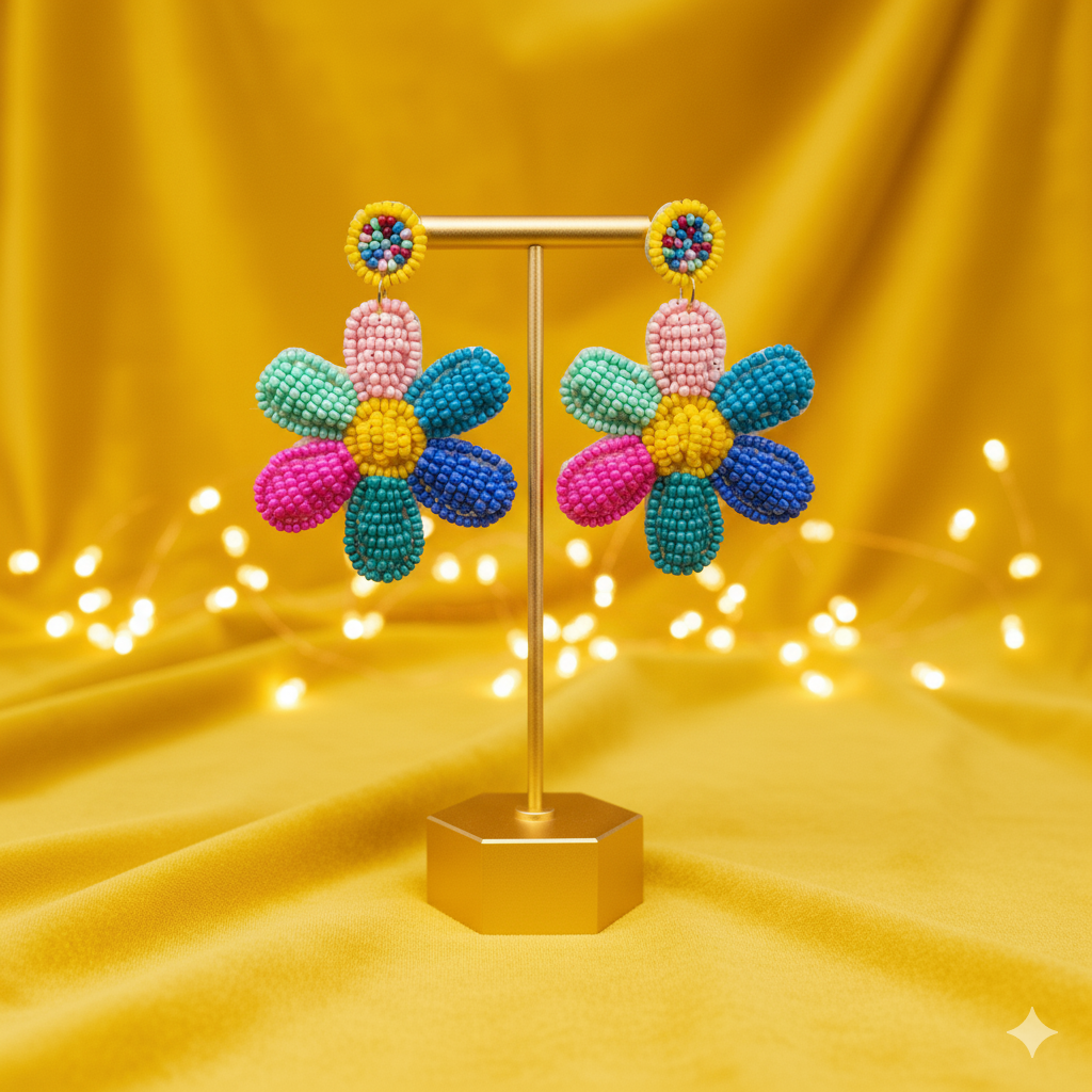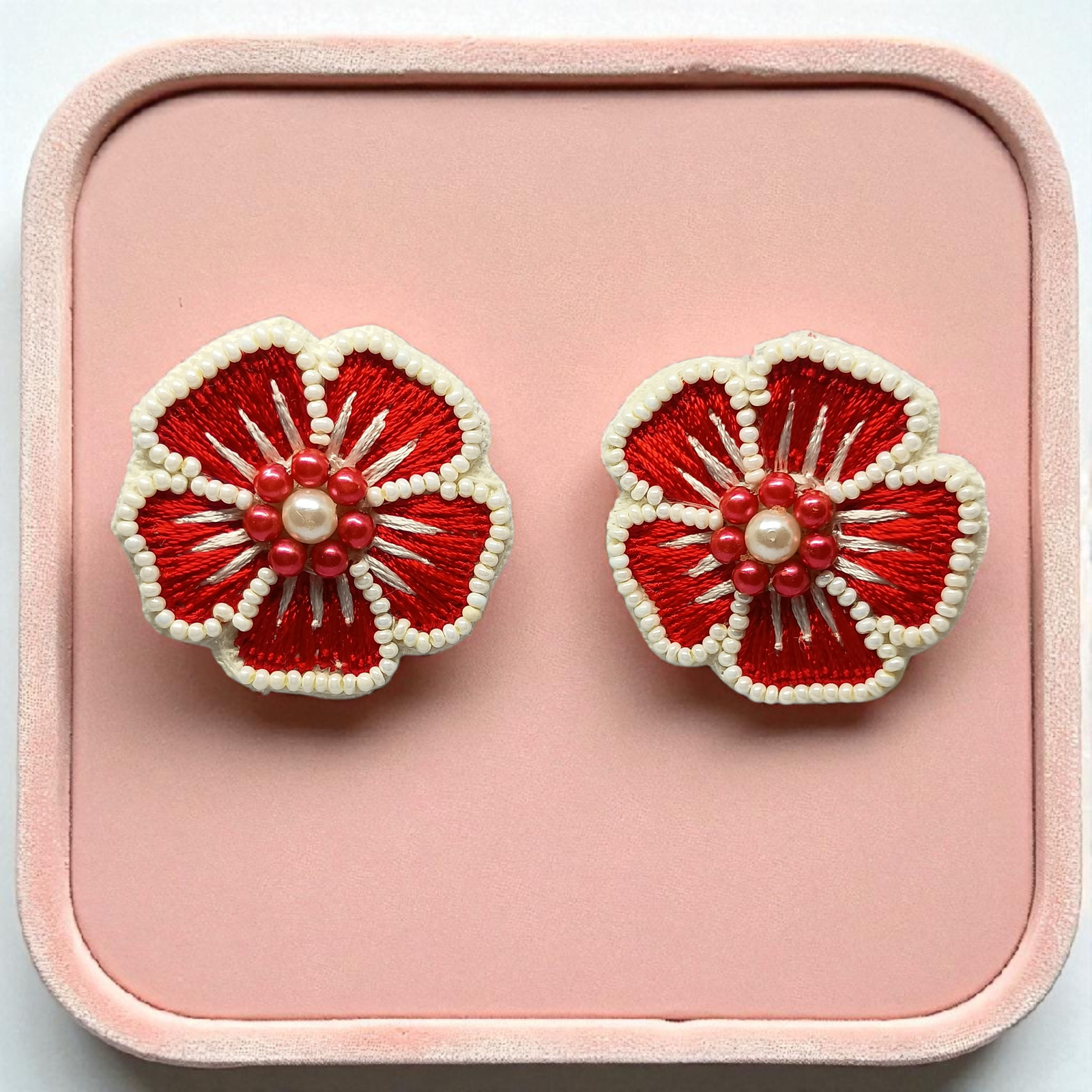 Hand-Embroidered Yellow and White Flower Stud Earrings