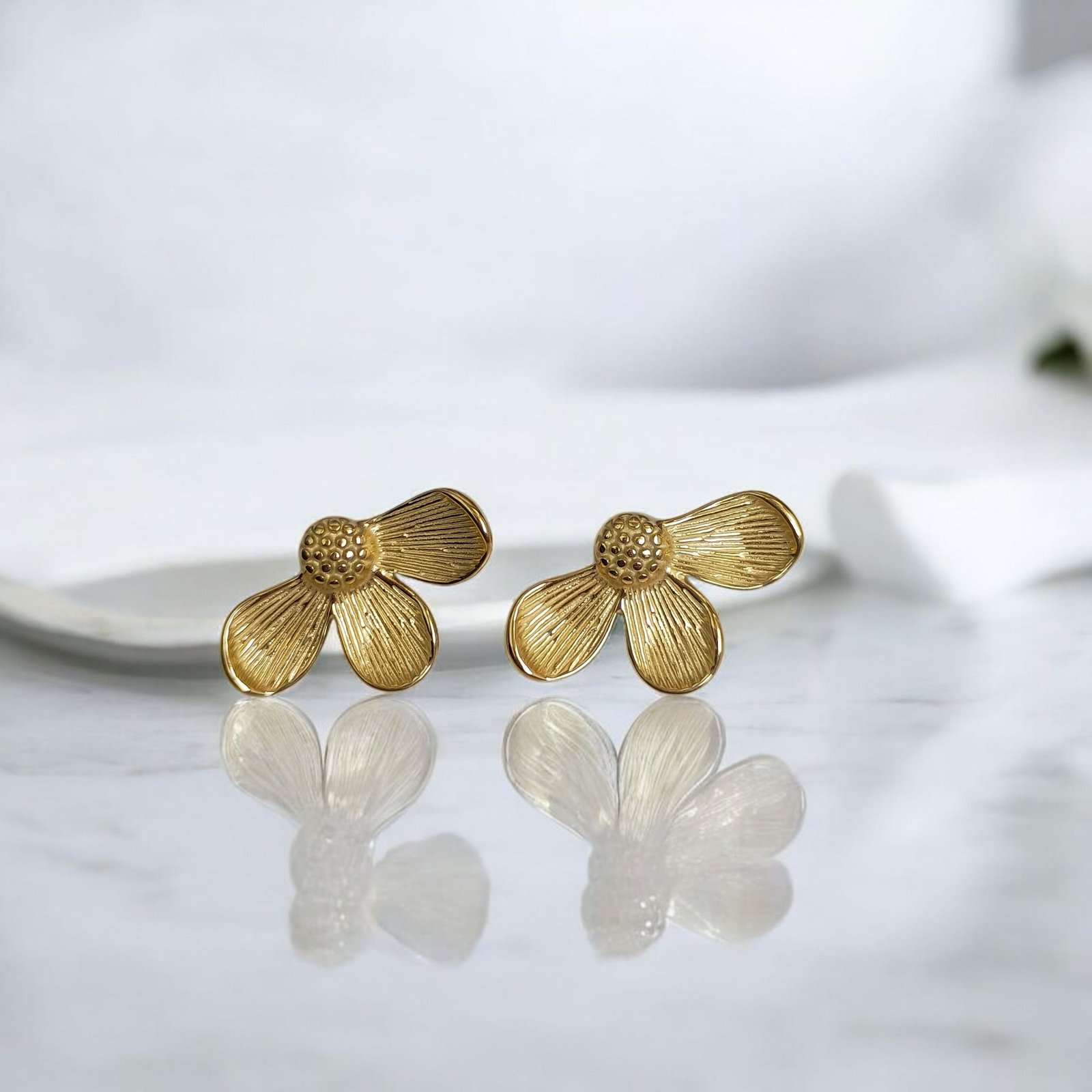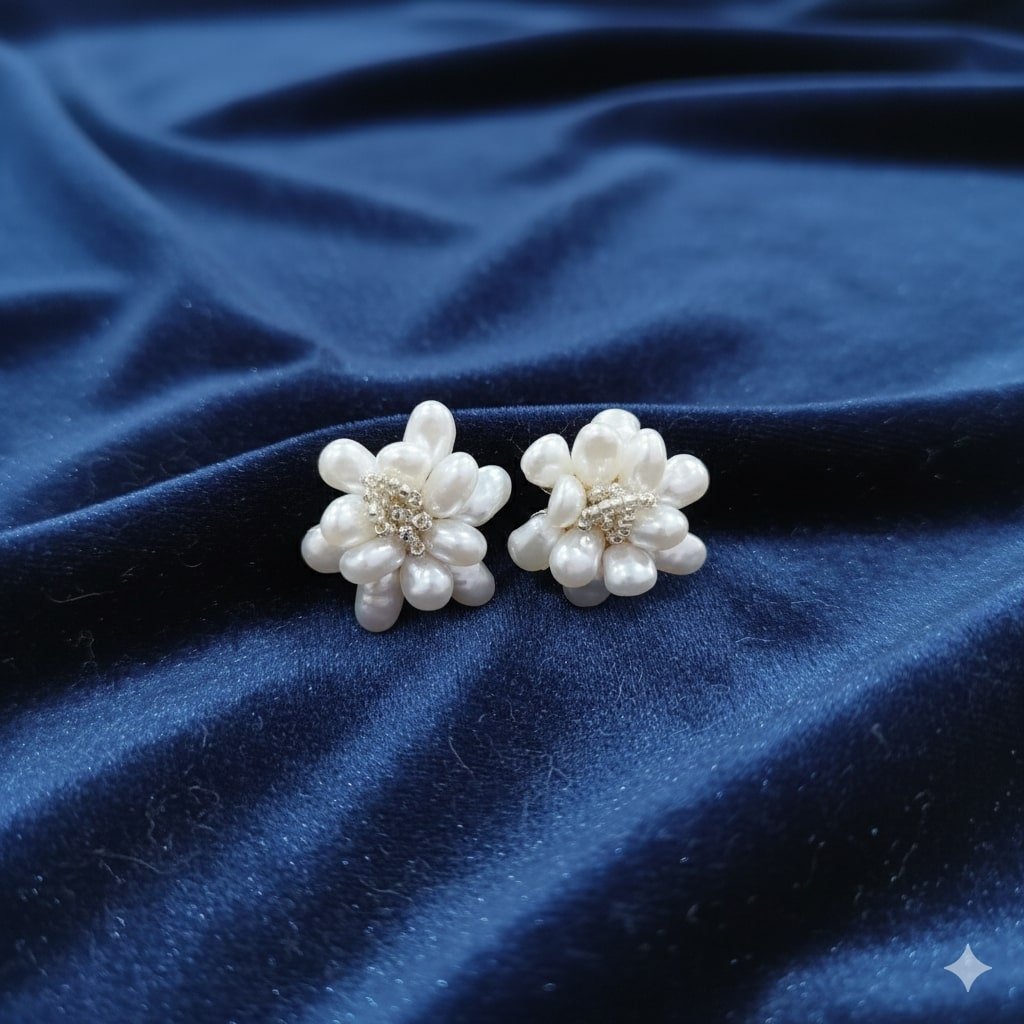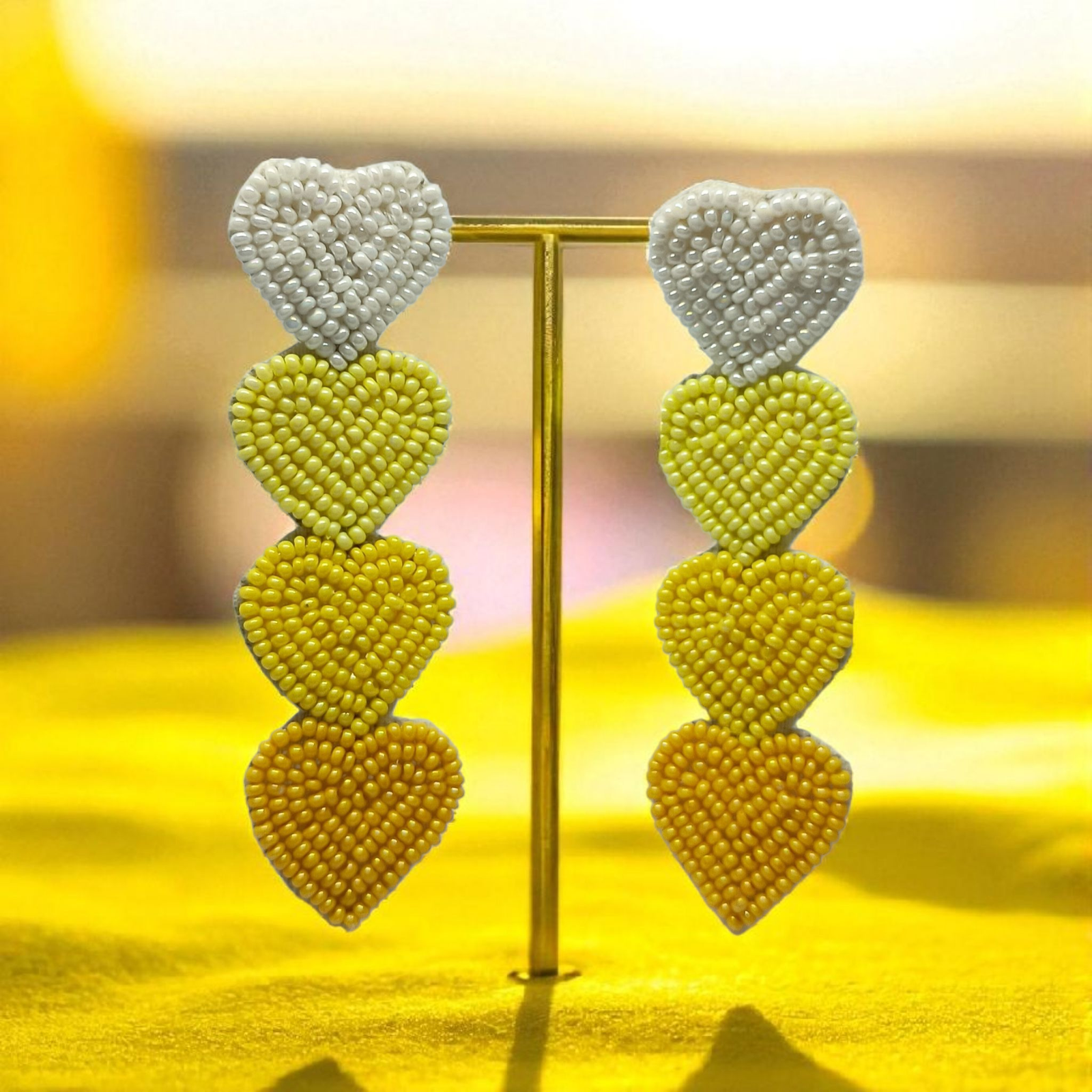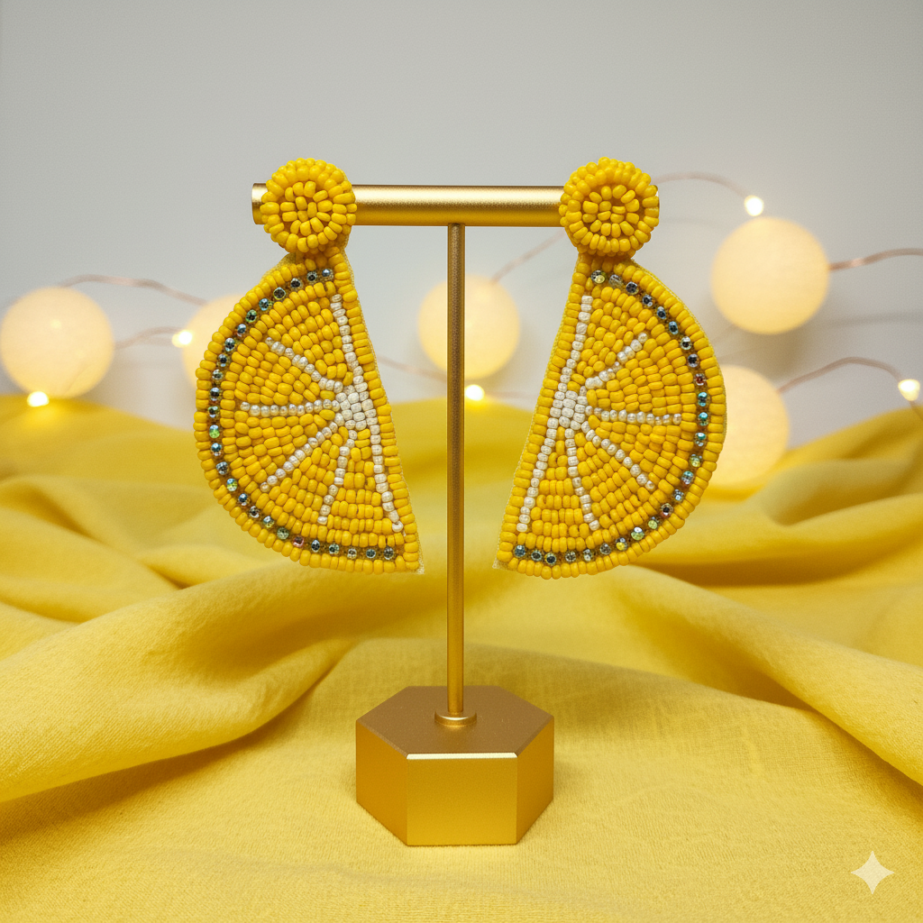 Hand-Embroidered Yellow and White Flower Stud Earrings