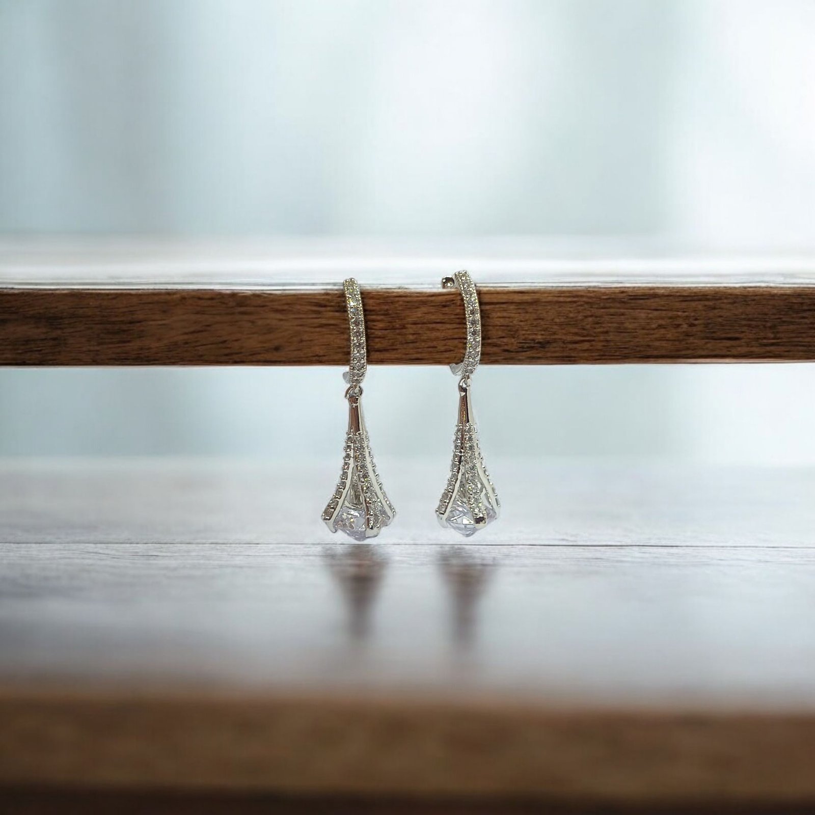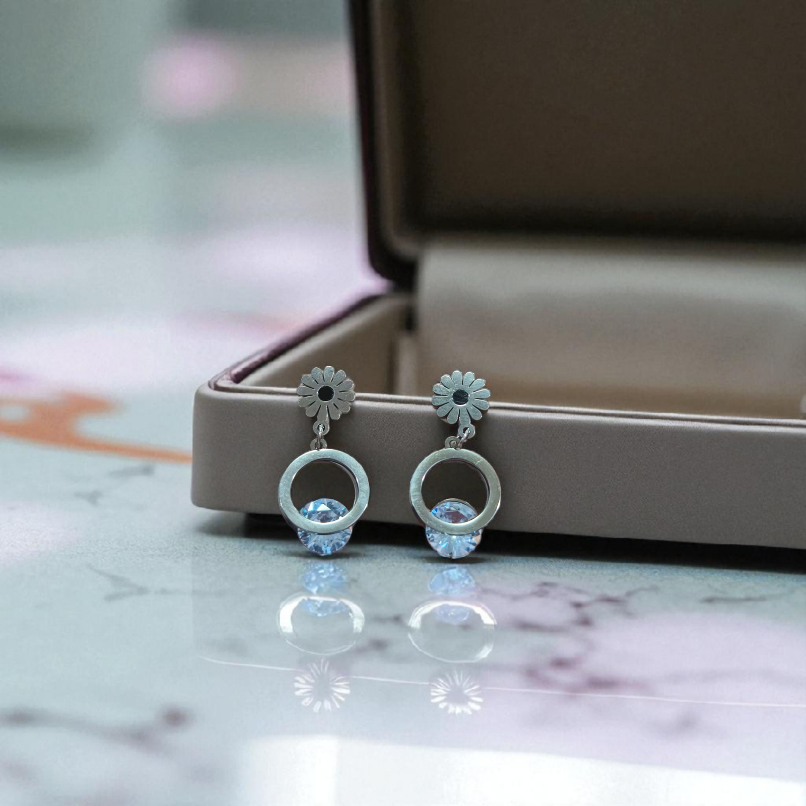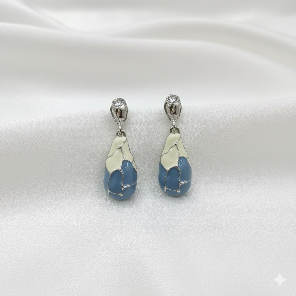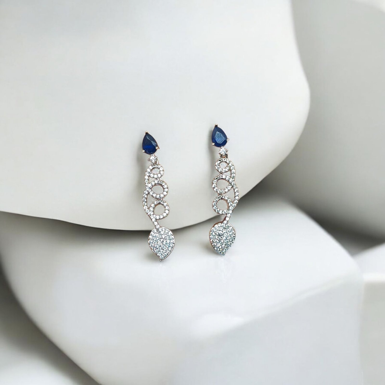 Silver Long Abstract Dangler with Blue Teardrop Top
