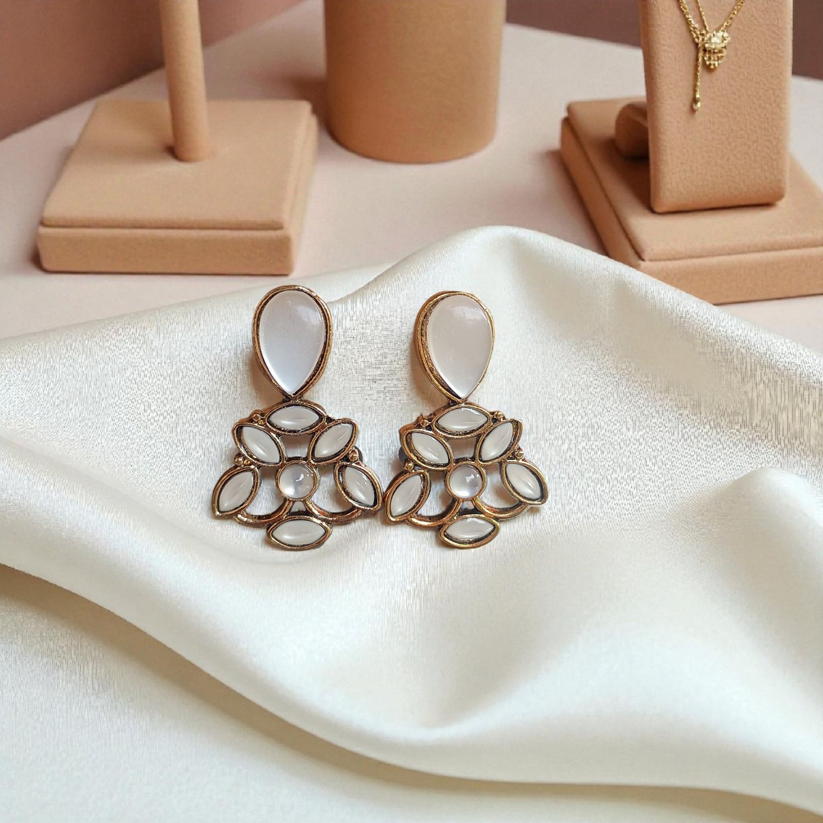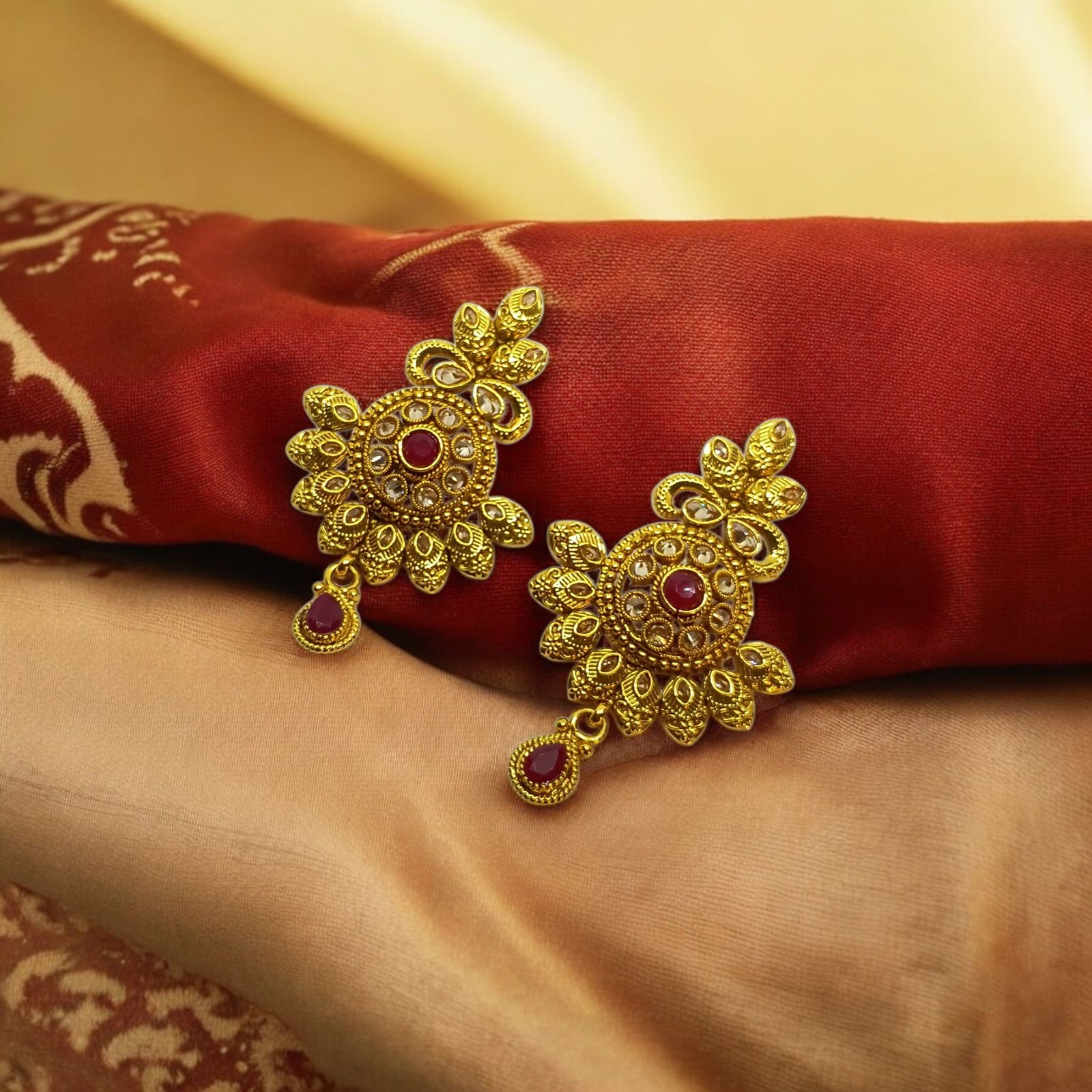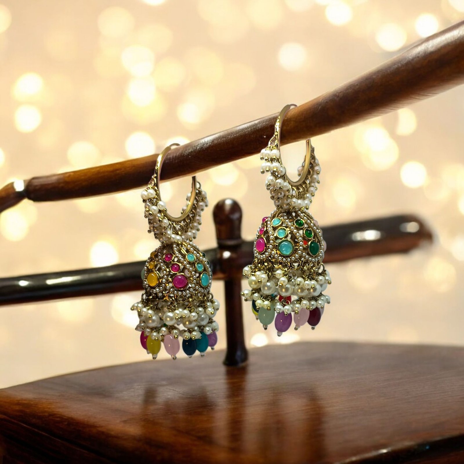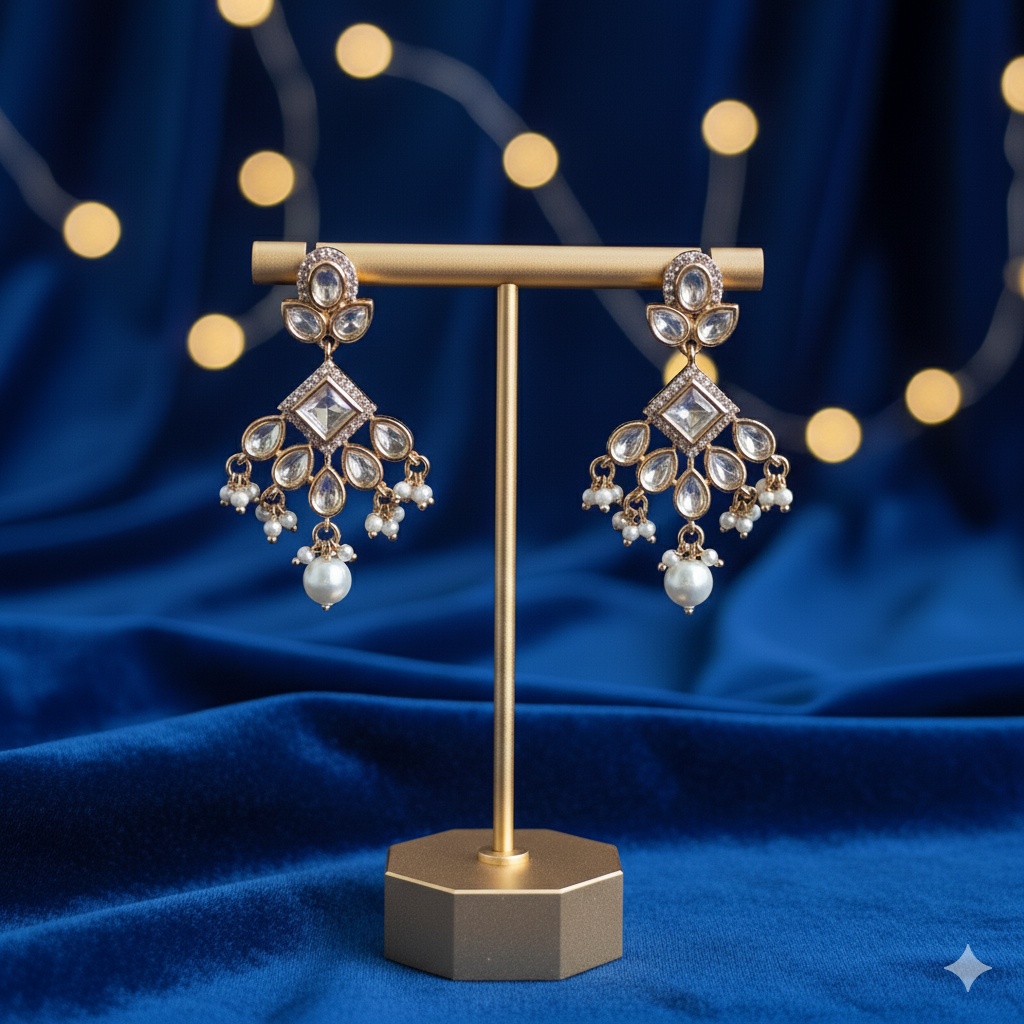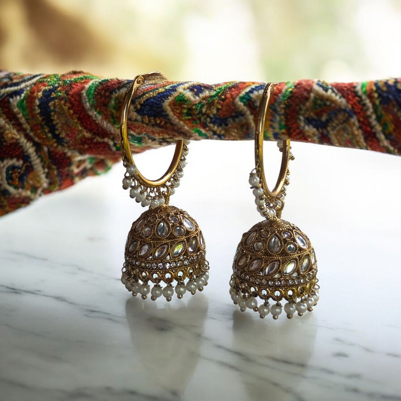 Antique Kundan Jhoomar Drop Earrings with Pearl Danglers