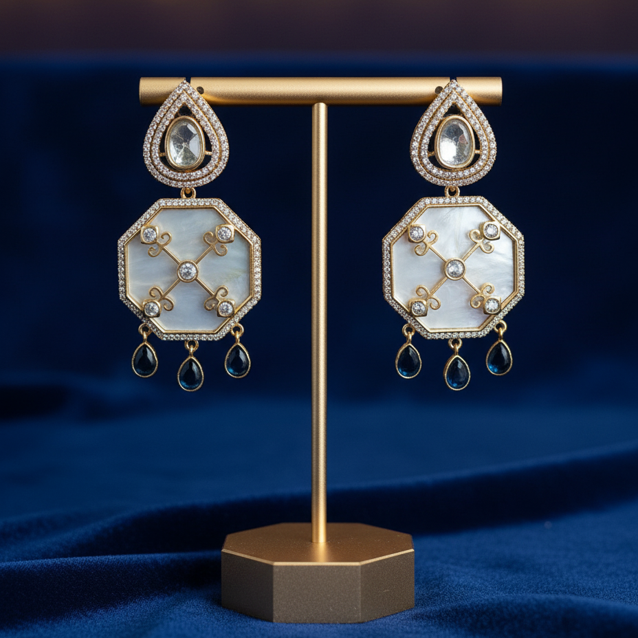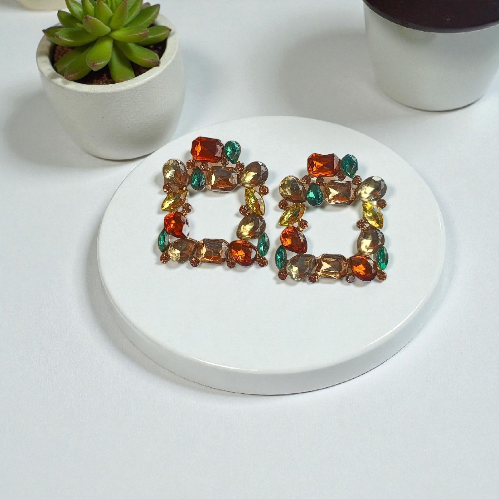 Multicolour Crystal and Mother of Pearl Dangler Earrings