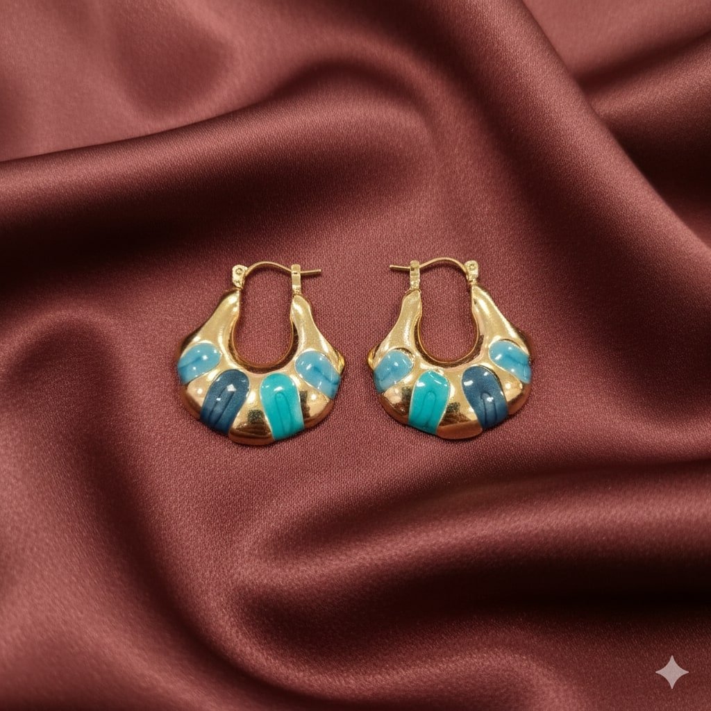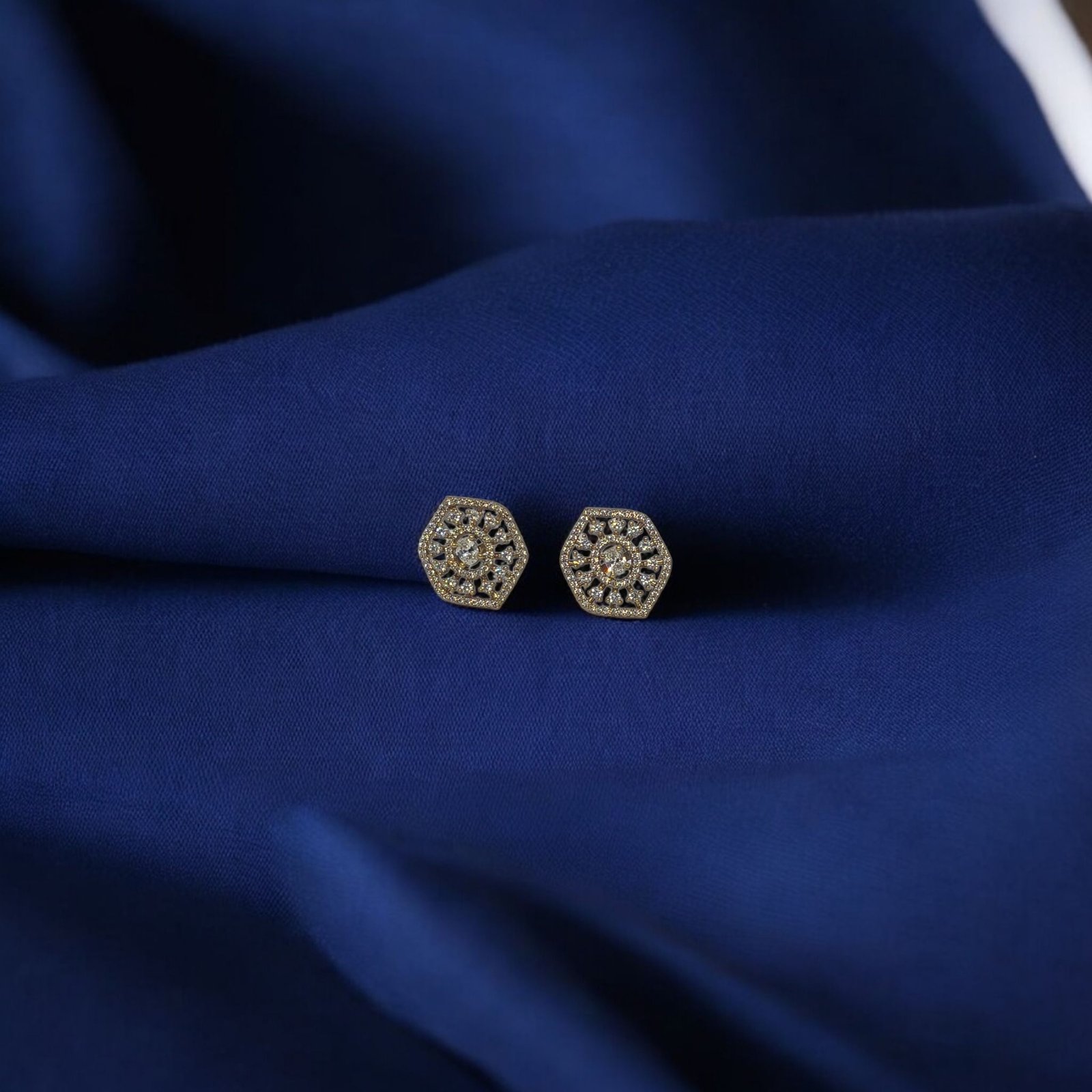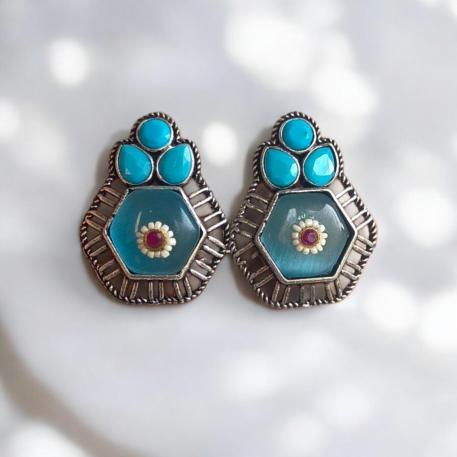 Vintage Hexagonal Oxidised Studs with Turquoise Accents