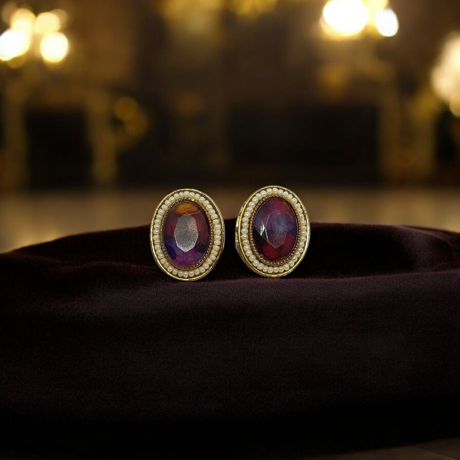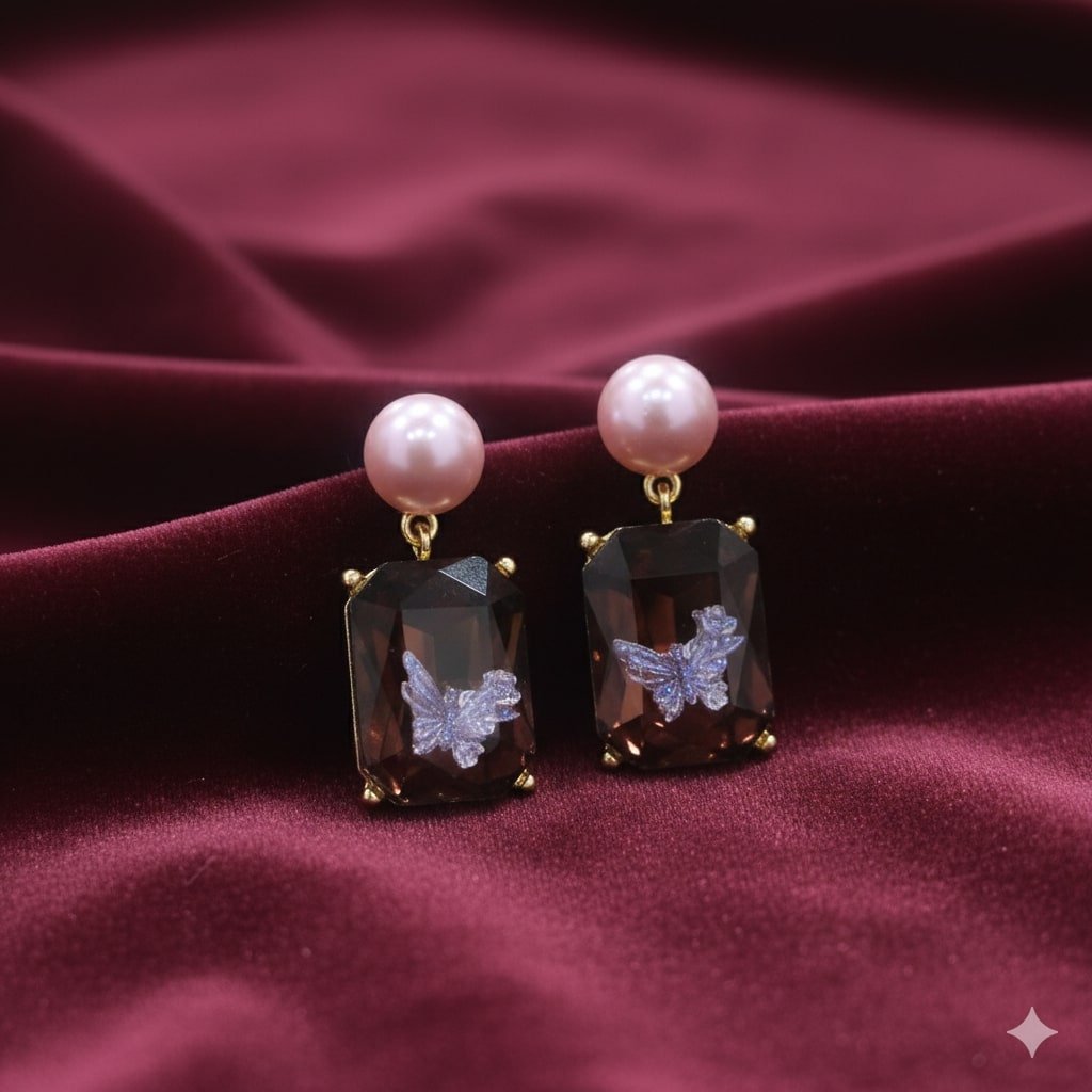 Butterfly Engraved Rectangle Crystal Drops - Purple