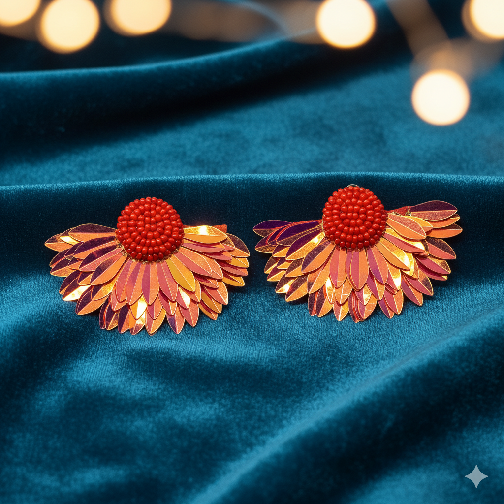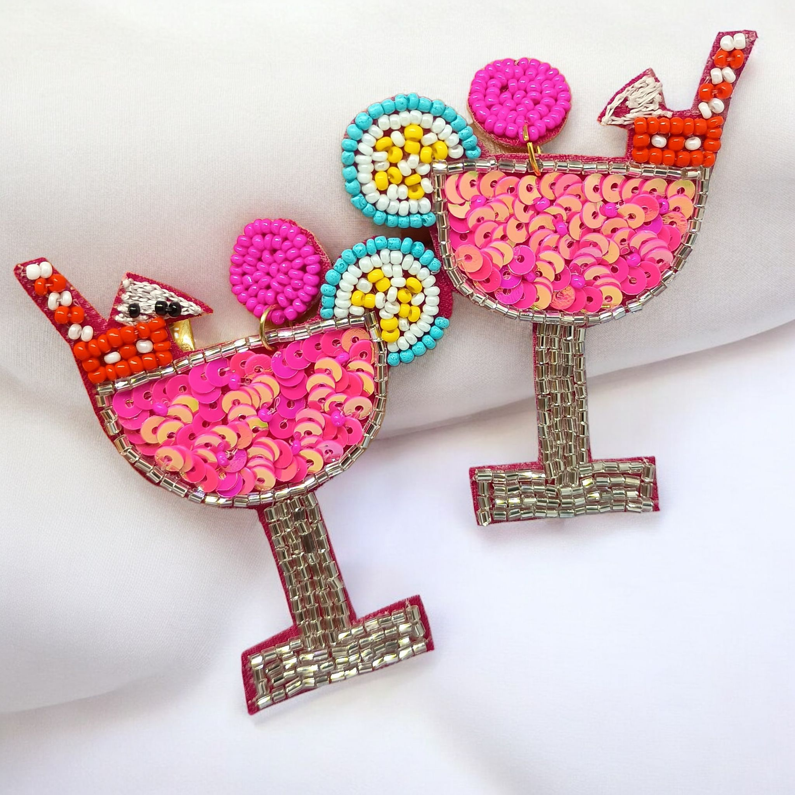Cocktail Glass Sequin and Beaded Dangler Earrings