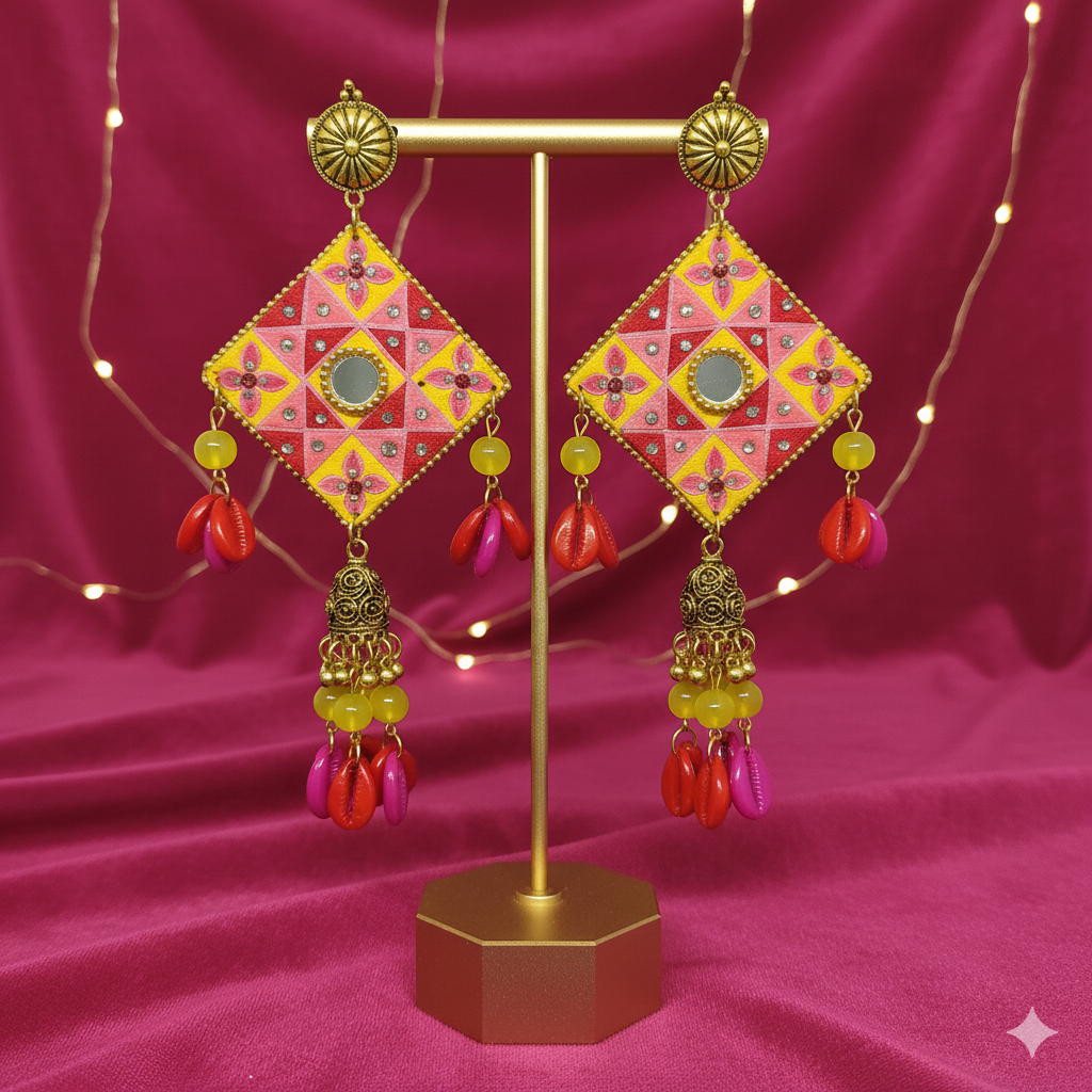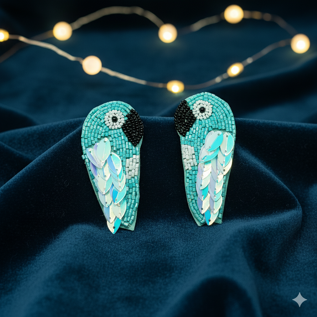 Enchanted Nature Embroidered and Beaded Dangler Earrings