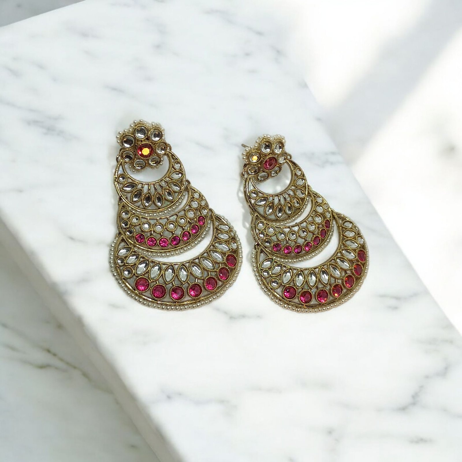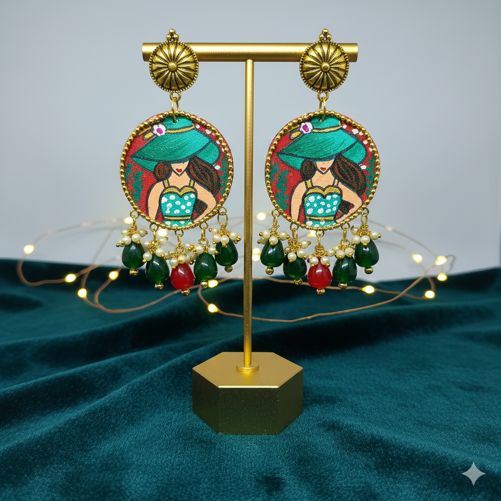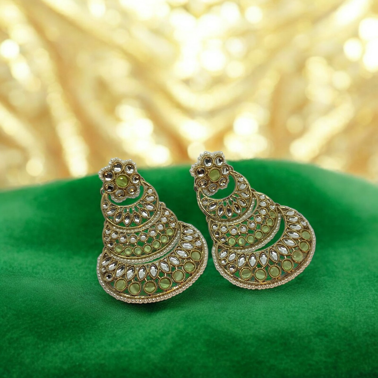 Ruby and Emerald Chandbali with Green Beads Dangler