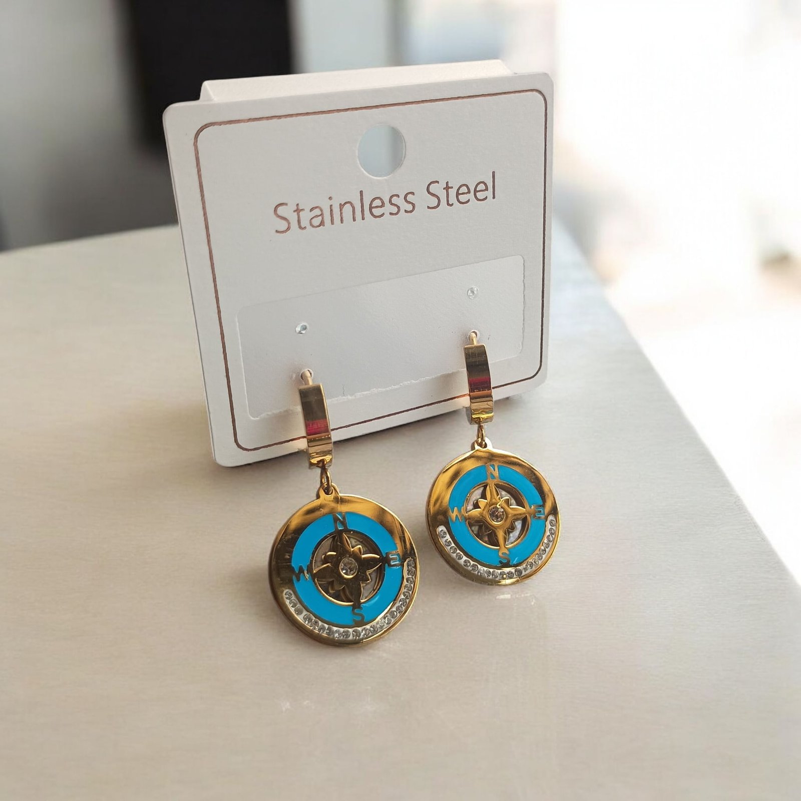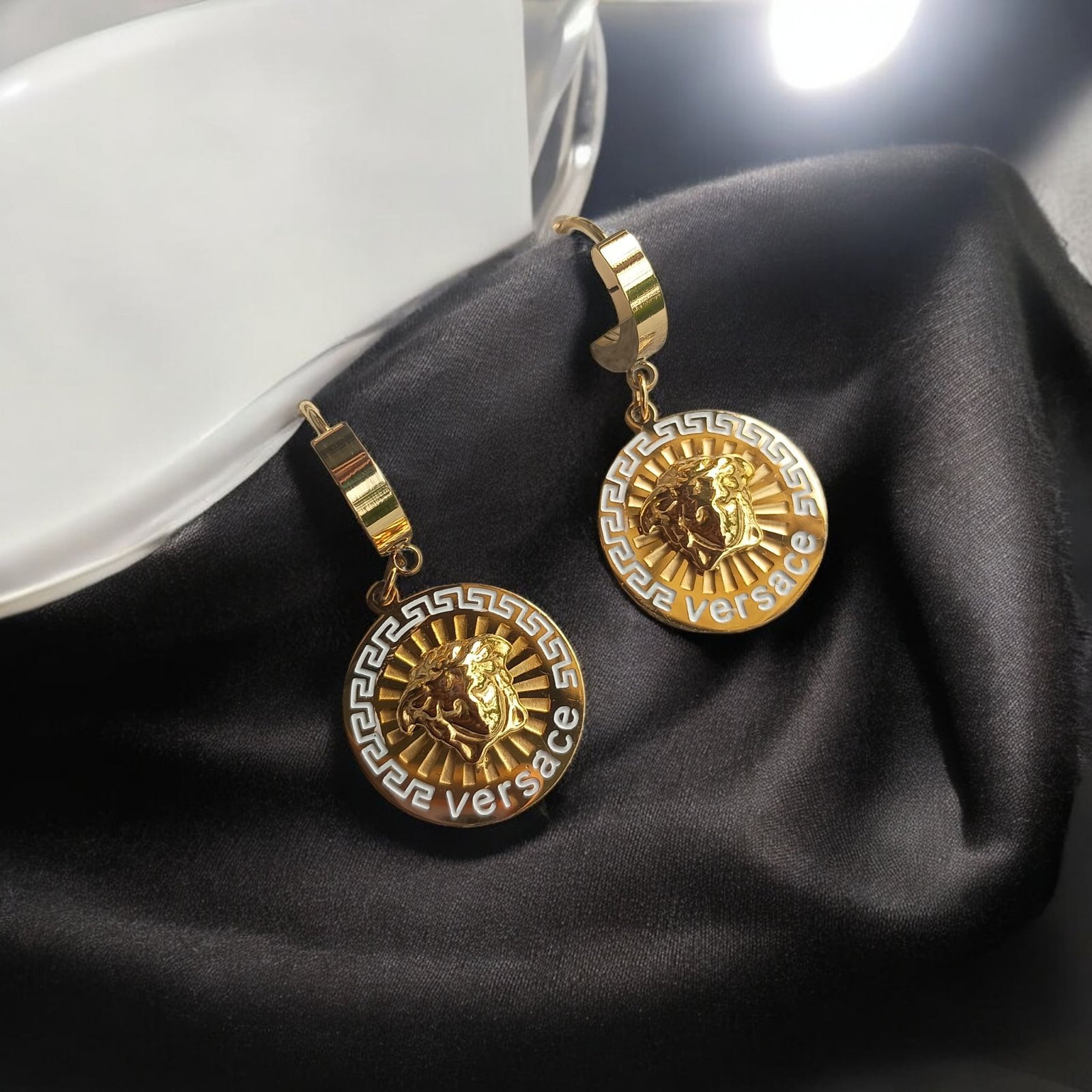 Classic Gold Plated Logo Engraved Versace Drop Earrings