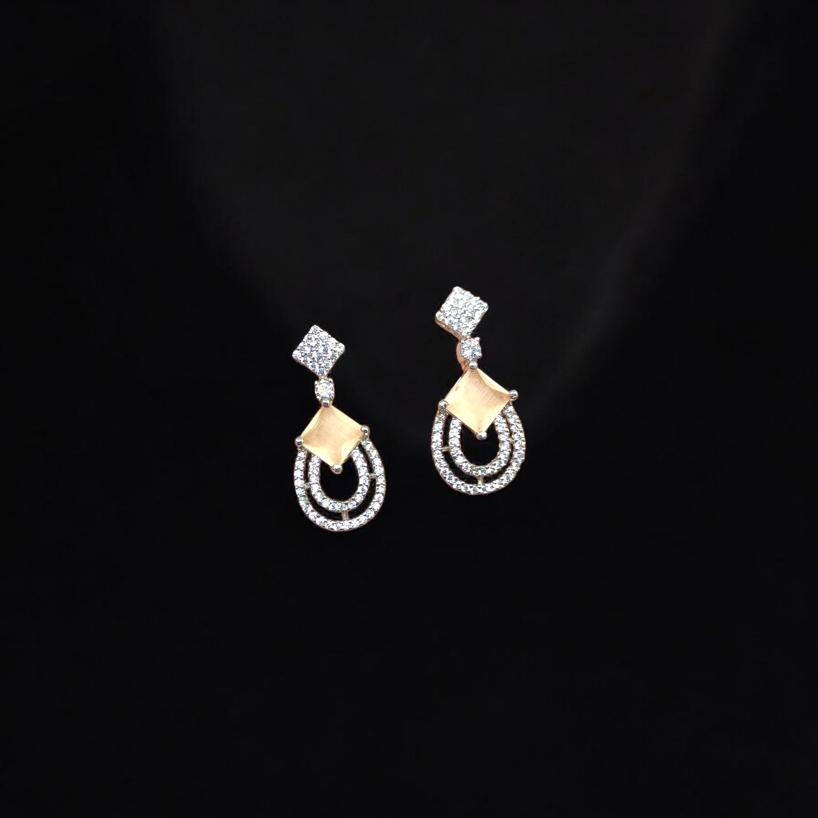Classic Glitter with Cracked Stone Danglers - White