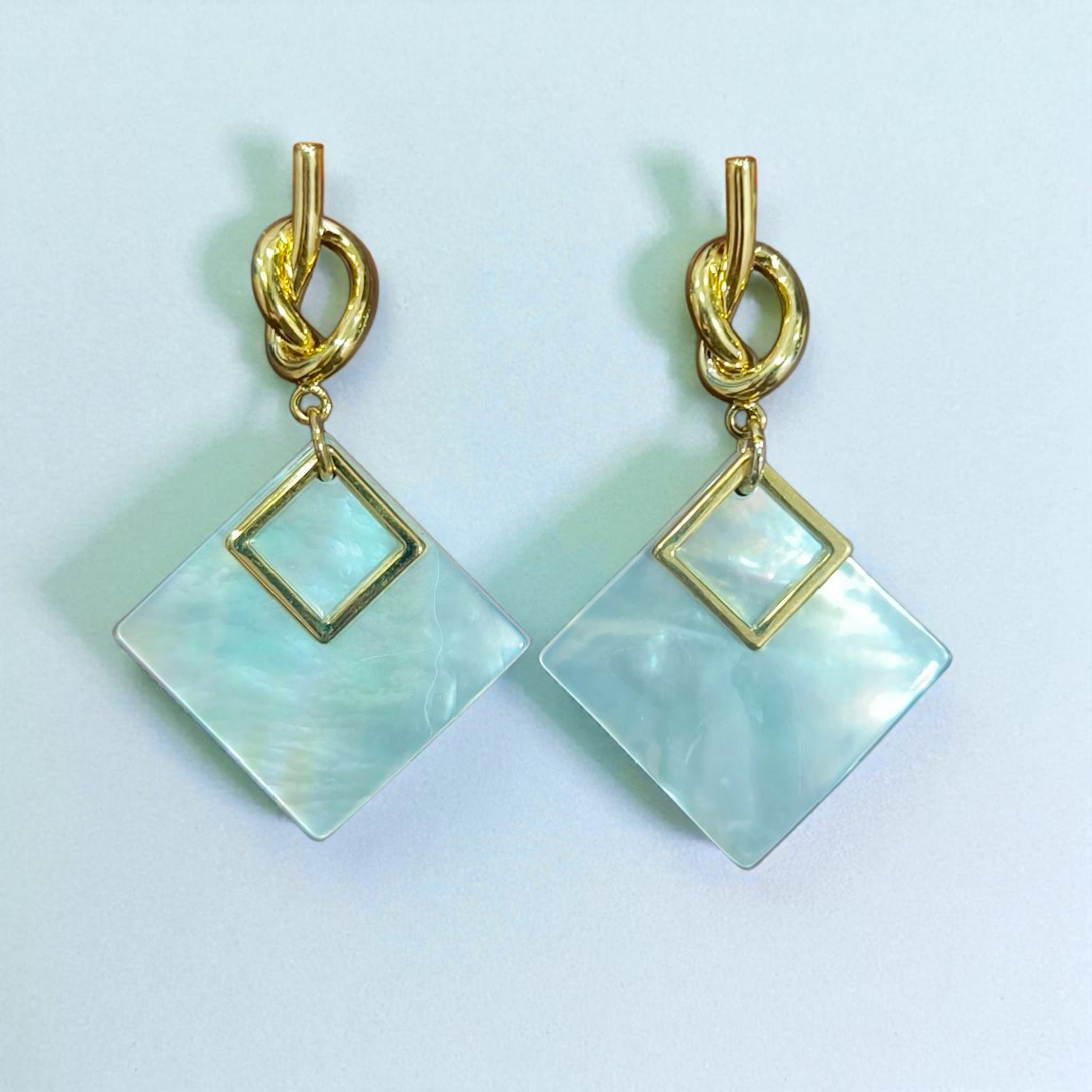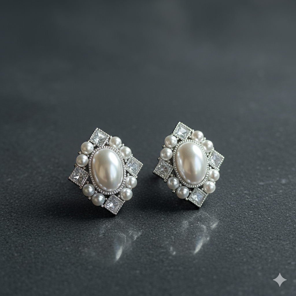Square Shaped Silver Mother of Pearl Studded CZ Studs
