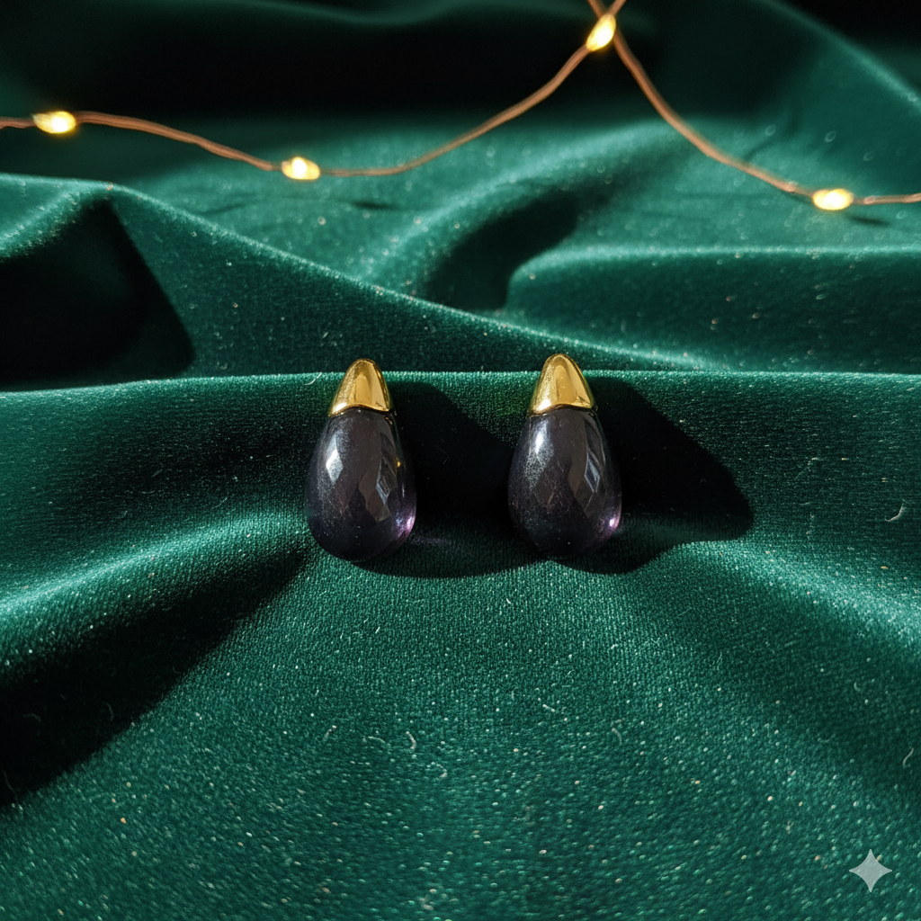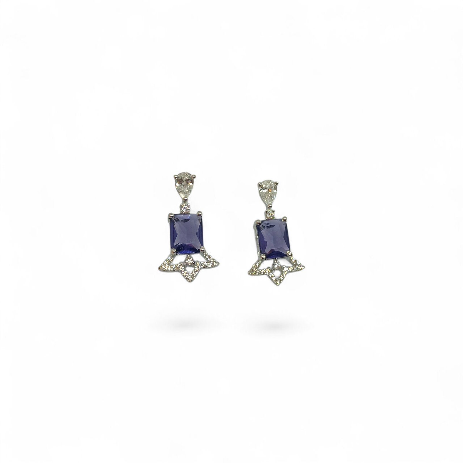 Butterfly Engraved Rectangle Crystal Drops - Purple