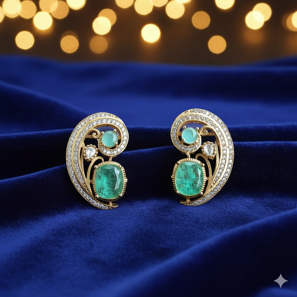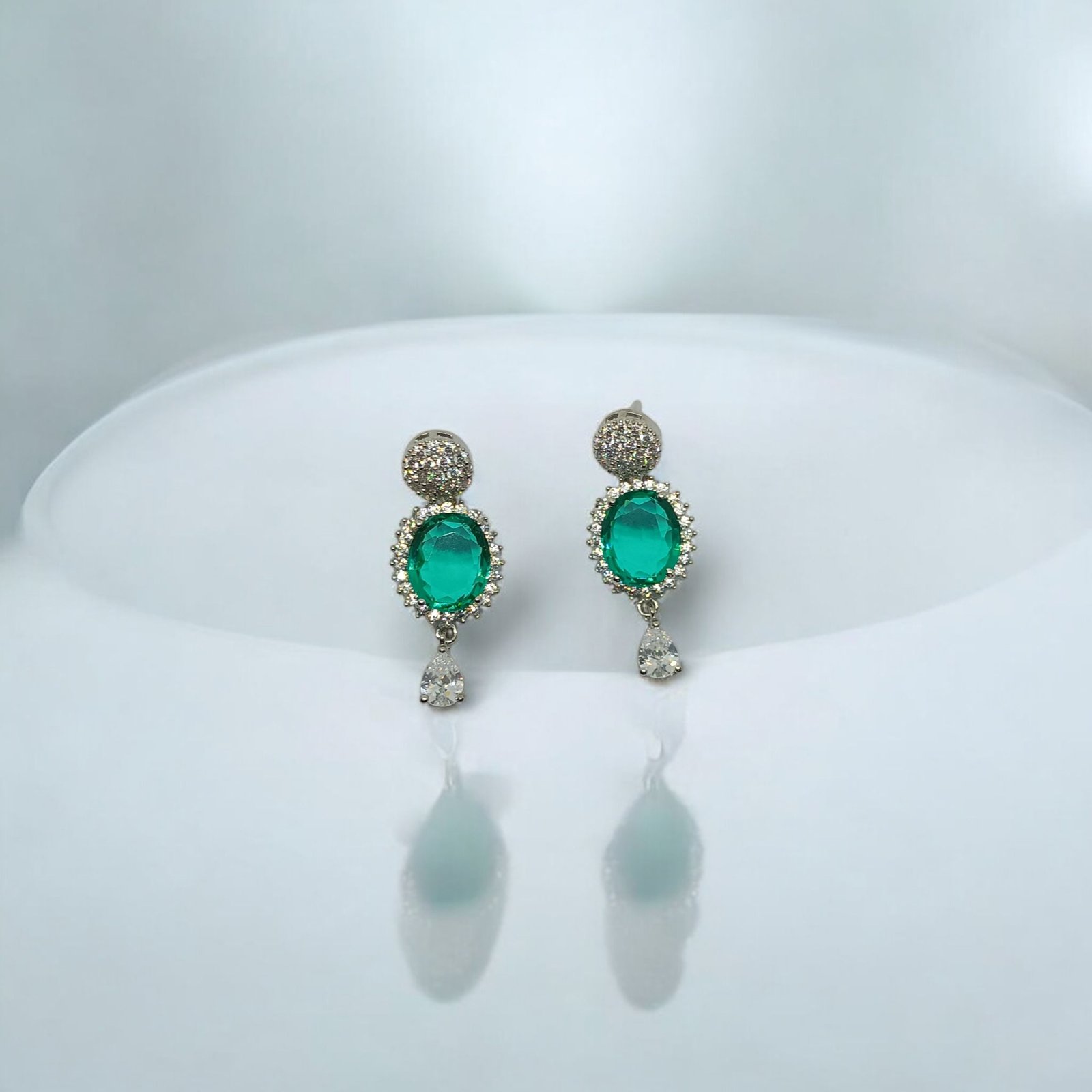 Butterfly Engraved Rectangle Crystal Drops - Green